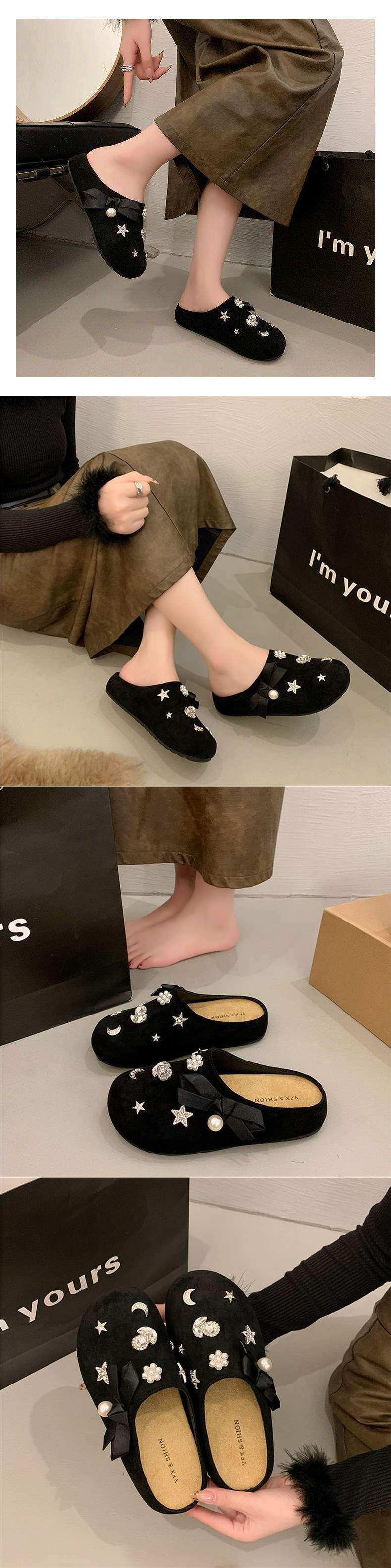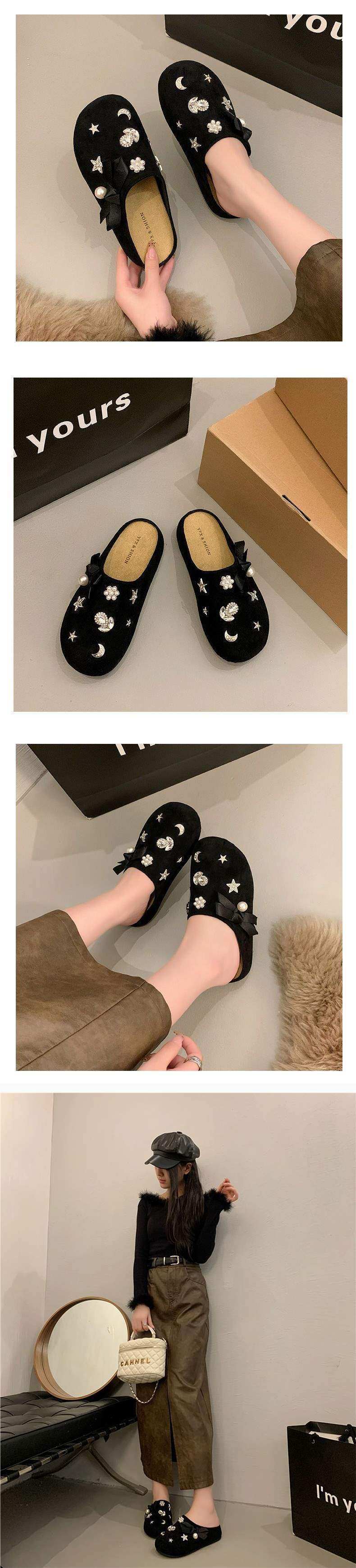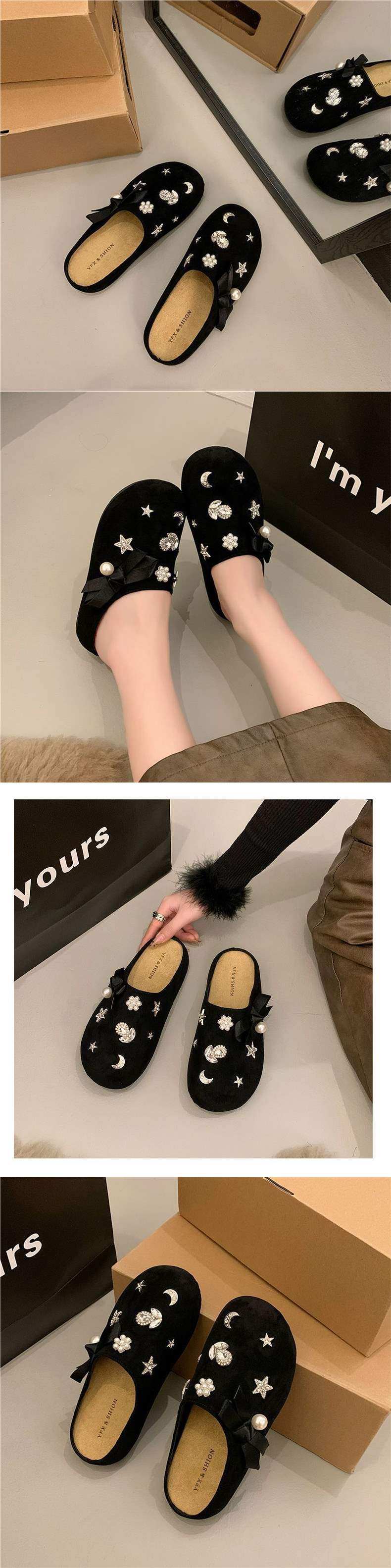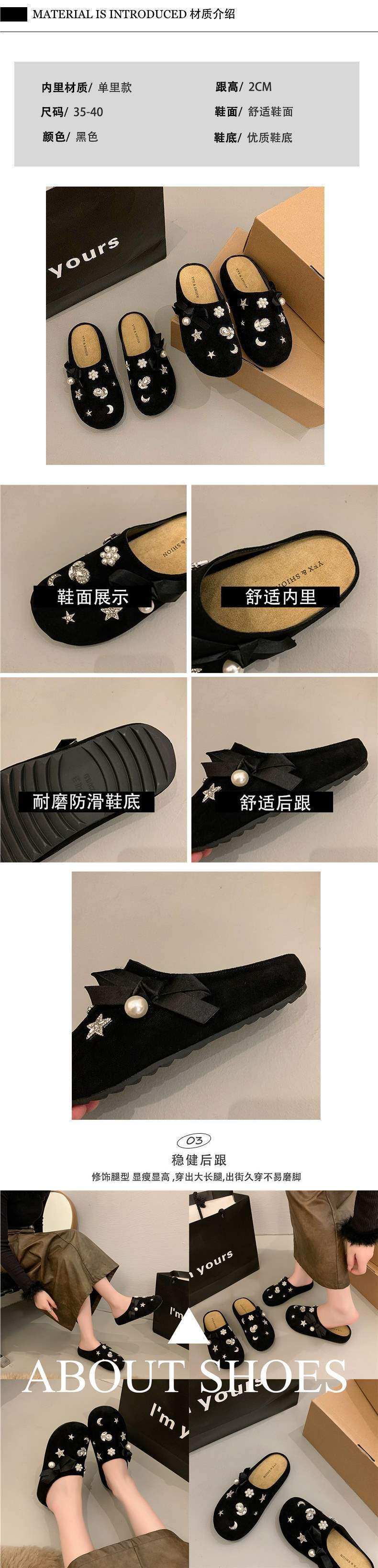 2025 New Early Spring Niche Outer Wear Birkenstock Rhinestone Sweet and Cool Flat Toe Thick-Soled Slippers for Women