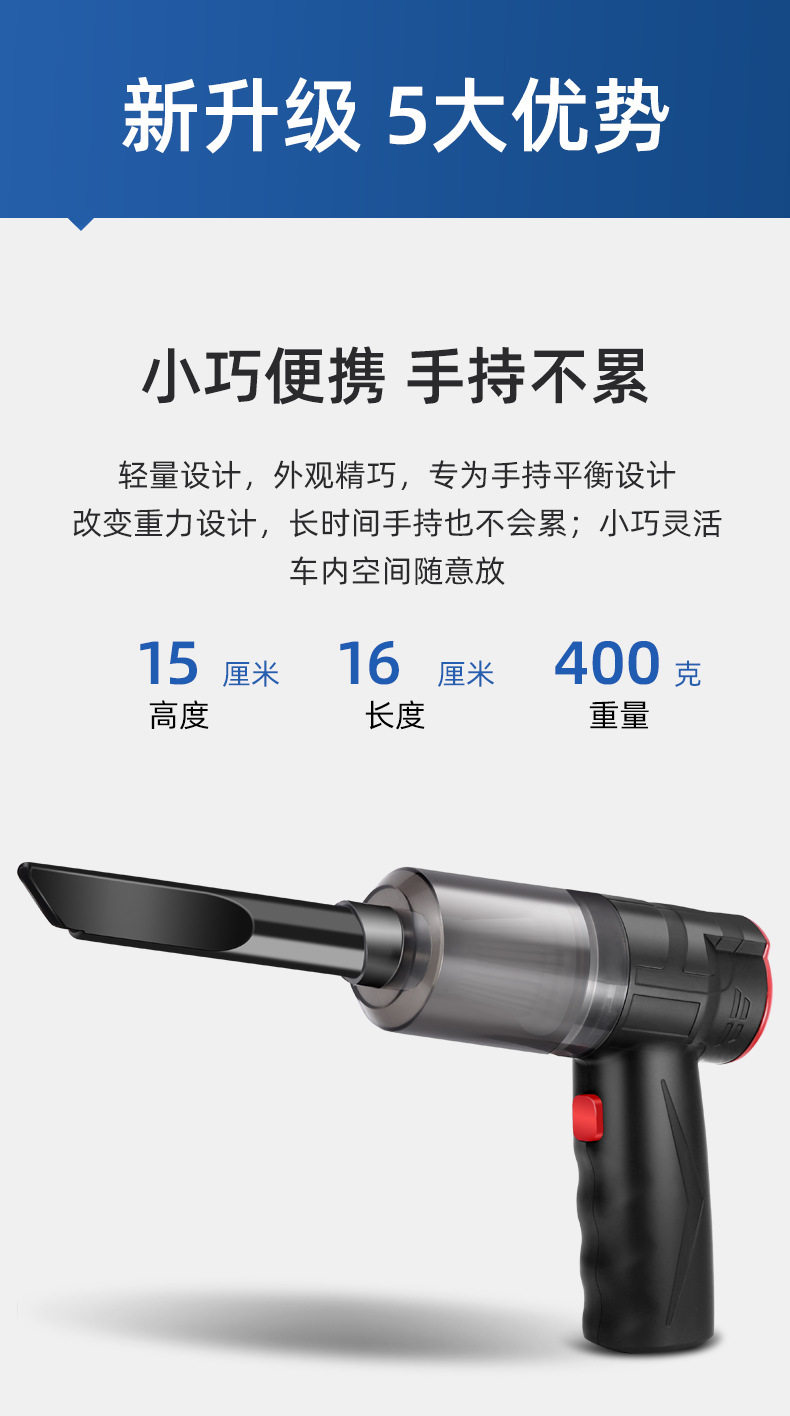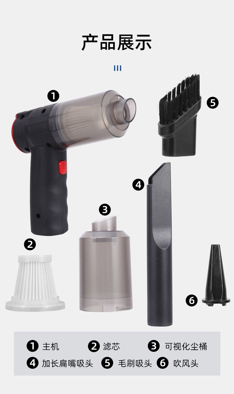 | Color classification | [car model] standard configuration 4000pa⊰,[charging model] 8000pa⊰,[rechargeable model] upgraded to 13000pa+1 filter element⊰,[rechargeable model] 16,000 pa + 2 filters ⊱,[charging model] 16,000 pa + luxury gift package ₩,[car model] upgraded standard configuration 8000pa⊰,[car model] large suction power 13,000 pa + 2 filter elements ⊱,120w [wireless charging model] 9000pa black [dual battery] ₫,120w [wireless charging model] 9000pa black + 2 filters [dual batteries ⊱,120w [wireless charging model] 9000pa black + 2 filters + towel + storage bag [dual batteries] ⱸ |