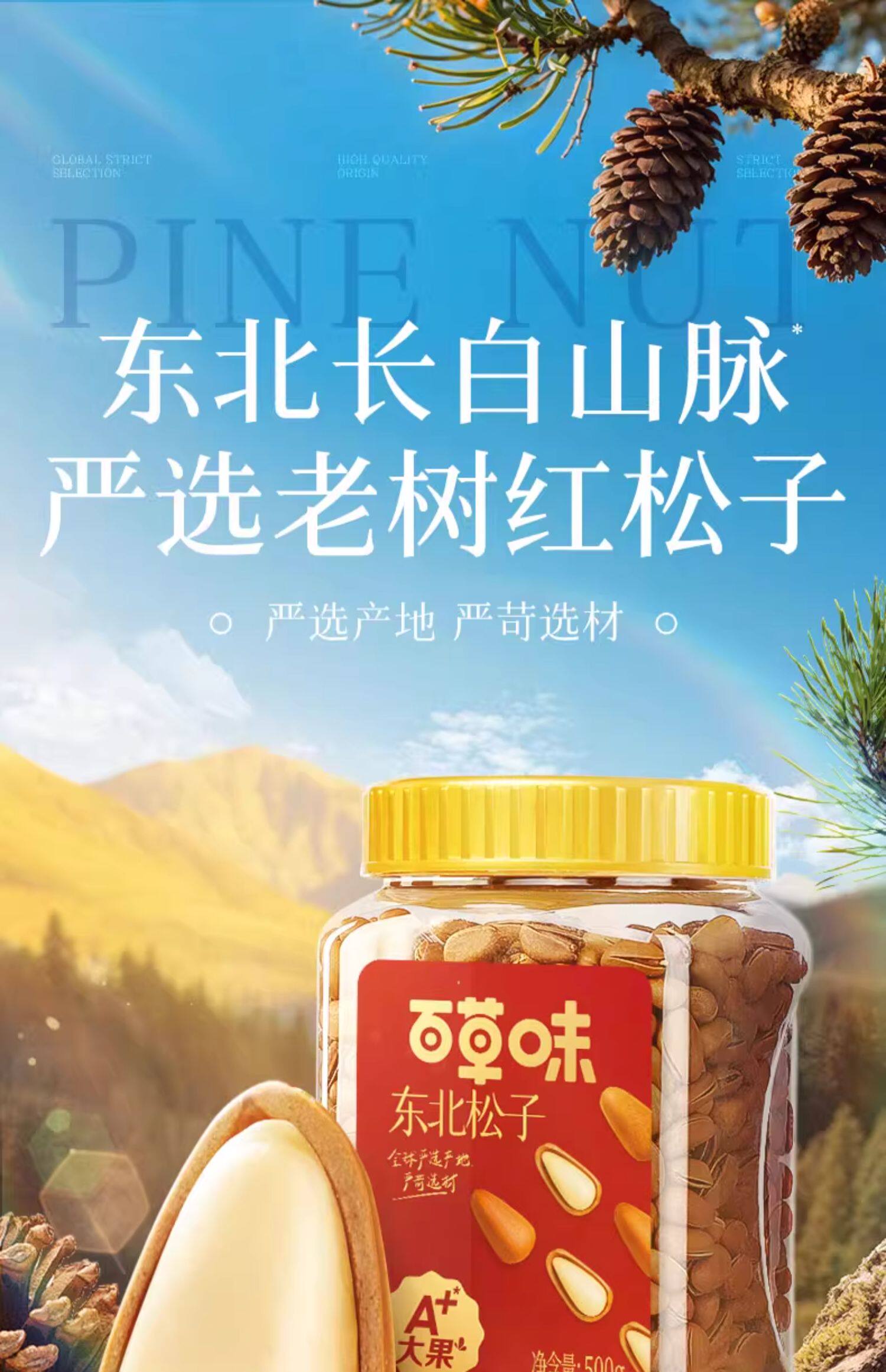 Baicaowei Northeastern Pine Nuts Large Particles 500g Hand-Peeled Snacks Dried Fruits Gift New Nuts Leisure
