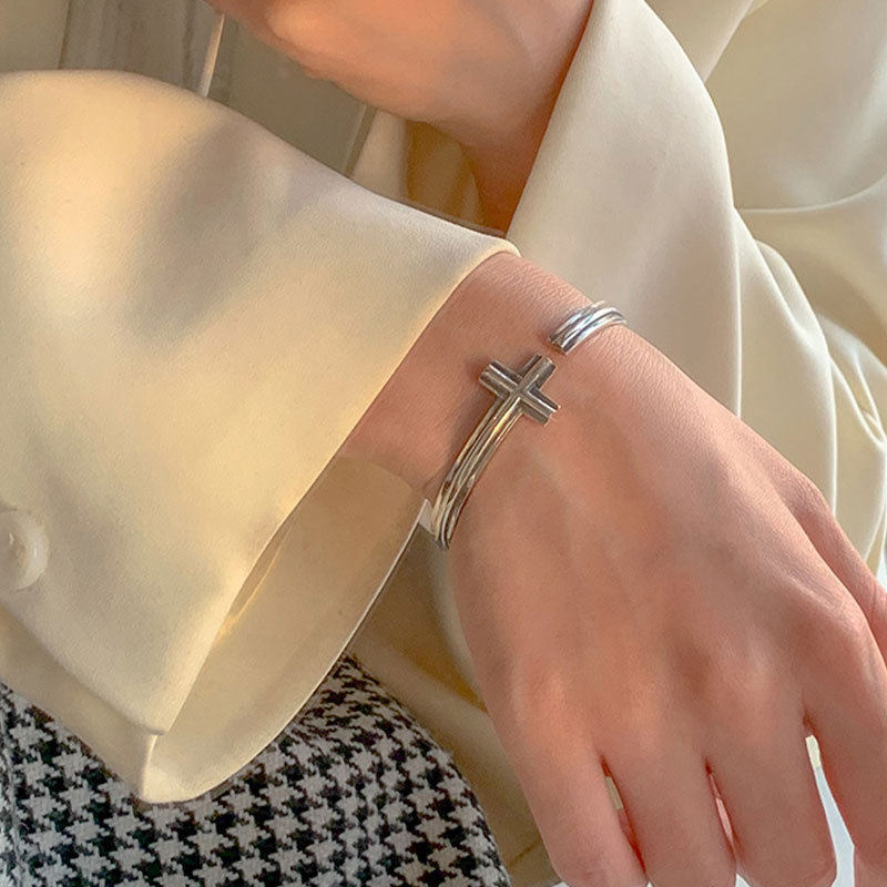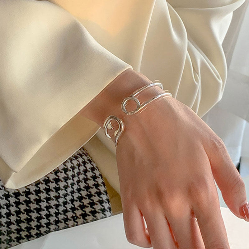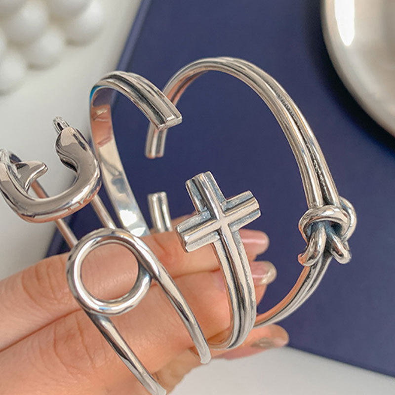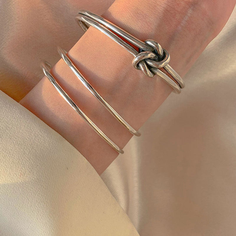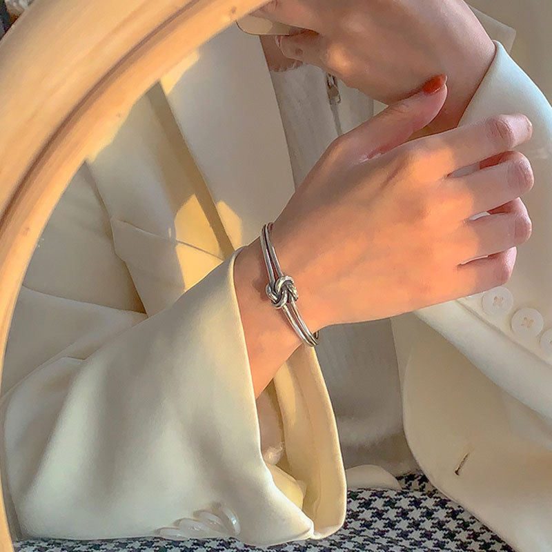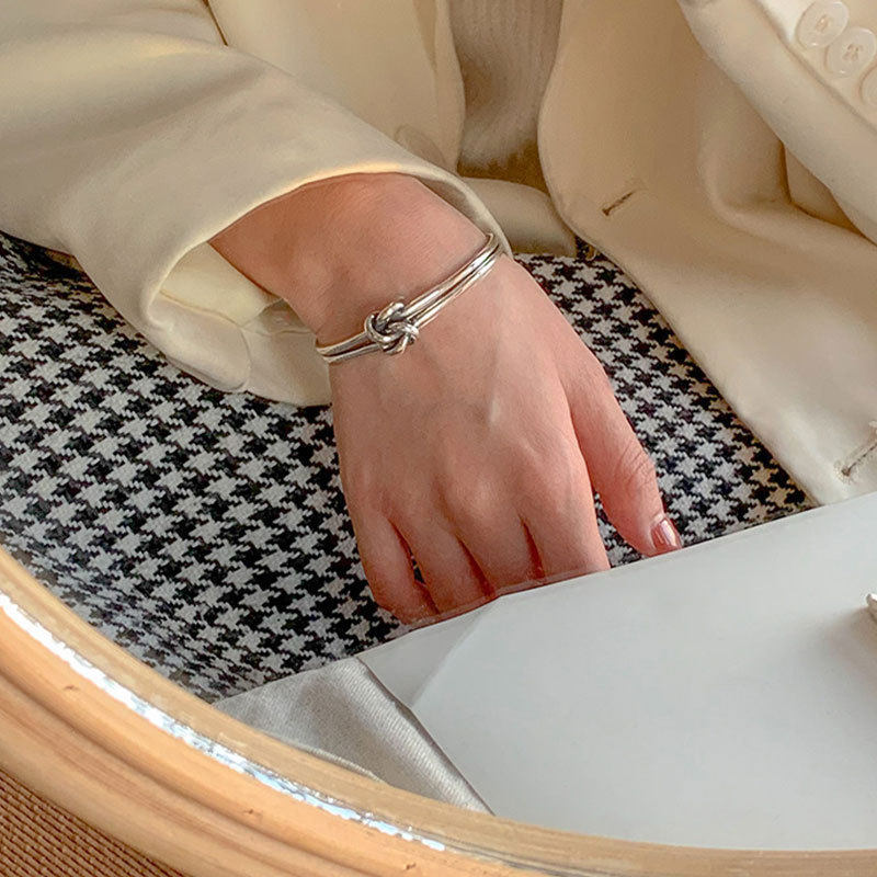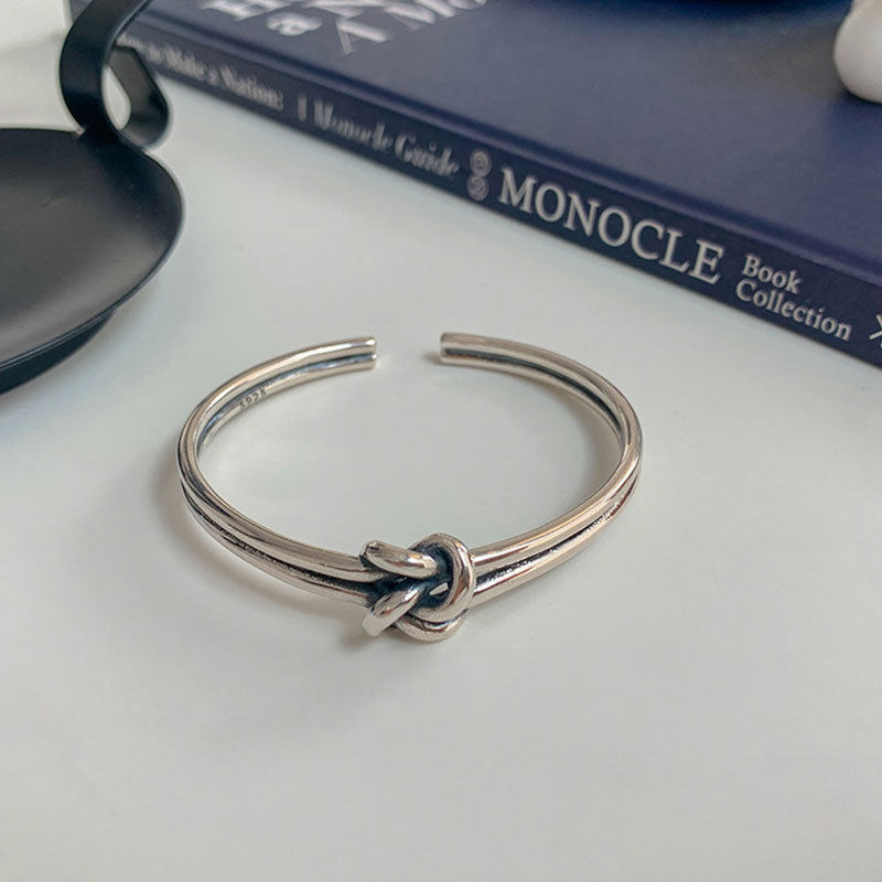 4206 Japanese and Korean Style Retro Thai Silver Two-Line Knotted Rope Buckle Bracelet Women's Fashion Stylish Open Niche Design Bracelet