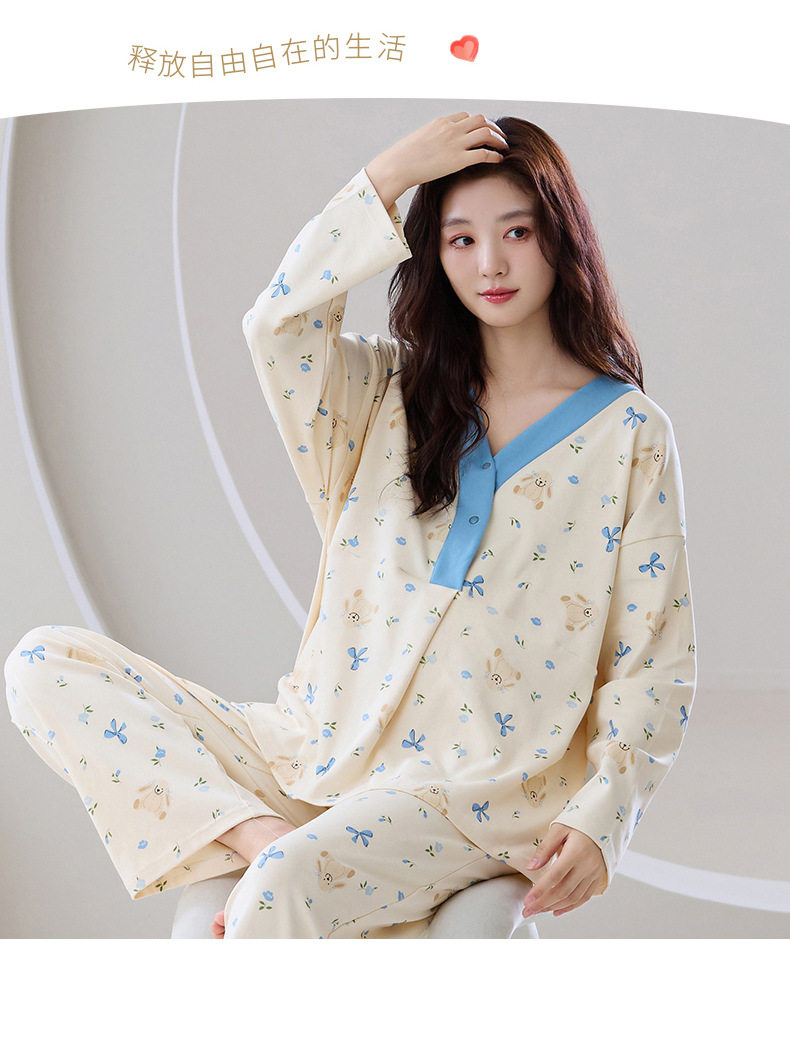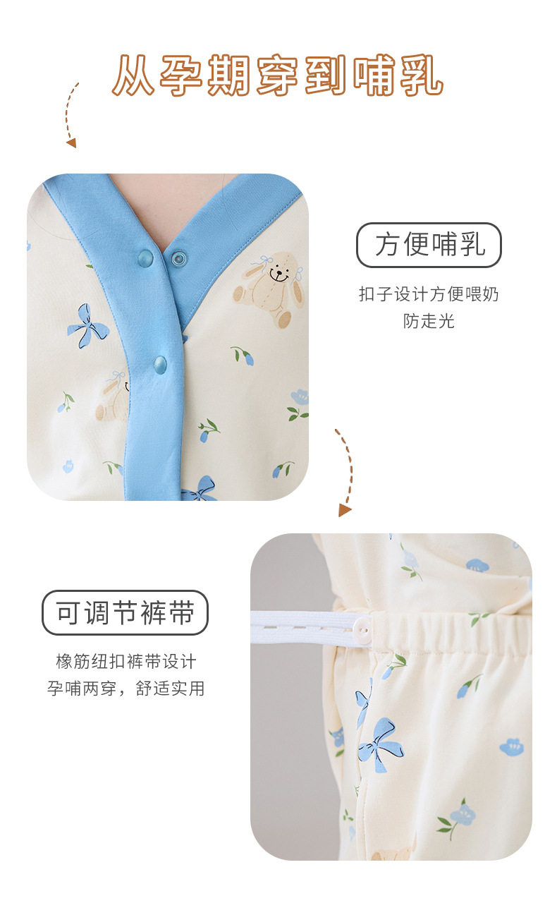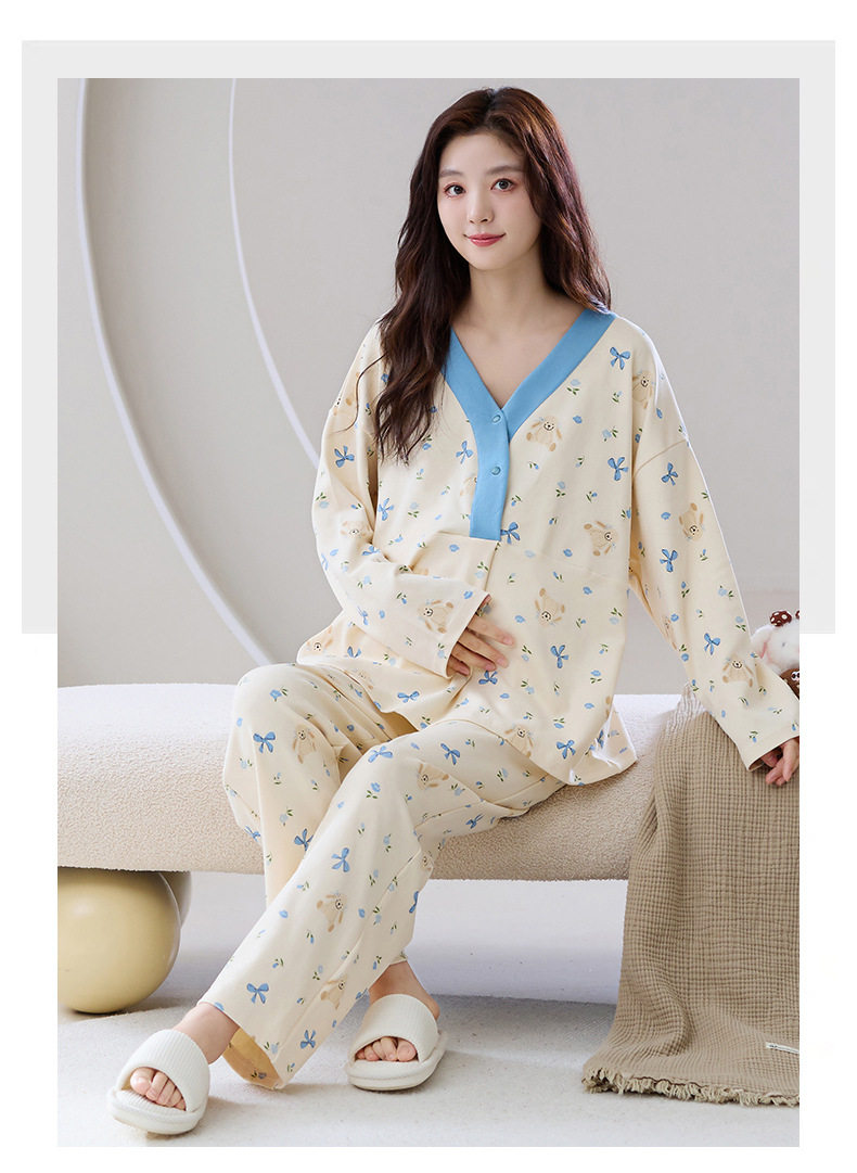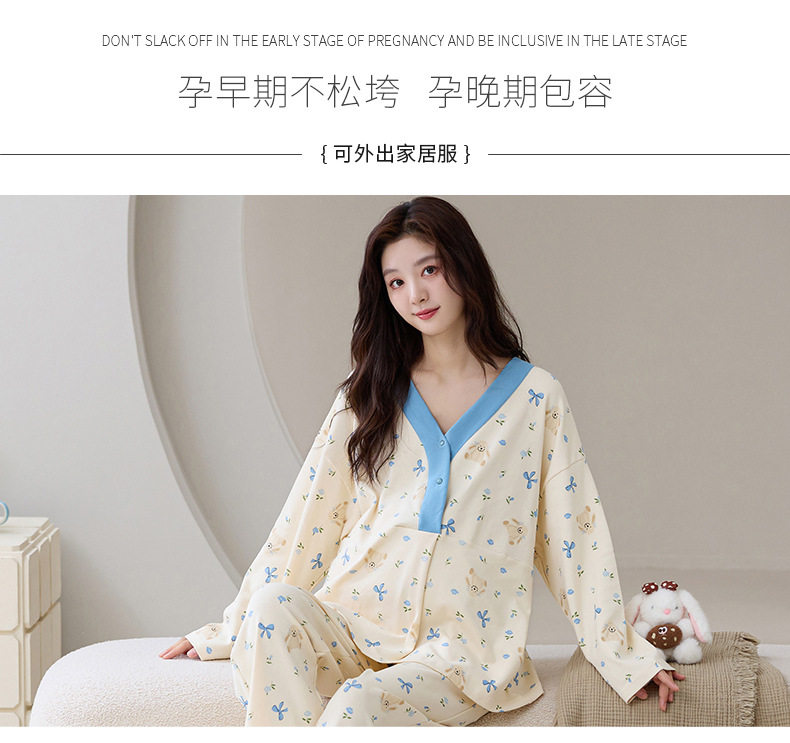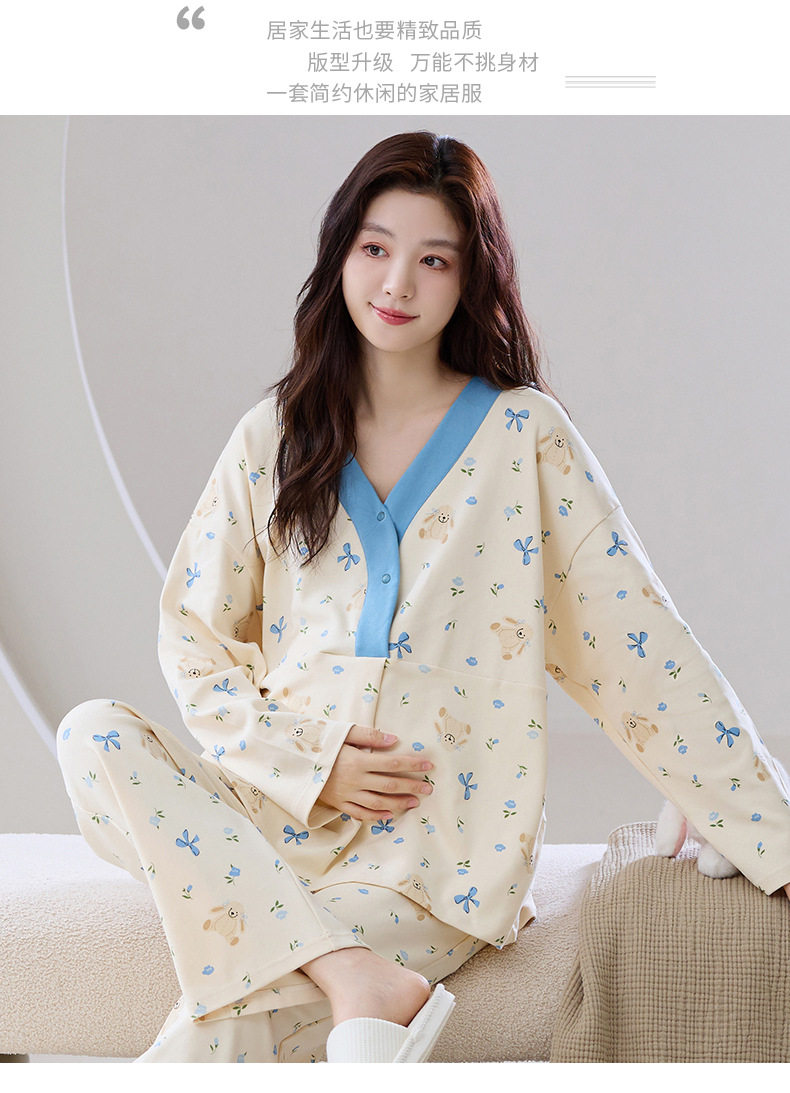Long-Sleeved Confinement Clothes with Breast Pads, Pajamas for Women, Autum Postpartum Maternity Home Clothes, Breastfeeding and Feeding Suits, Spring and Autum