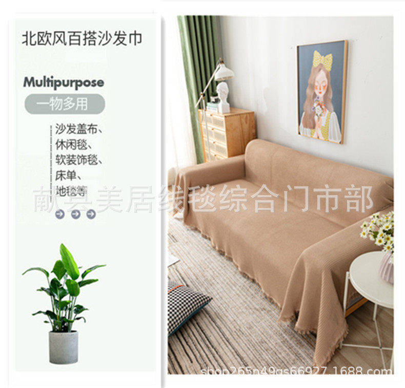 Nordic Khaki Sofa Throw Blanket, Sofa Cushion, Multi-Purpose Cover, Simple and Stylish Tablecloth, Camping Blanket, in Stock