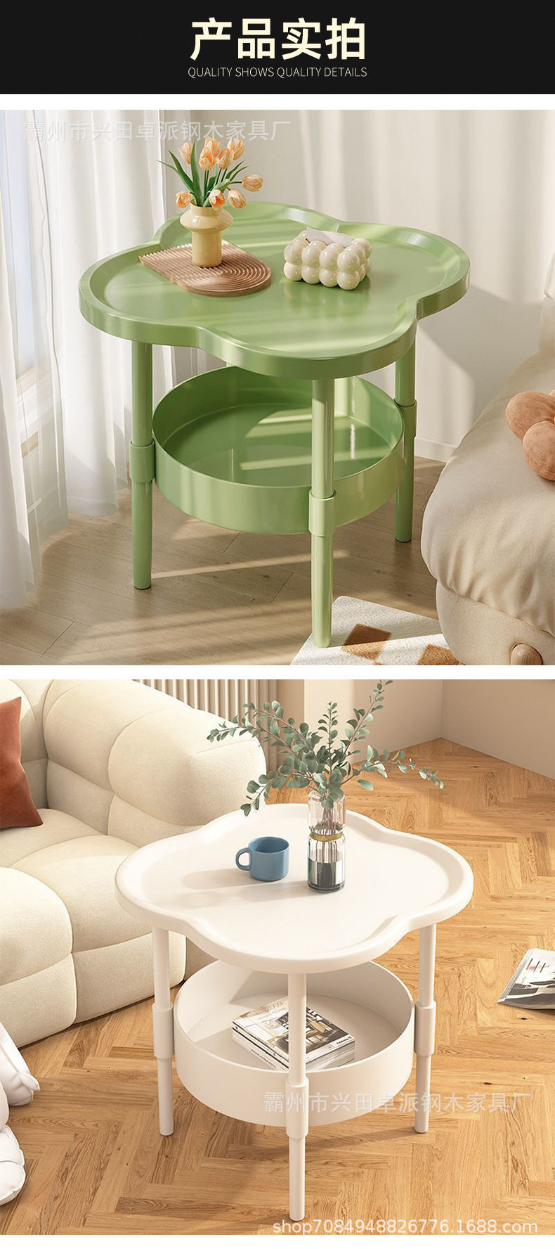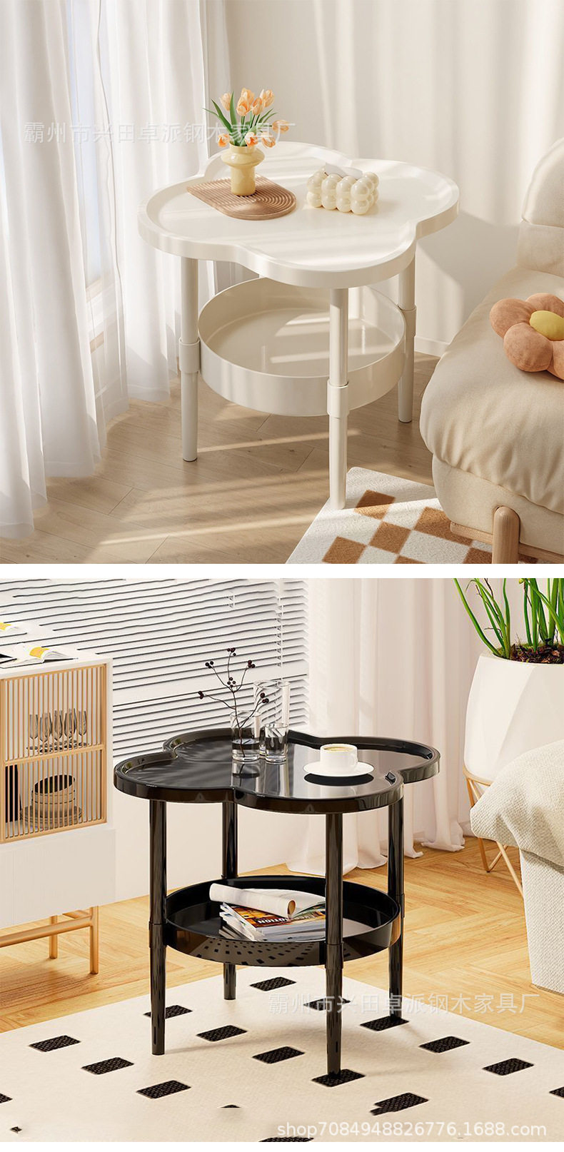 Thickened Four-Leaf Edge Bedroom Simple Movable Small Coffee Table Kitchen Storage Rack Multi-Functional Bedroom Bedside Table