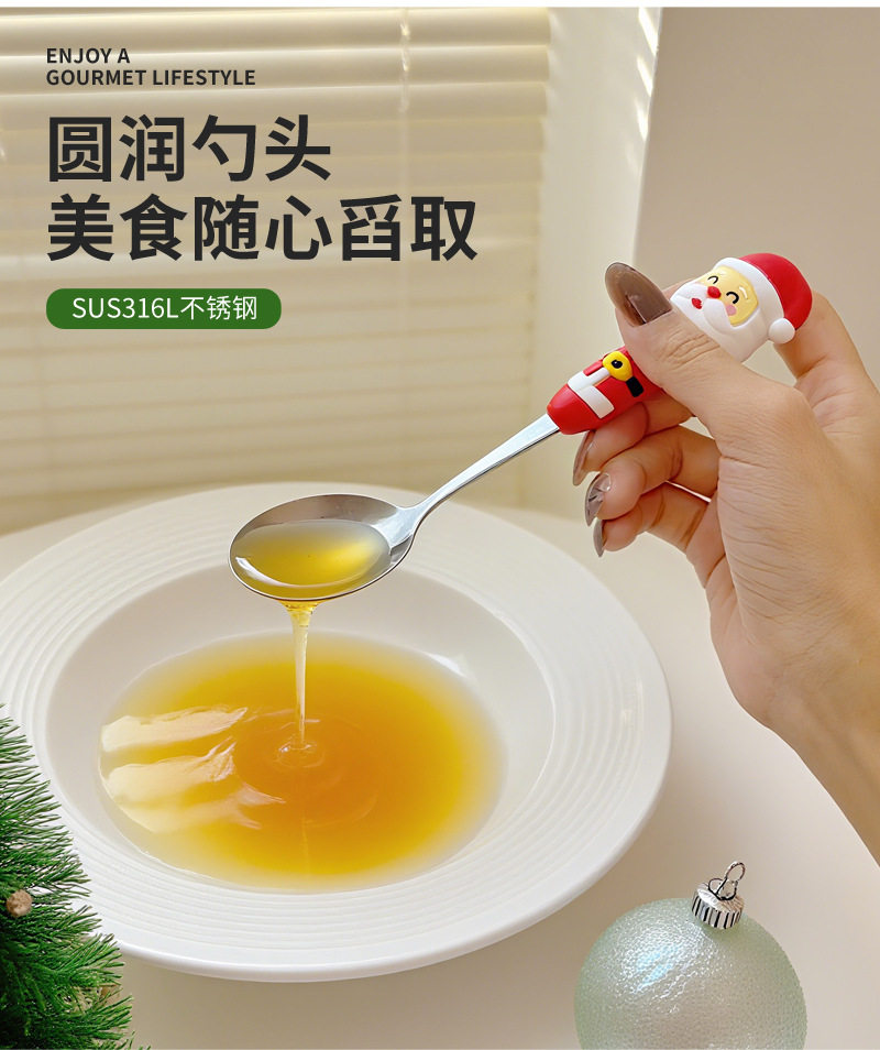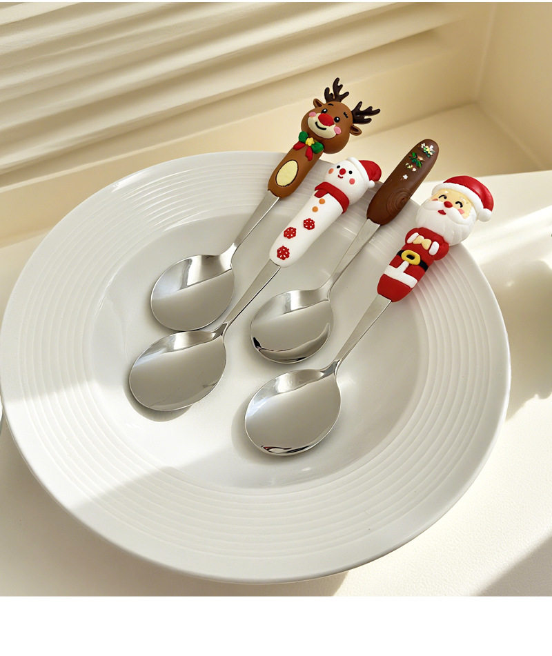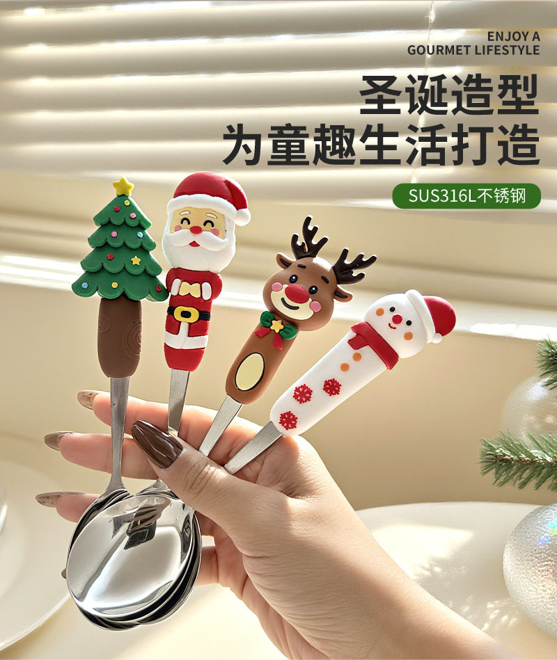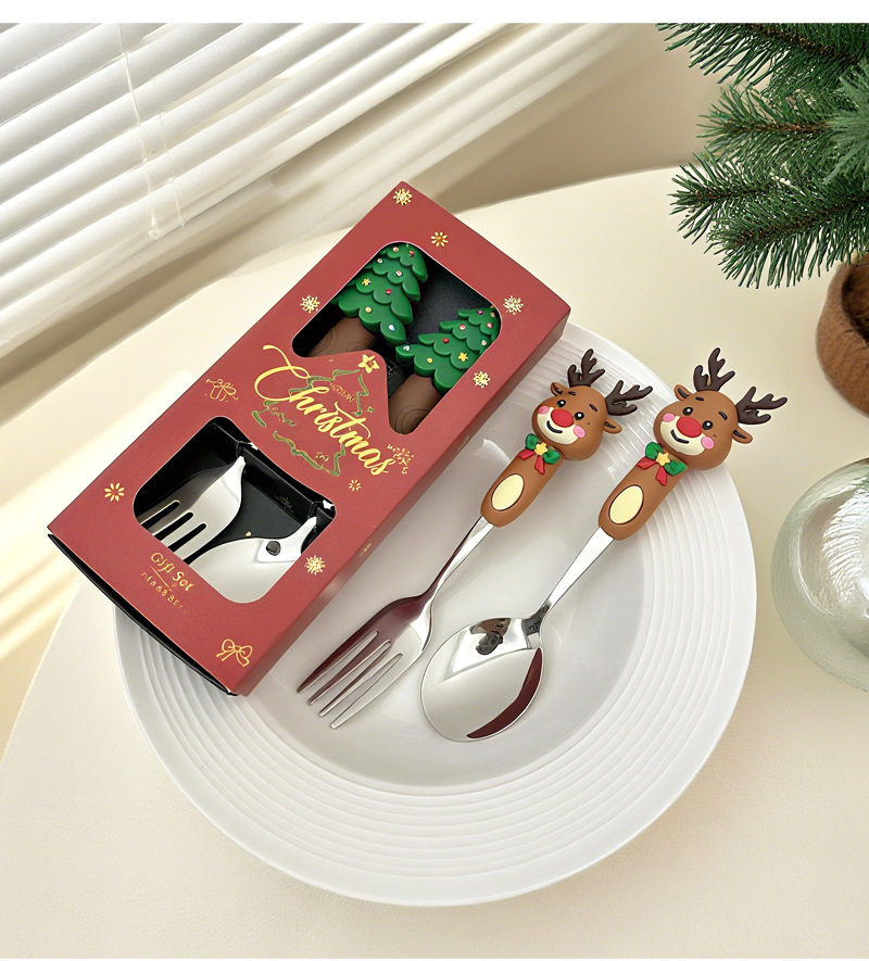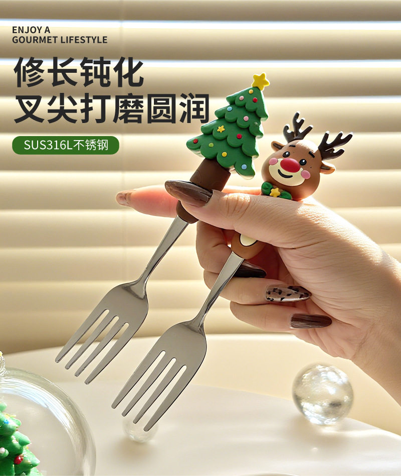 316L Christmas Spoon and Fork Creative Cartoon Santa Claus Elk Coffee Spoon Doll Dessert Spoon Fruit Fork Set