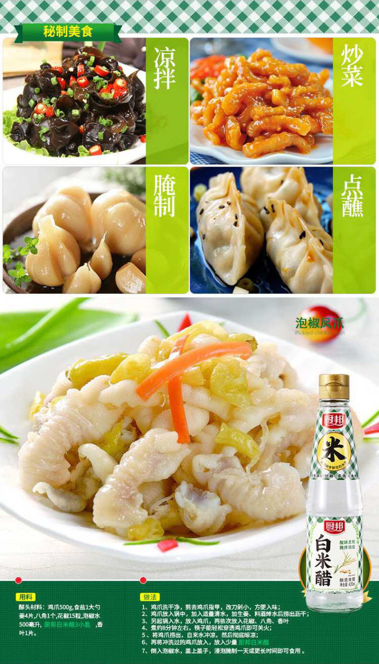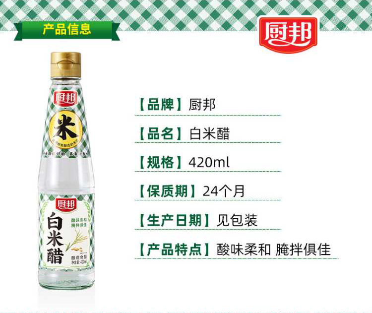 | Packaging specifications | Chubang white rice vinegar 420ml*1 bottle,Chubang white rice vinegar 420ml*2 bottles |