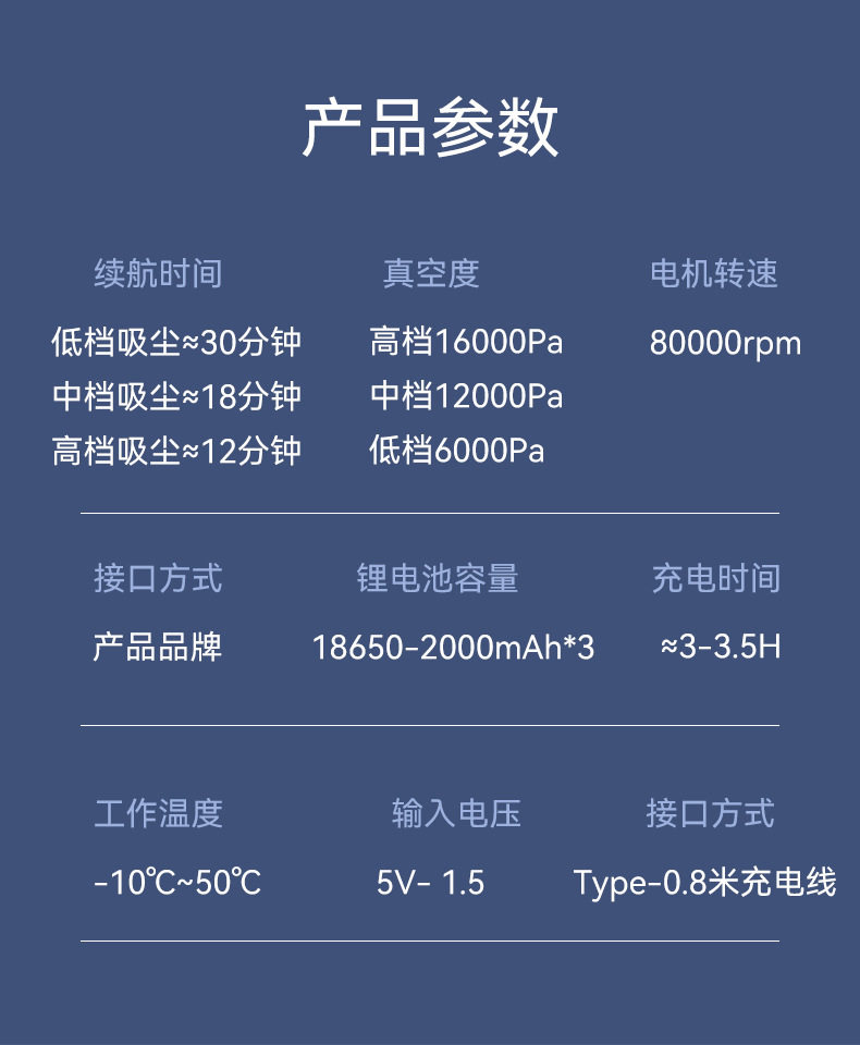 | Vacuum suction | 11000Pa |