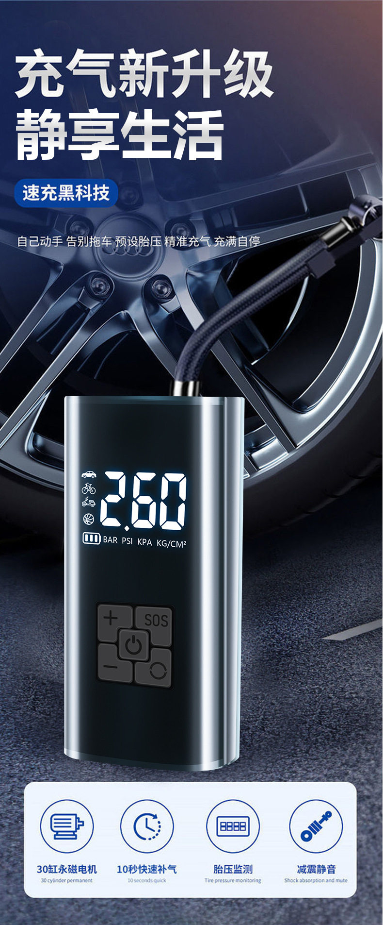 | Additional features | Lighting,Tire pressure gauge,Warning light,Usb charging |
