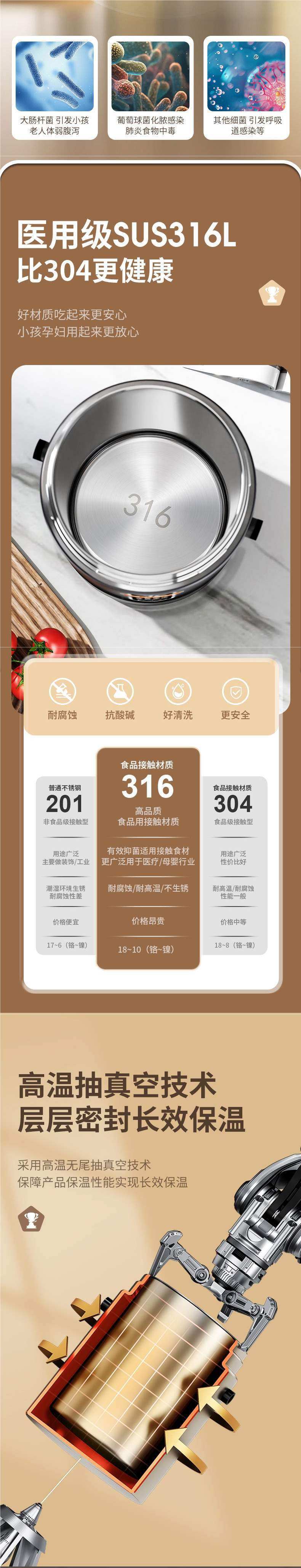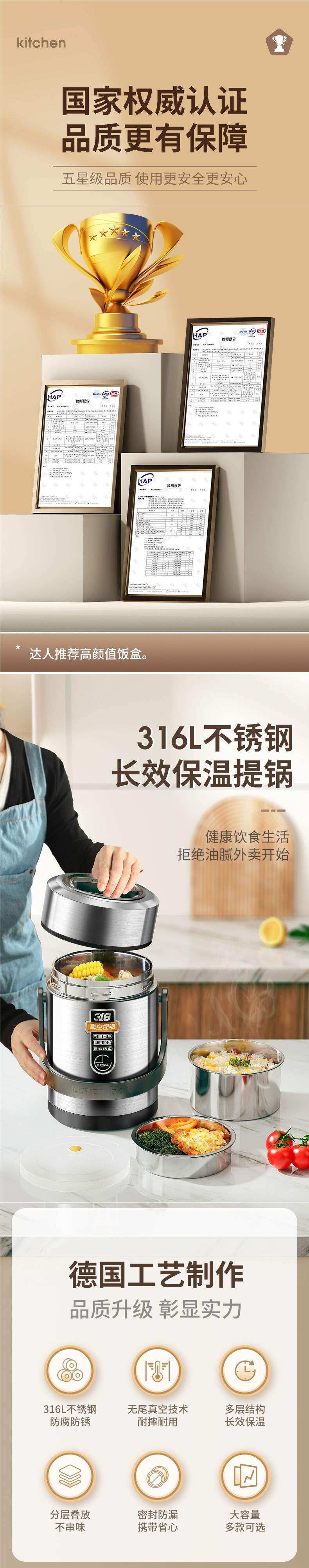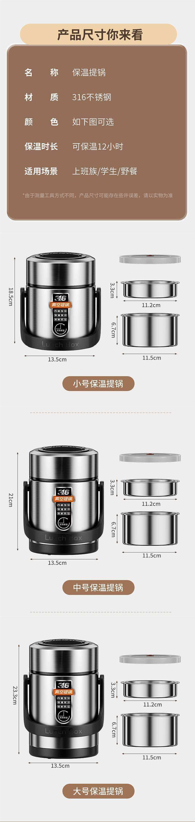 High-Efficiency Vacuum 24-Hour Insulation 316 Stainless Steel Student Party Office Worker Lunch Box Insulation Pot Rice Bucket