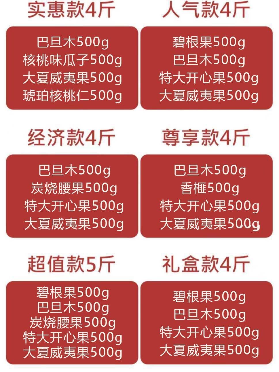| Taste | [affordable style 2kg] summer + ba + melon seeds + walnuts,ãstyle 2.5kgãopen+summer+ba+bi+waist,[popular style 2kg ] kai+bi+ba+summer,[exclusive style 2kg] open + summer + pa + cashew nut,Gift box* pistachios + summer fruits + almonds + pecans,Gift box*extra large fruit+summer+ba+bi+waist,ãgift 2kgãsummer+bamboo+birch+torreya,[economic style 2kg] open + summer + pa + charcoal grill |