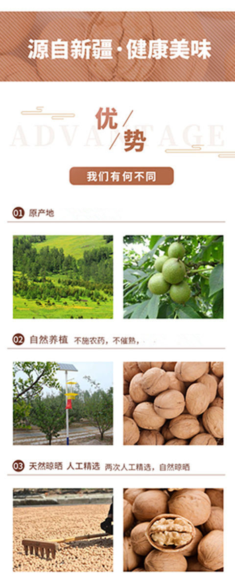 | Packaging specifications | Thin-skinned walnut tasting pack 100g,Thin-skinned large walnuts 1.0kg free clip,Thin-skinned large walnuts 1.5kg free clip,Thin-skinned large walnuts 2.5kg free clip |