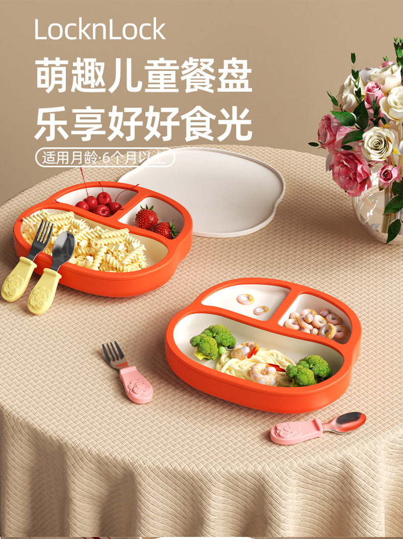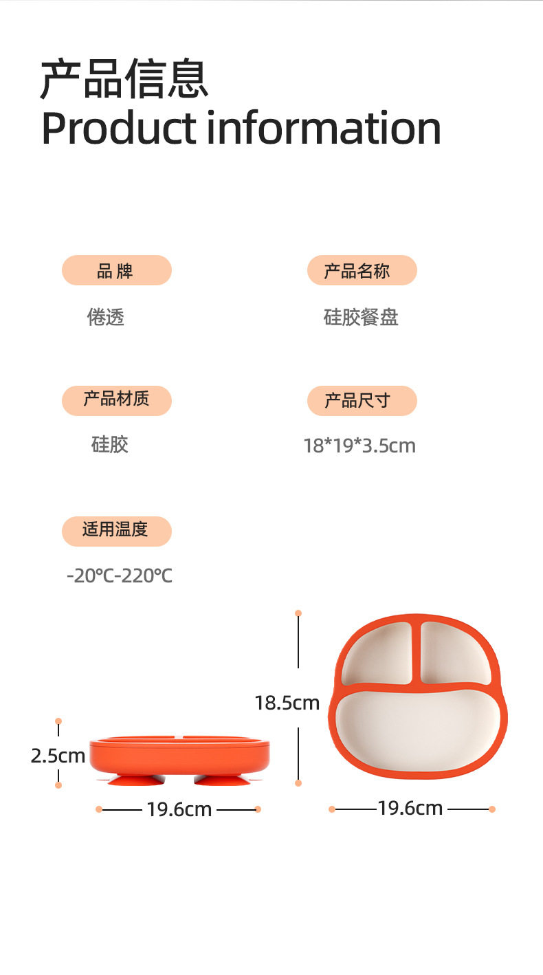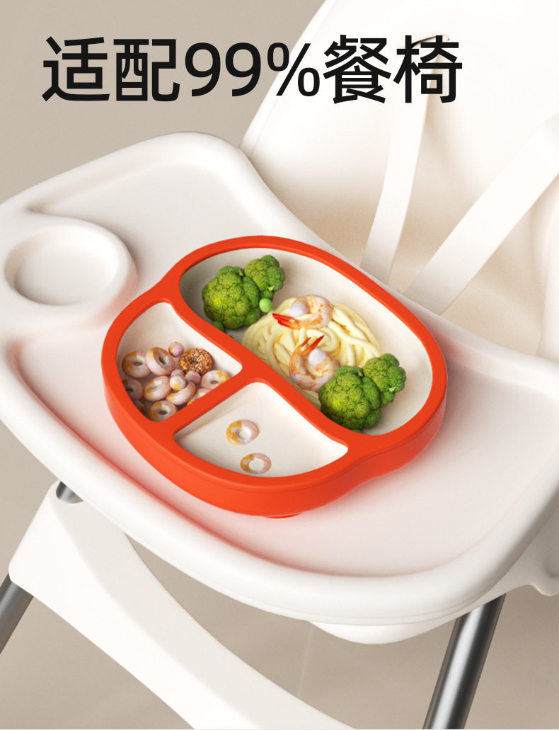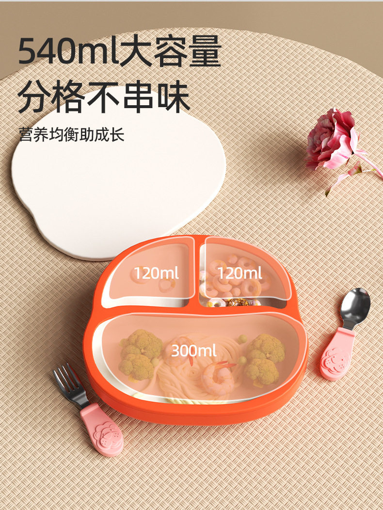 Baby Meal Plate, Baby Suction Cup, Kidsren's Silicone Straw, Food Bowl, Anti-Fall Compartment Plate, Training Spoon, Tableware Set