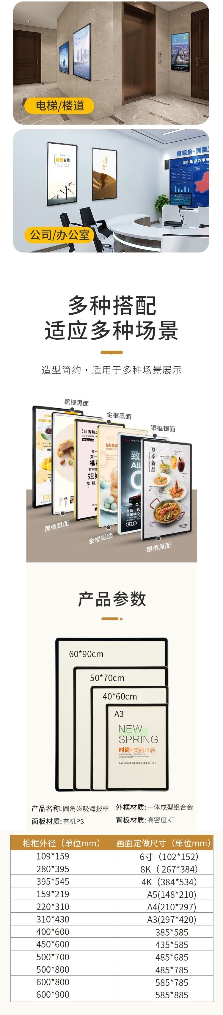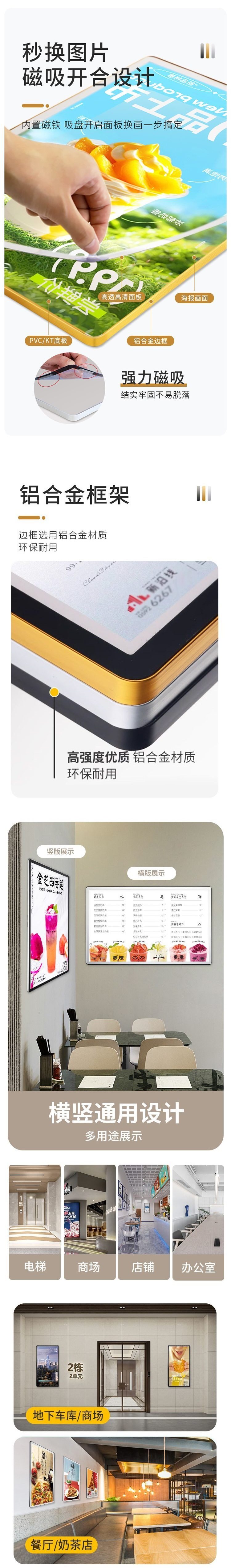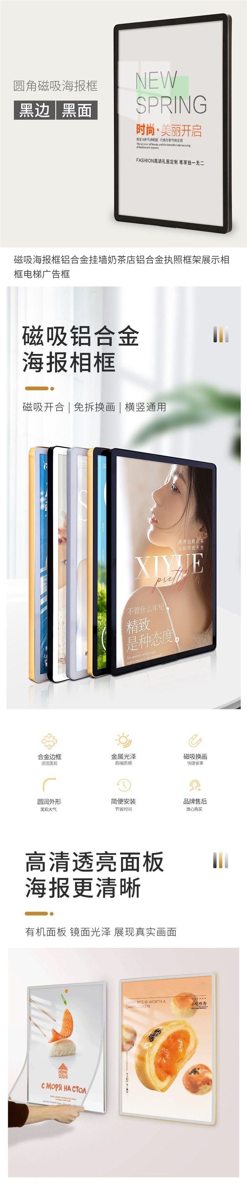 Magnetic Poster Frame Aluminum Alloy Wall Hanging Milk Tea Shop License Frame Display Photo Frame Elevator Advertising