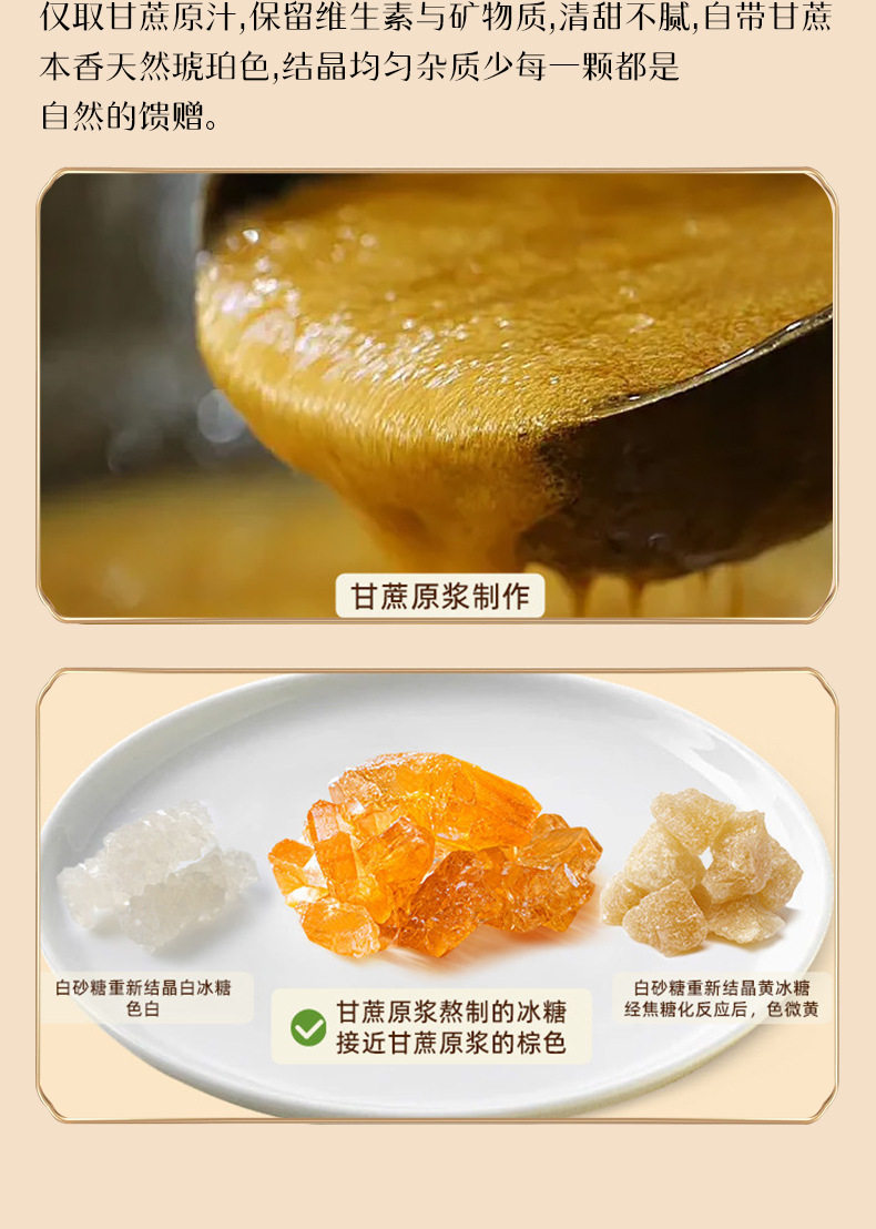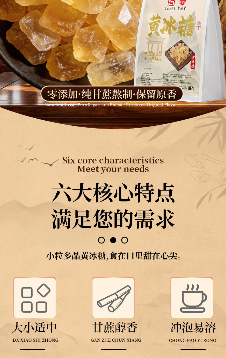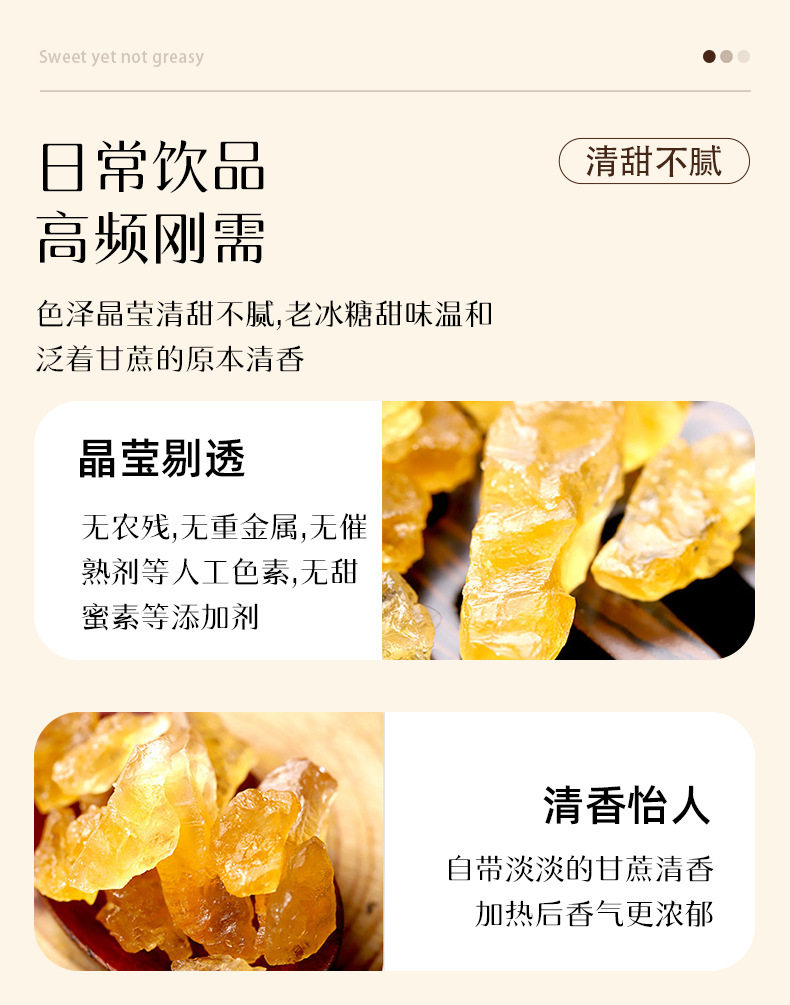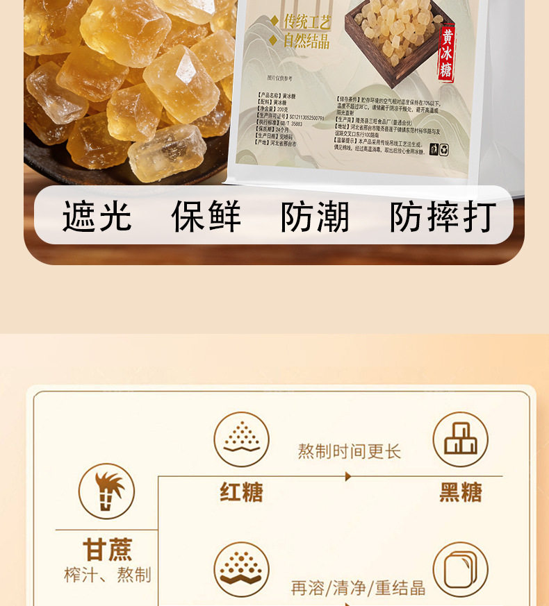 | Packaging specifications | Yellow rock sugar 50g*1 bag,Yellow rock sugar 200g*1 bag,Yellow rock sugar 400g*1 bag,Yellow rock sugar 150g*1 bottle,Yellow rock sugar 500g*1 bottle,Yellow rock sugar 1500g*1 bottle |