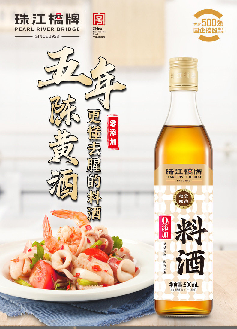 Zhujiang Bridge Brand 0 Added Cooking Wine 500ml Household Cooking Wine Brewing Flavoring Aged Yellow Wine Cooking Stir-Frying