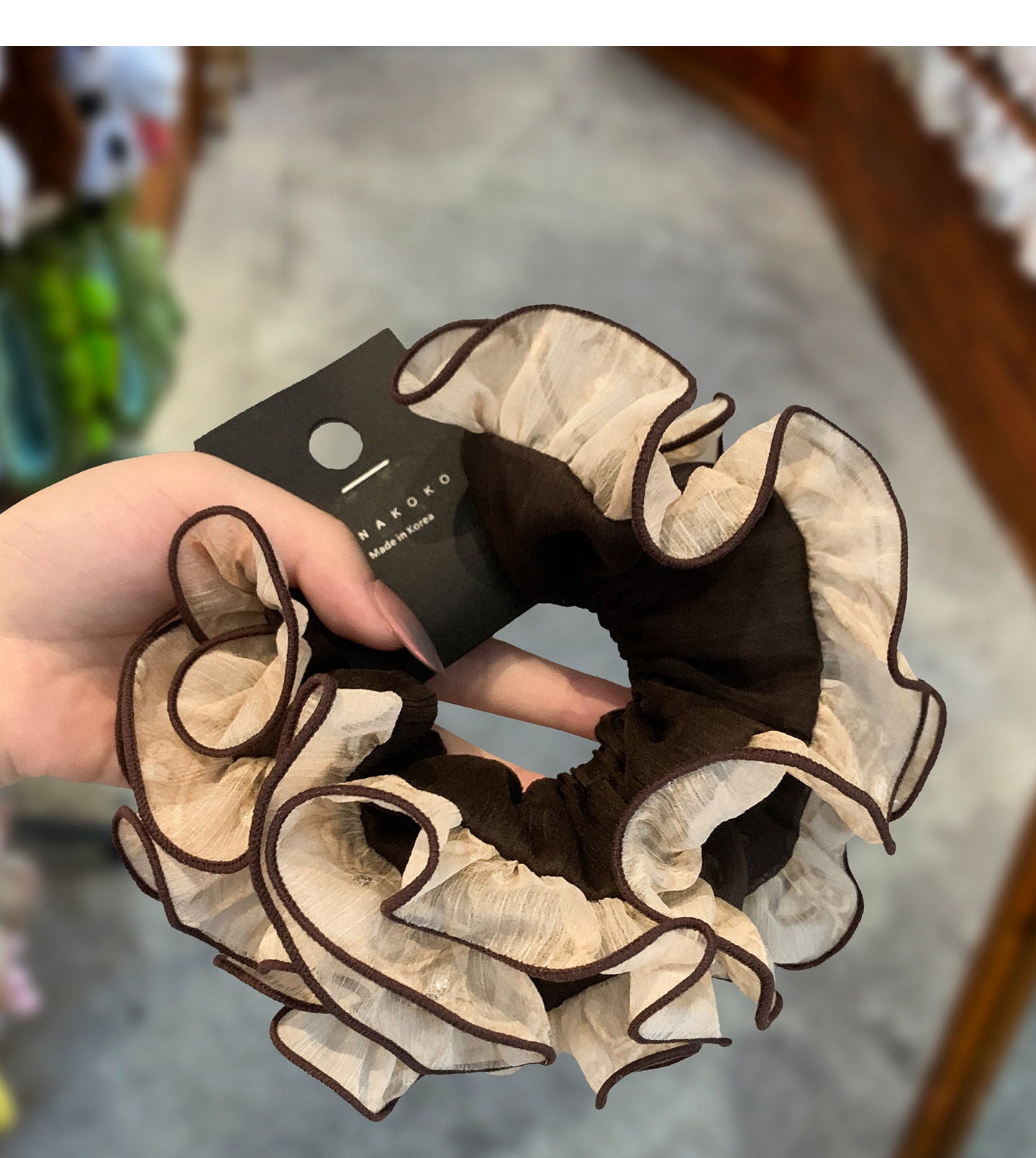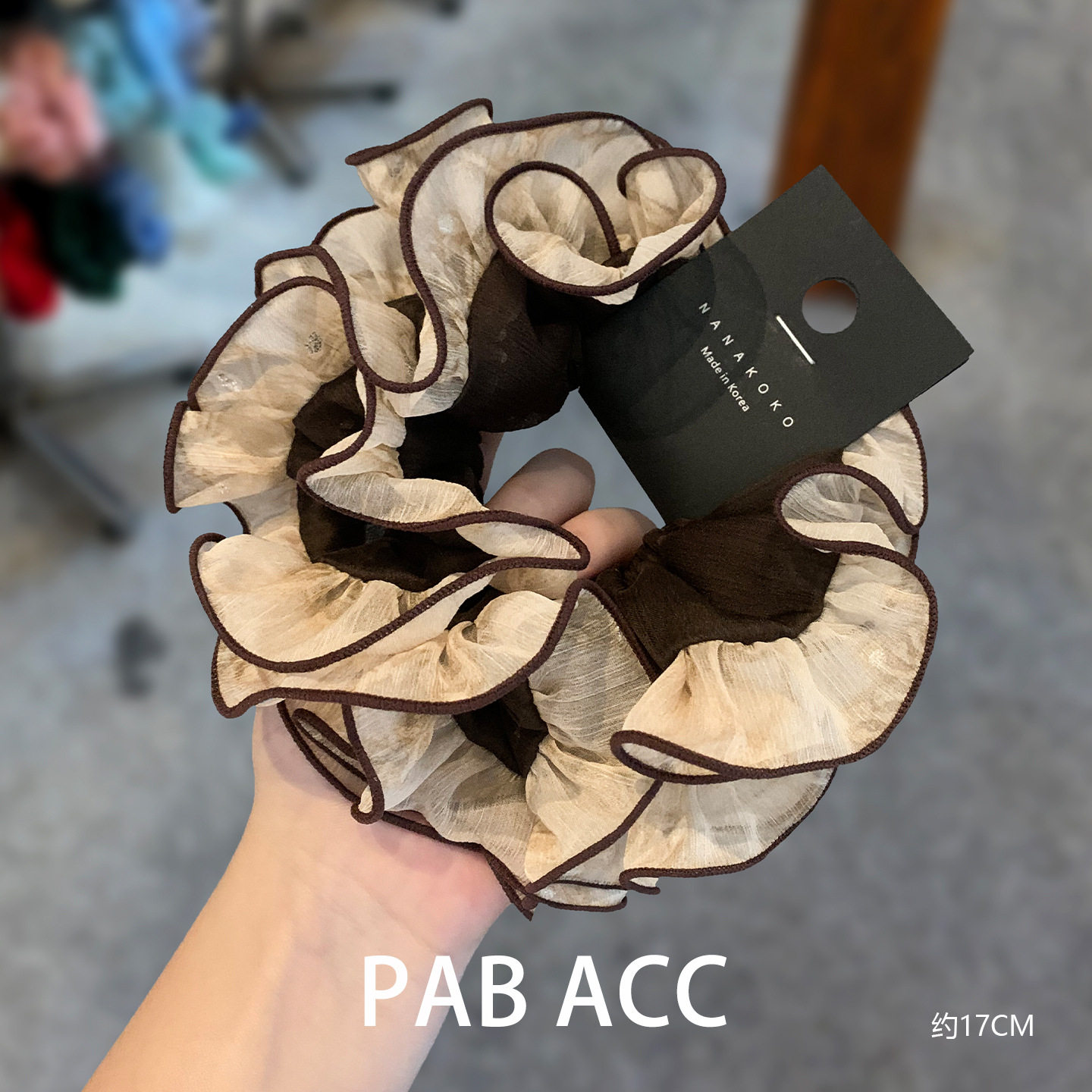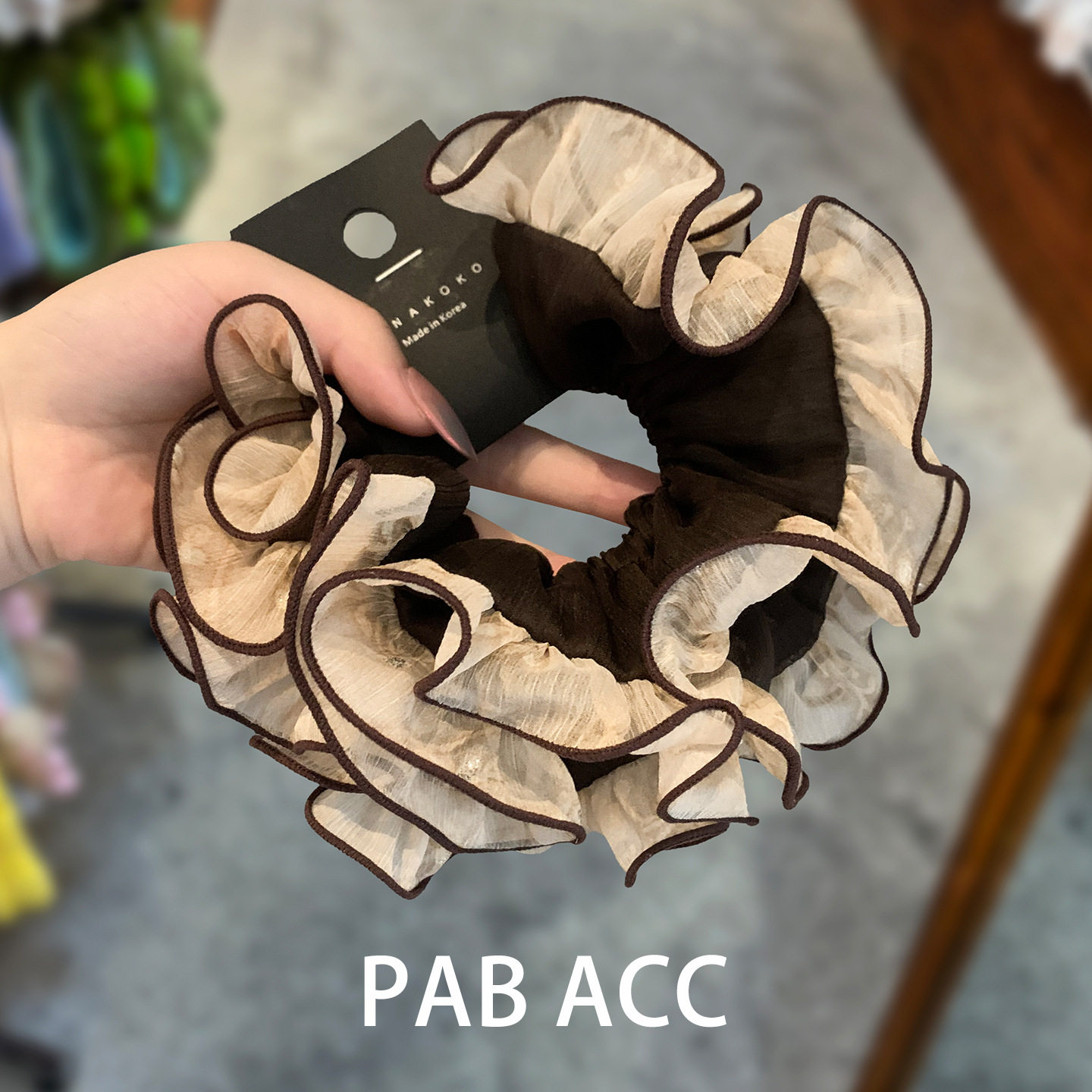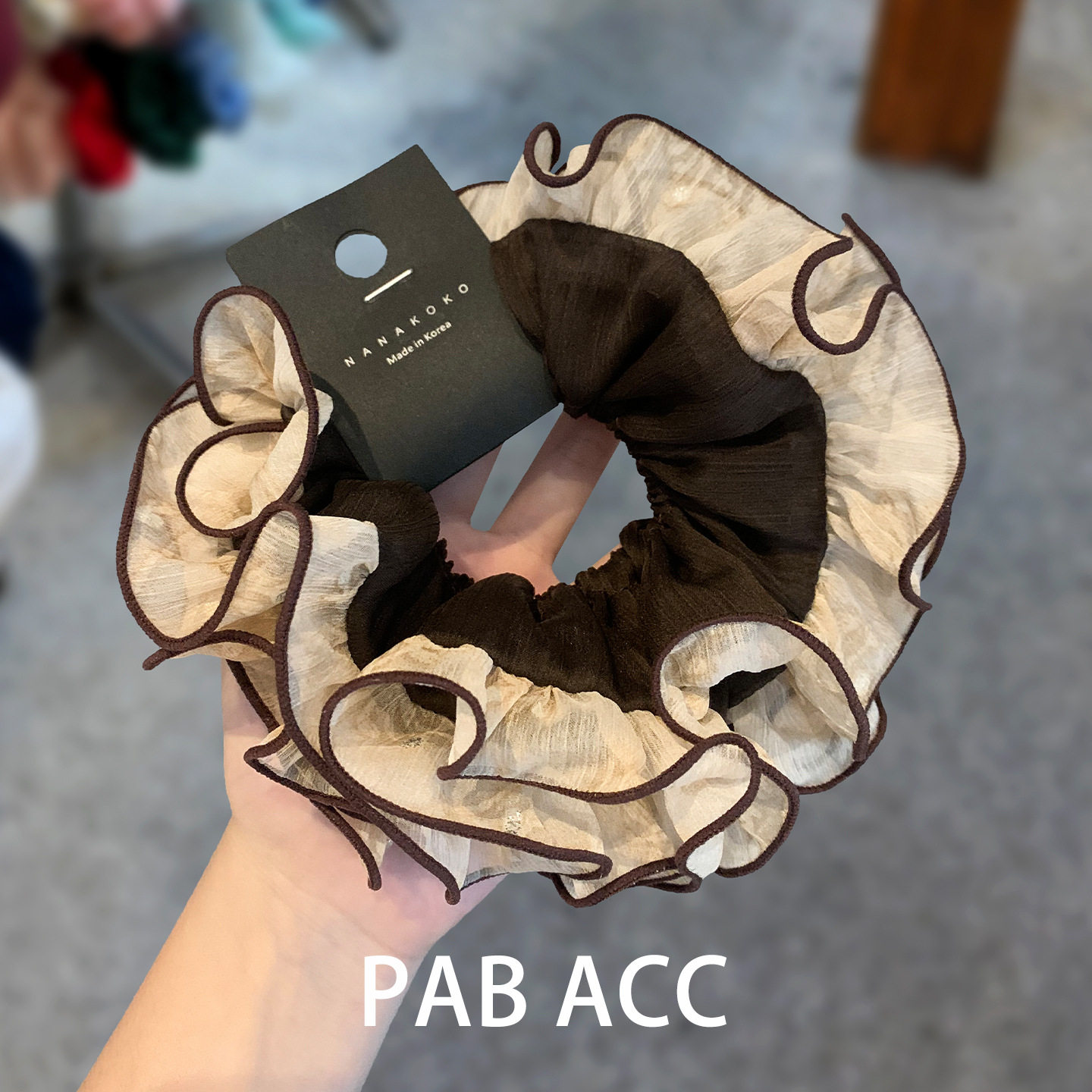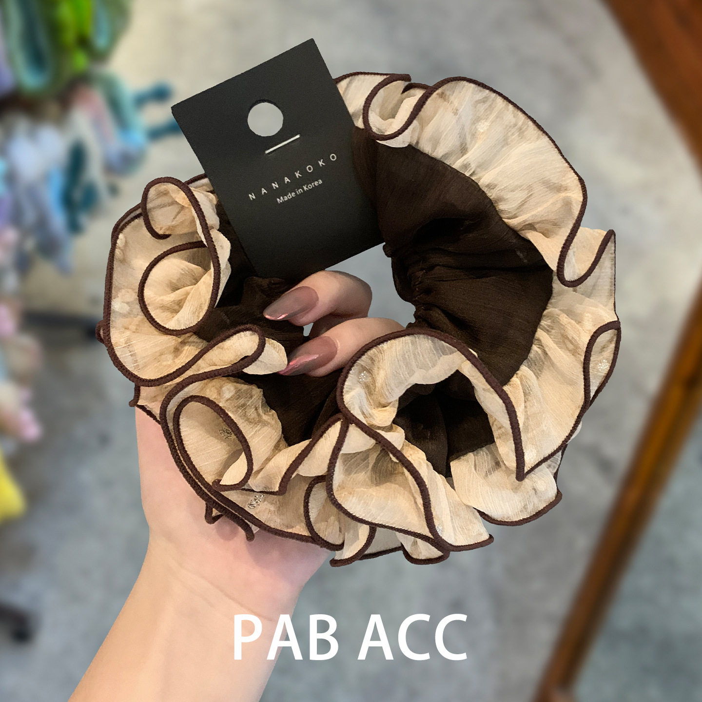 Korean New Niche Double-Layer Contrasting Color Silk Gauze Ear-Hemmed Sausage Ring Three-Dimensional Full Hair Tie Ball Head Flower Girl