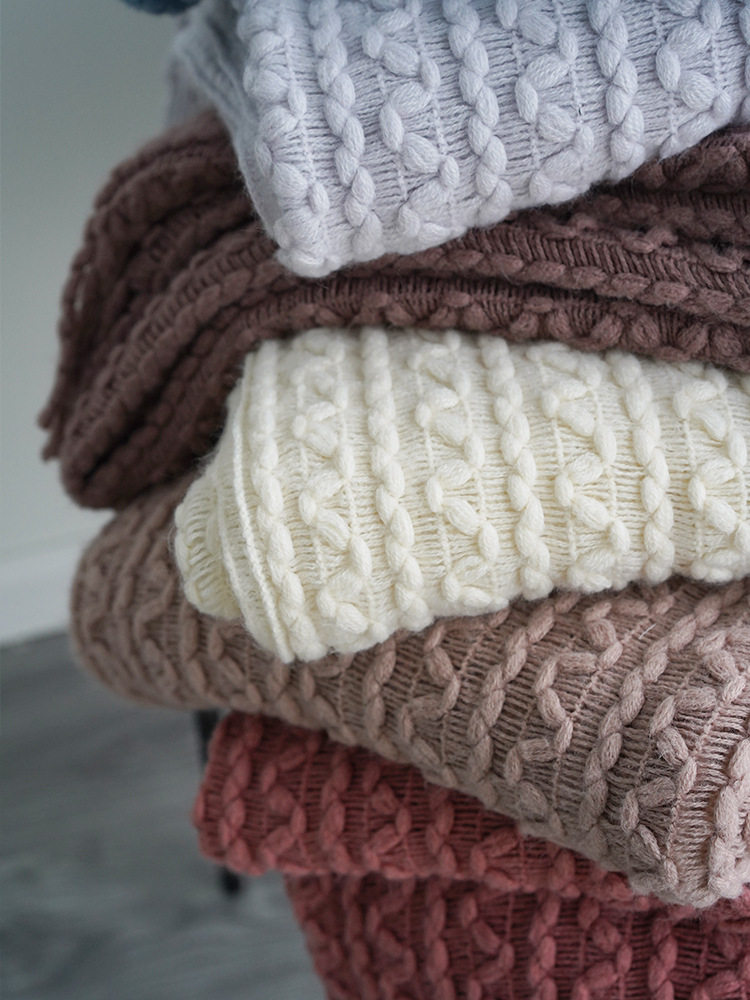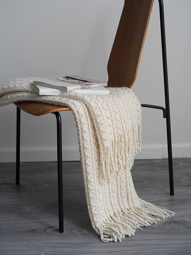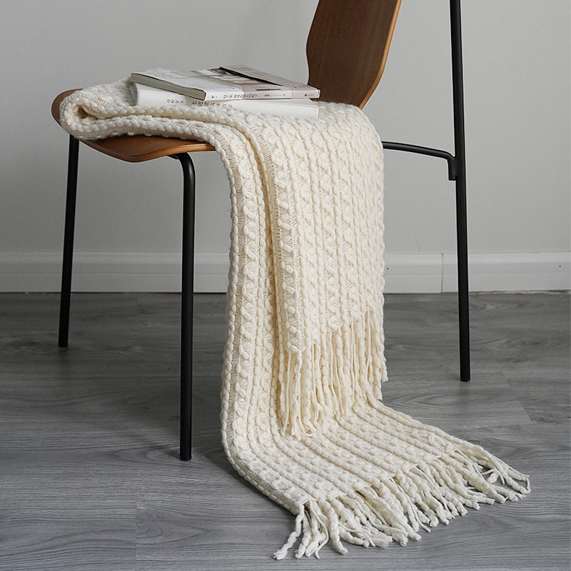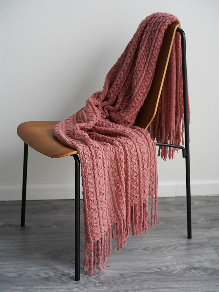 Foreign Trade Knitted Blanket Cross-Border Factory Direct Supply Nordic Style Solid Color Knitted Blanket Blanket One Piece Drop Shipping Wool Flower