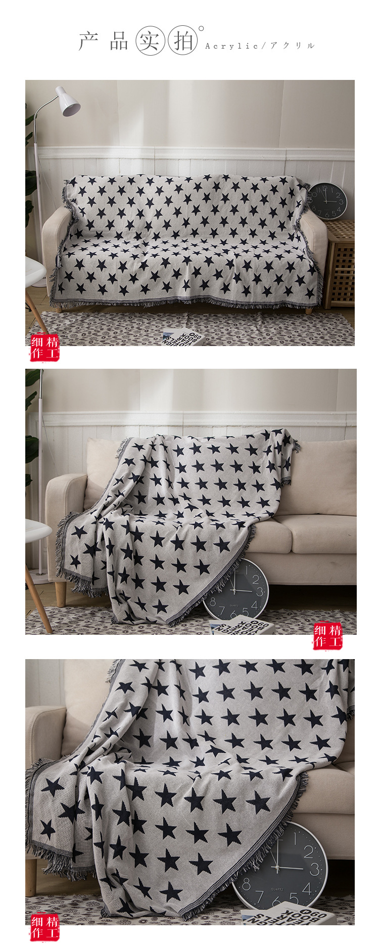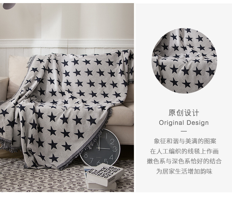 Washable European Style Blue Star Non-Slip Sofa Cover Travel Blanket Thread Blanket Ready Stock Star