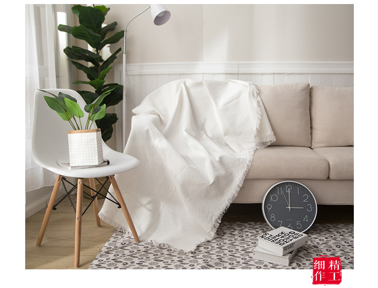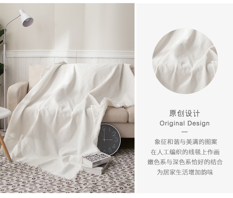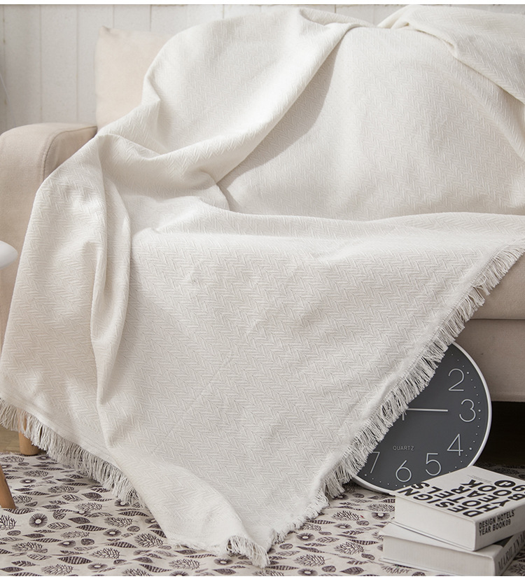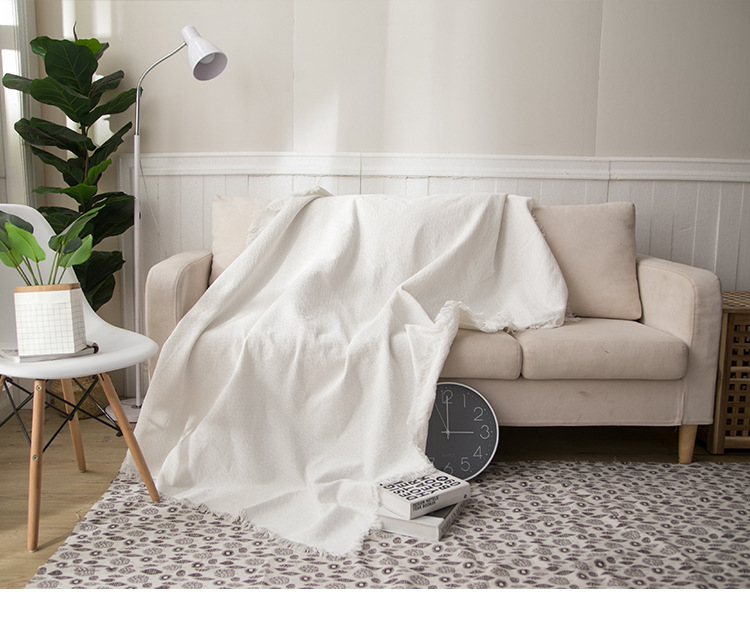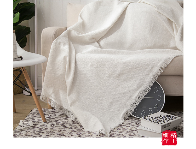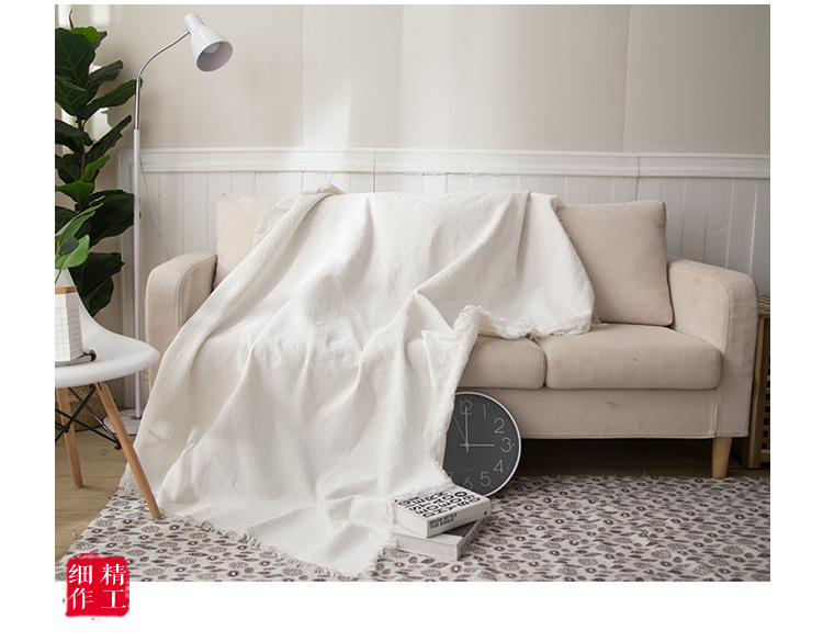 Dropshipping Knitted Off-White Sofa Blanket European Pastoral Cotton Thread Four-Season Thread Throw Blanket