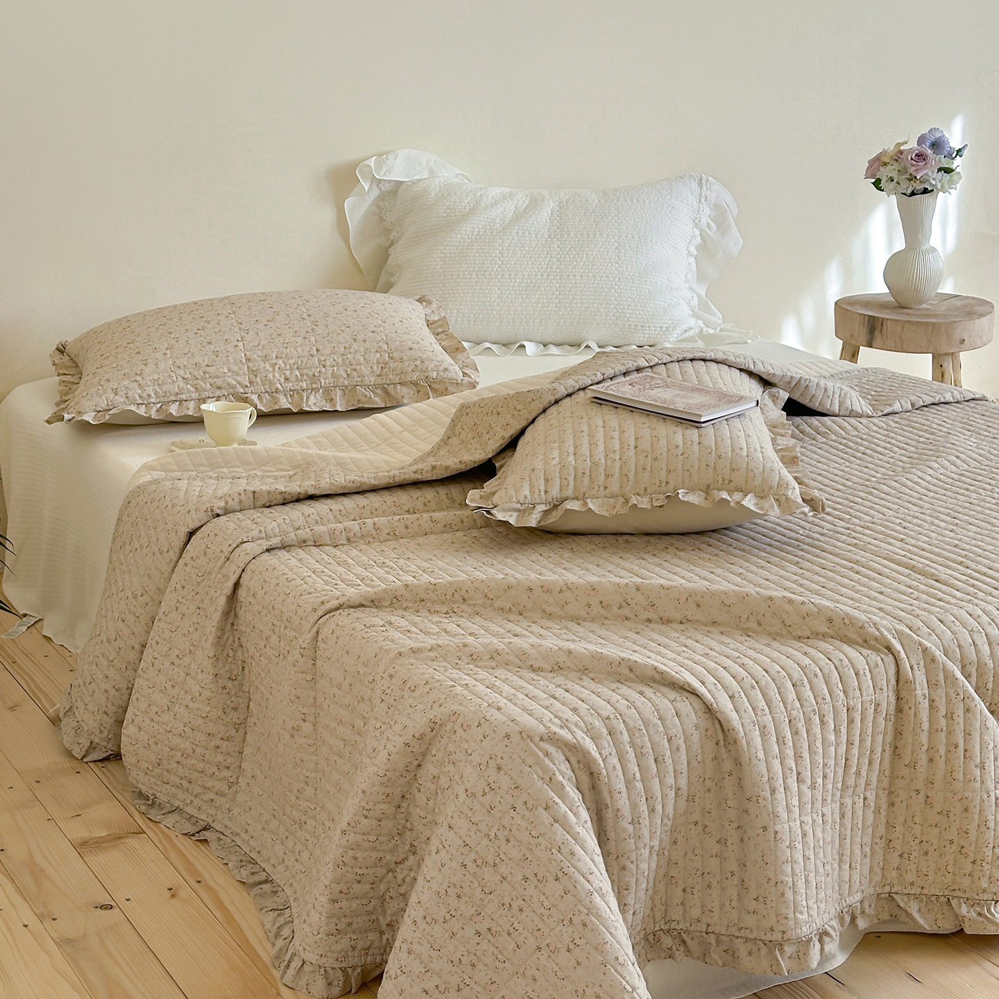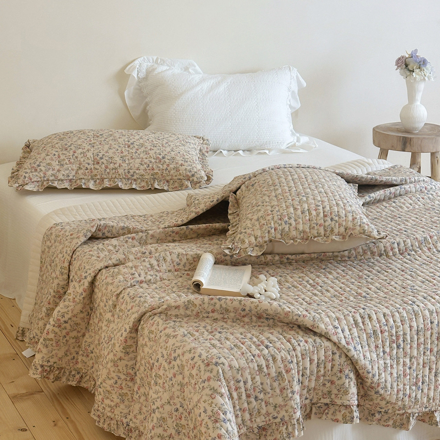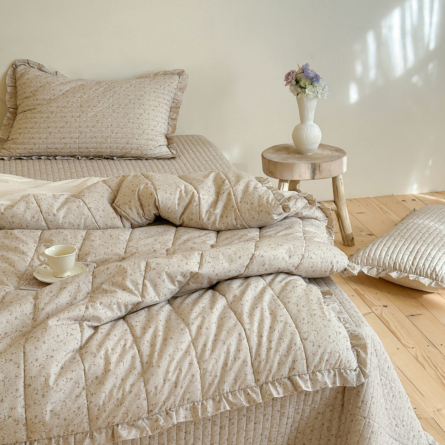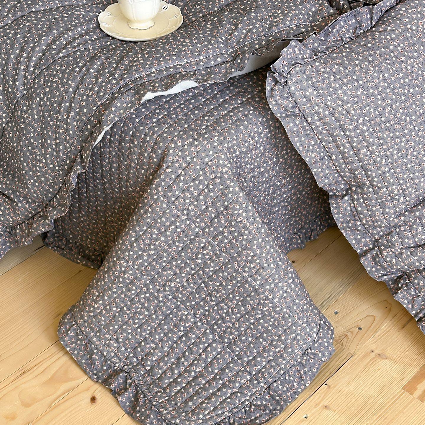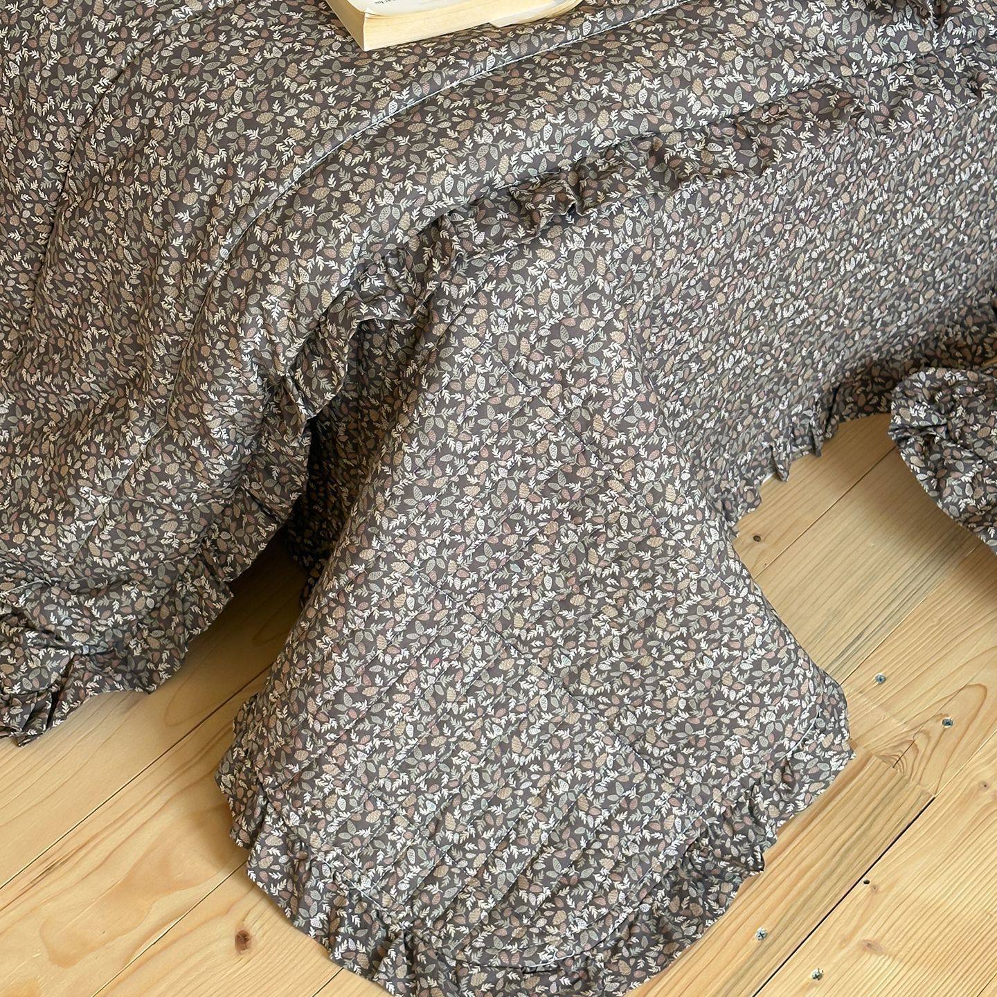 French Retro Style Cotton and Linen Bed Cover Three-Piece Set Floral Ruffle Multi-Functional Quilted Quilt Cover Four-Piece Bedding Set