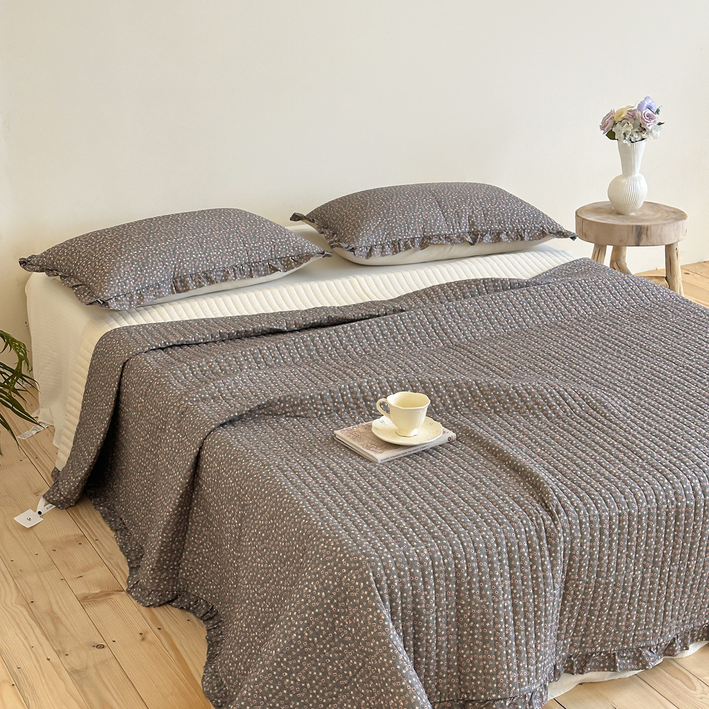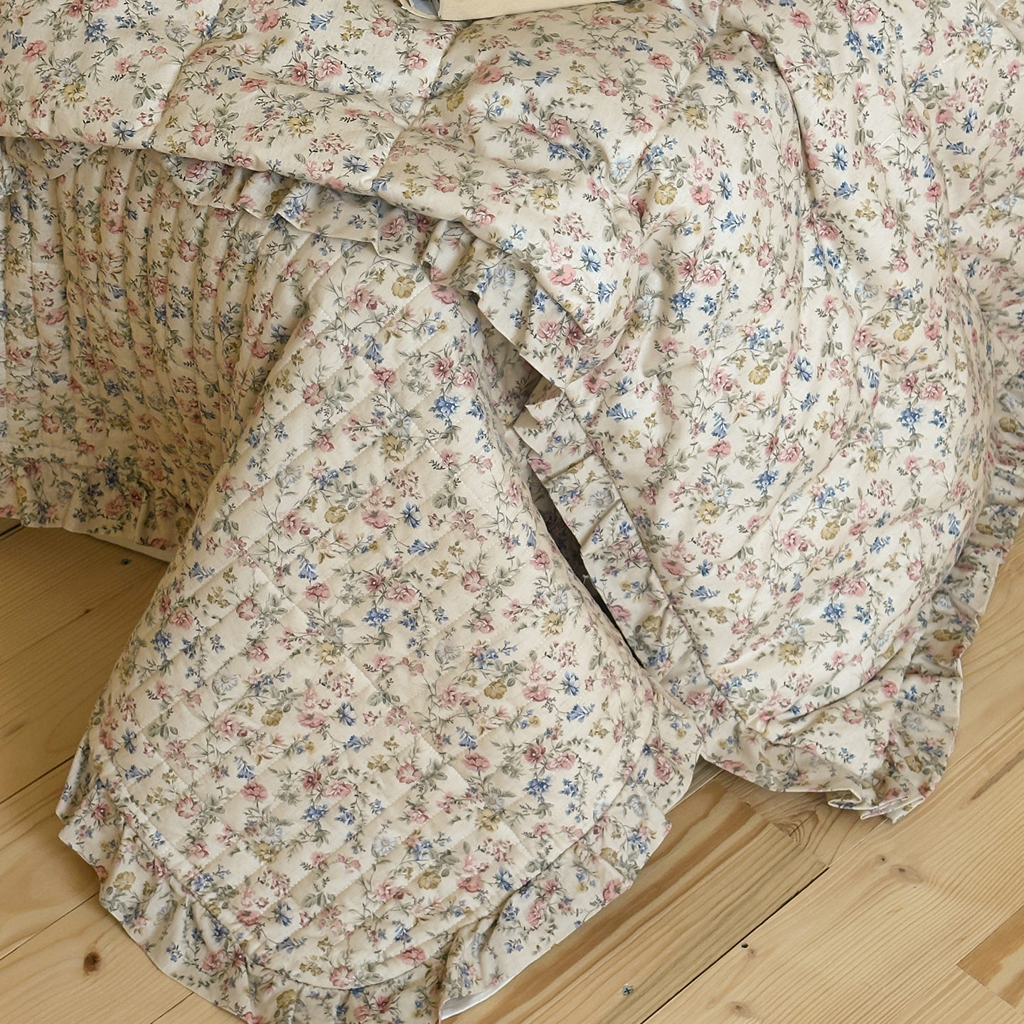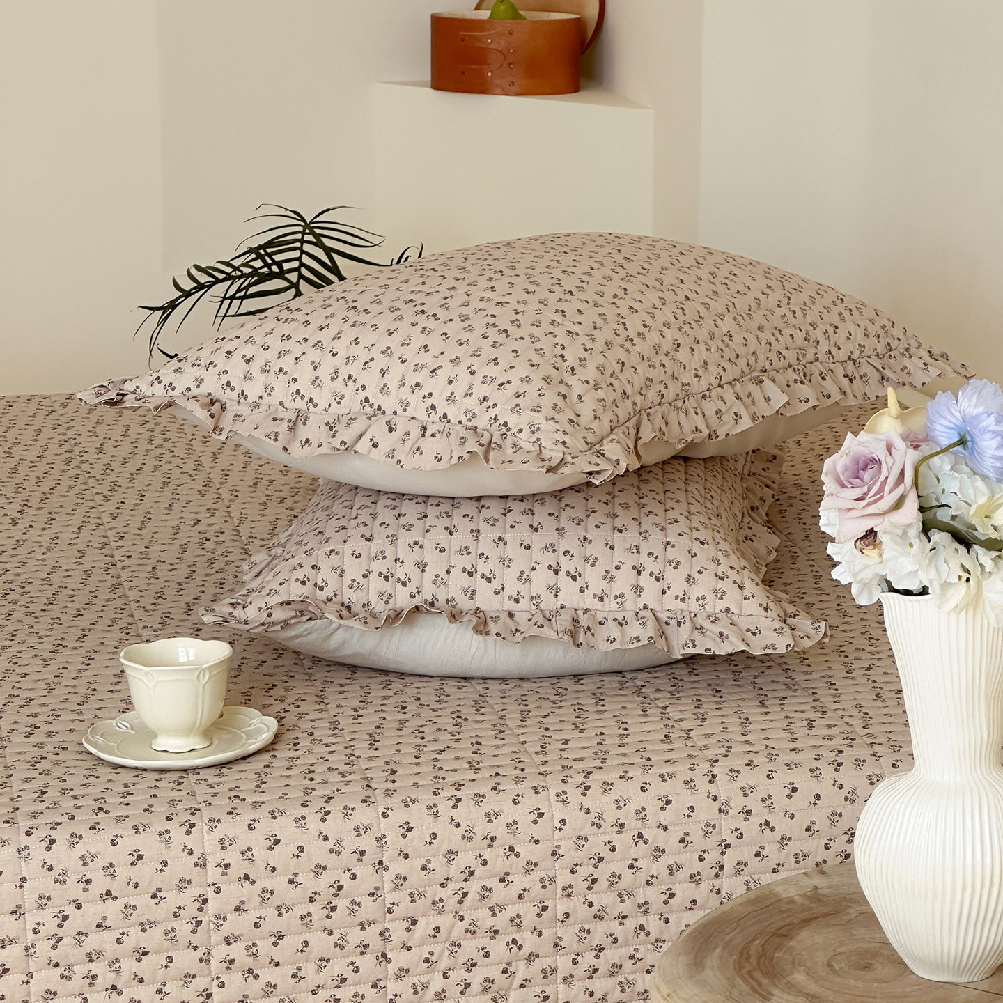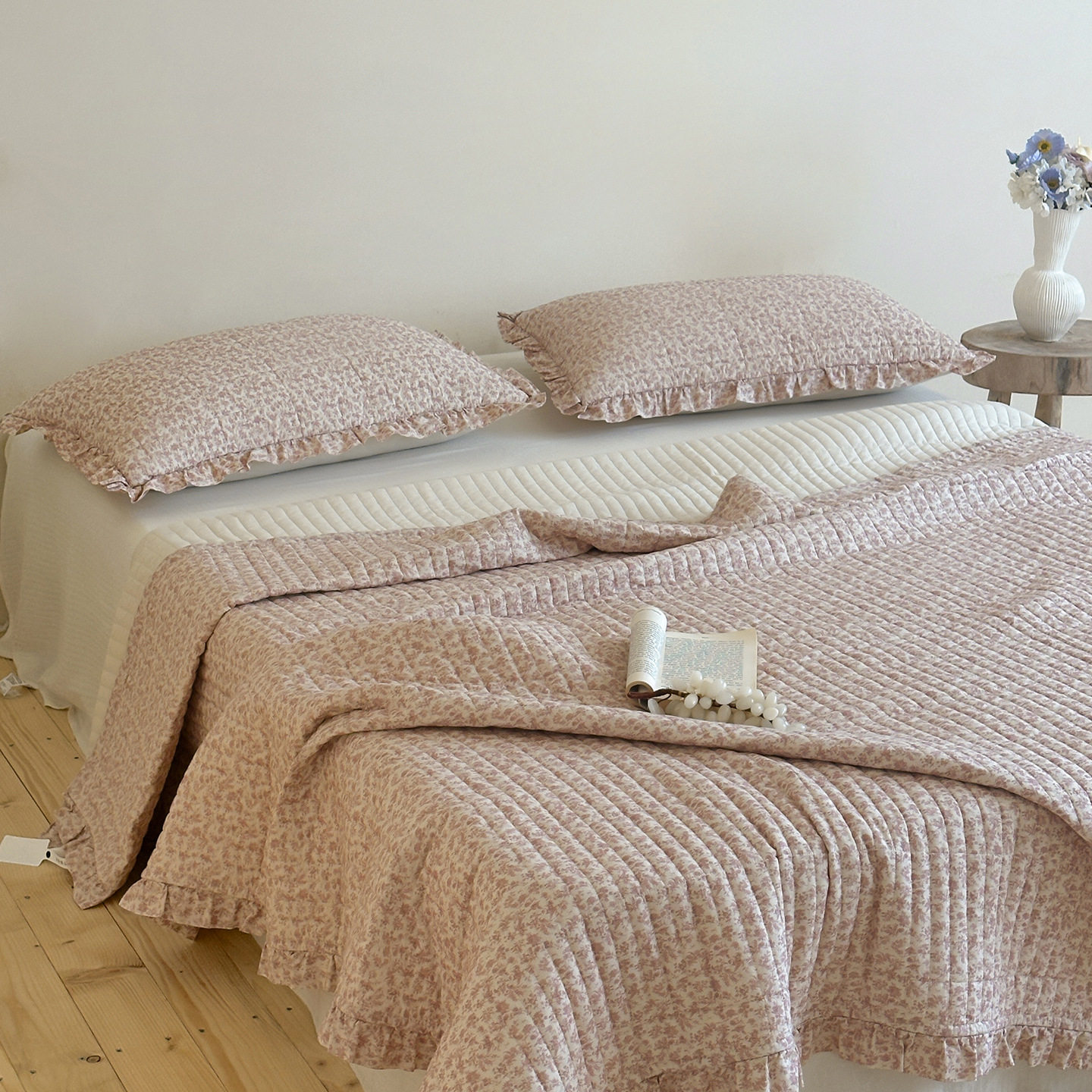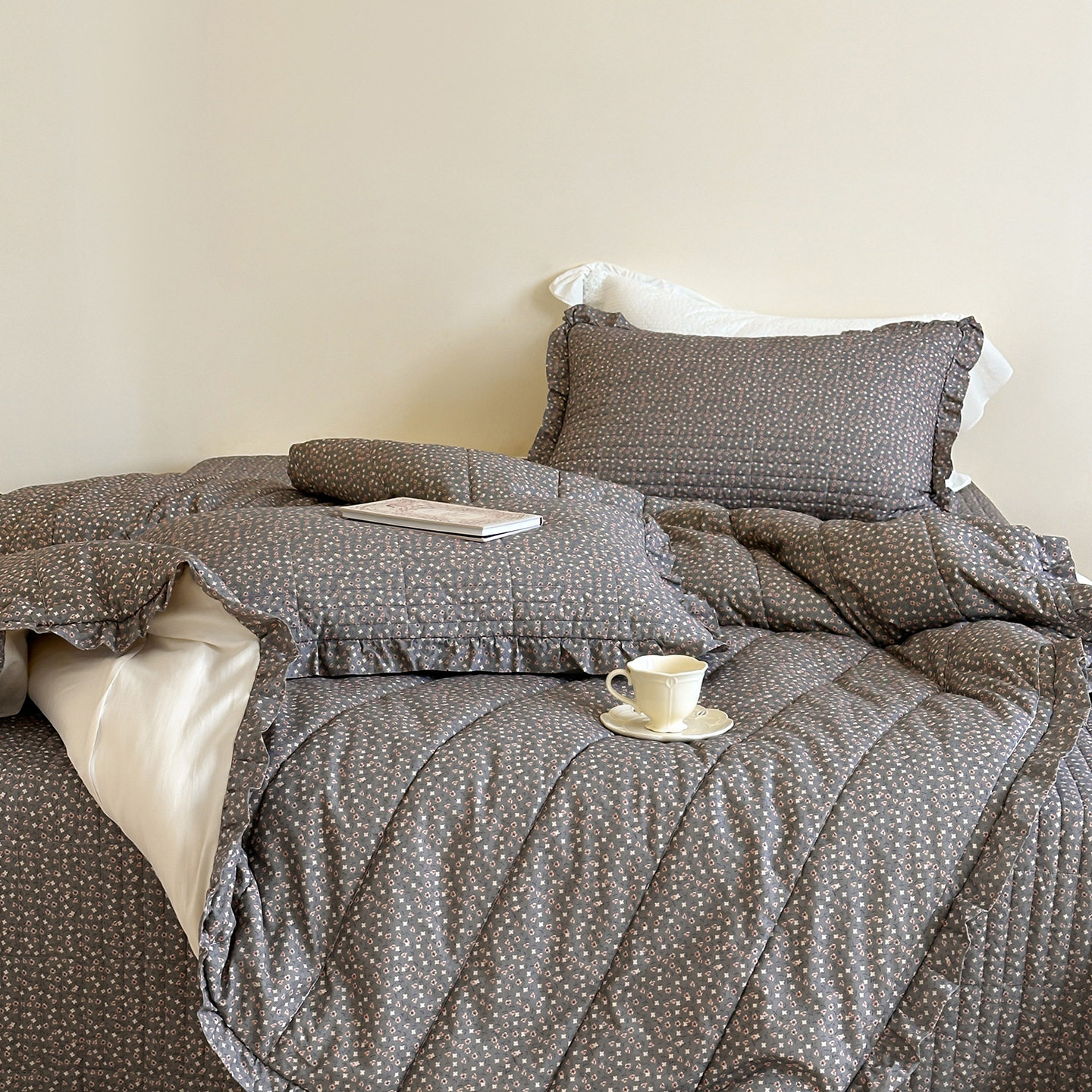 French Retro Style Cotton and Linen Bed Cover Three-Piece Set Floral Ruffle Multi-Functional Quilted Quilt Cover Four-Piece Bedding Set
