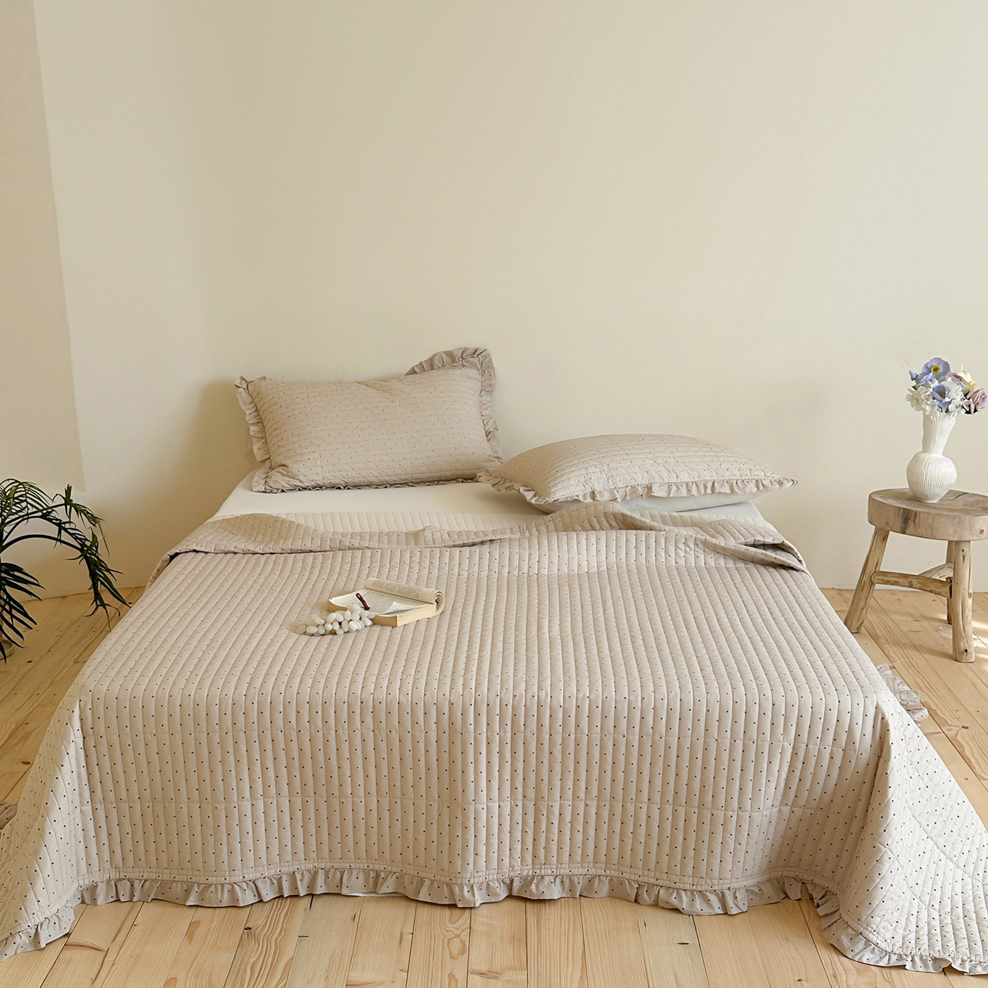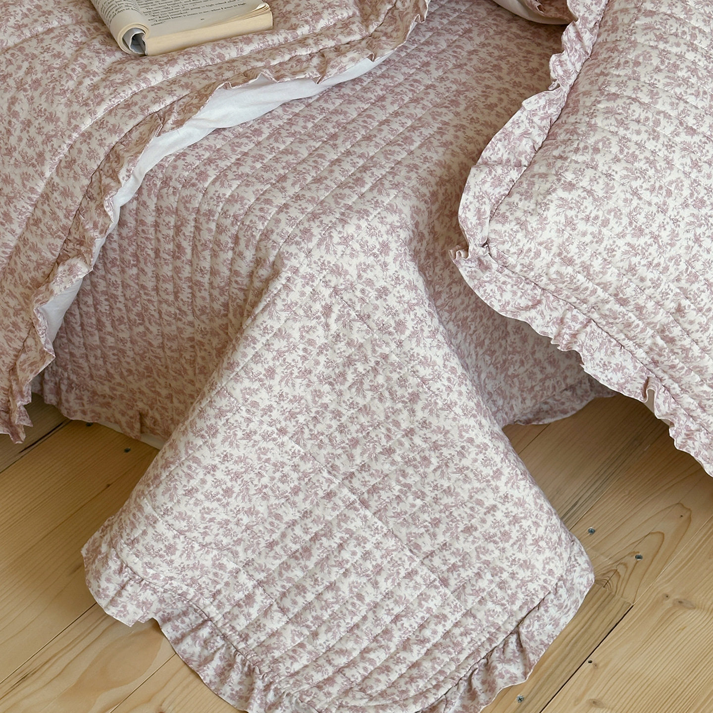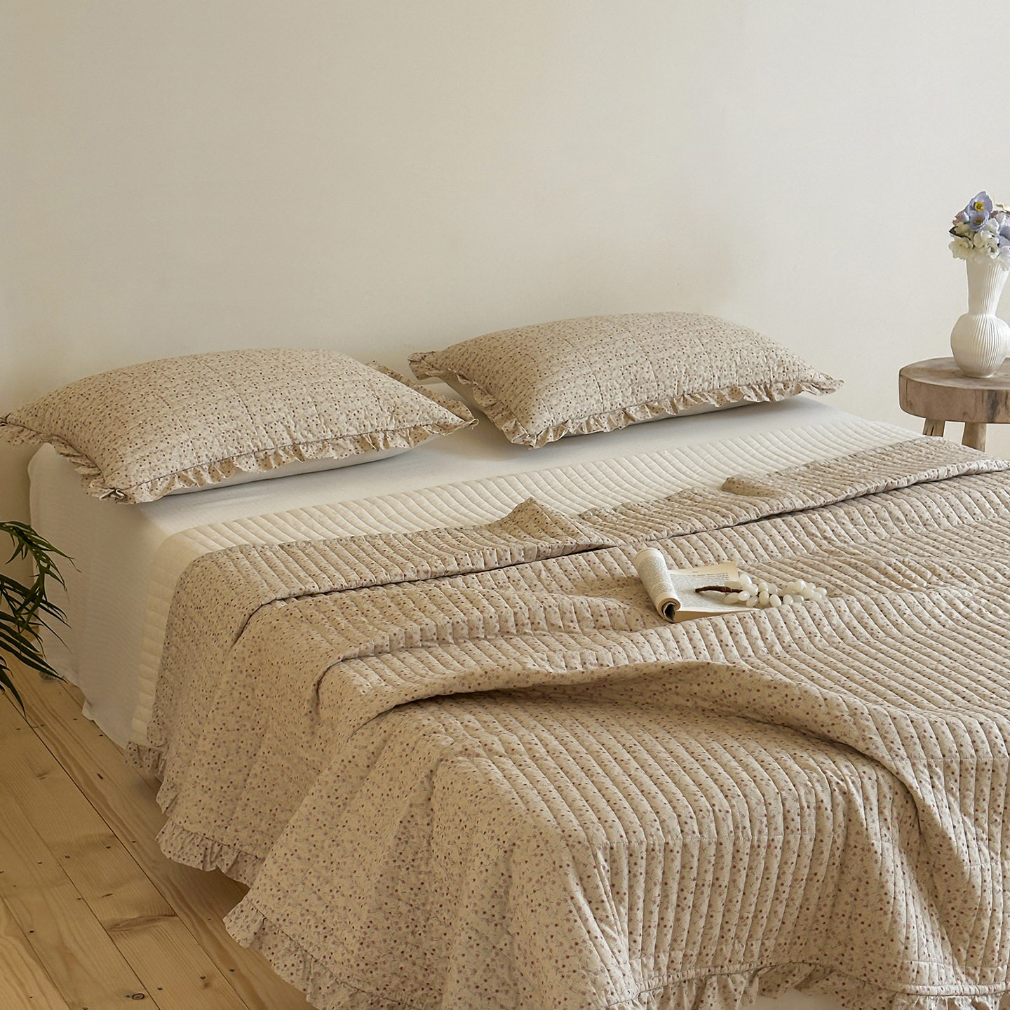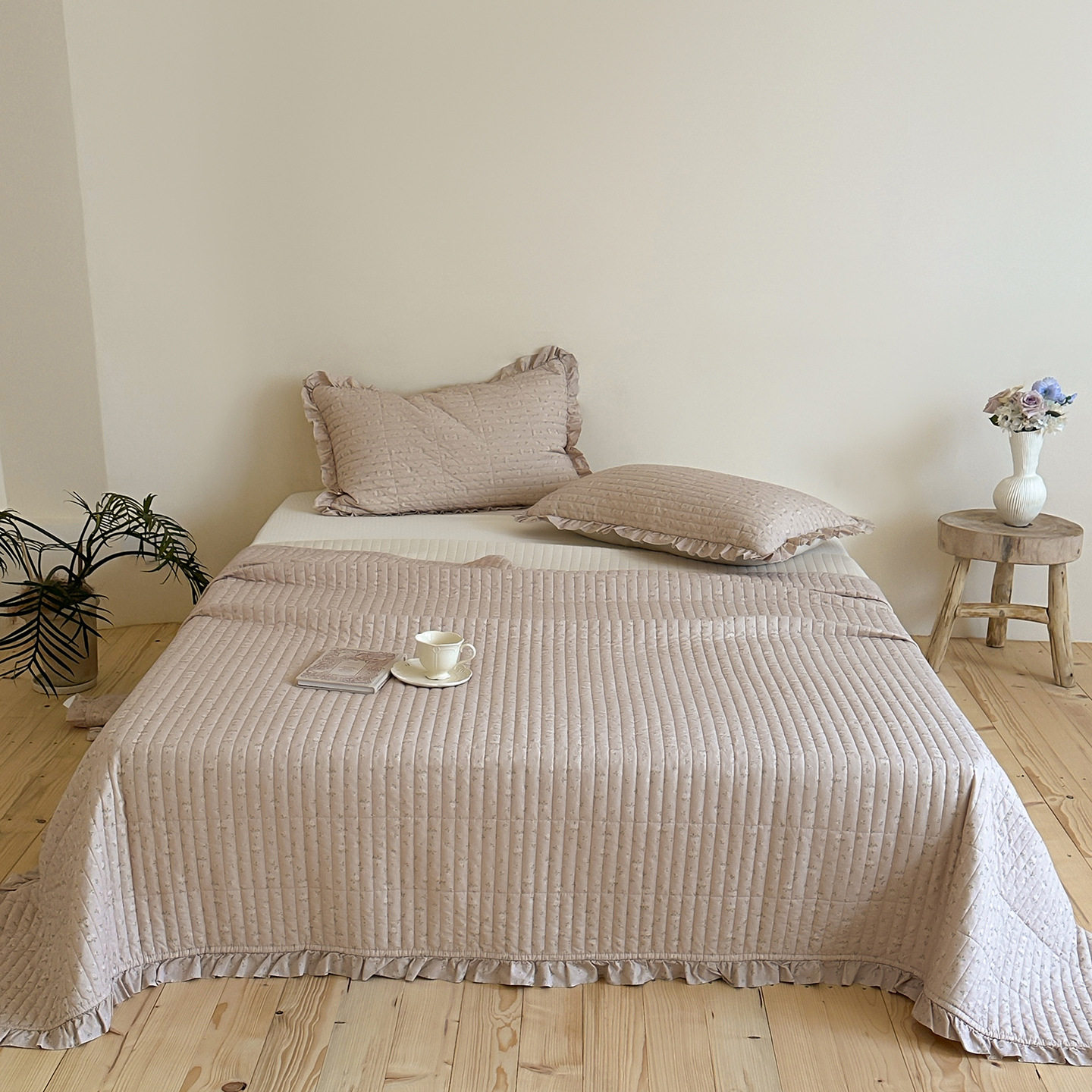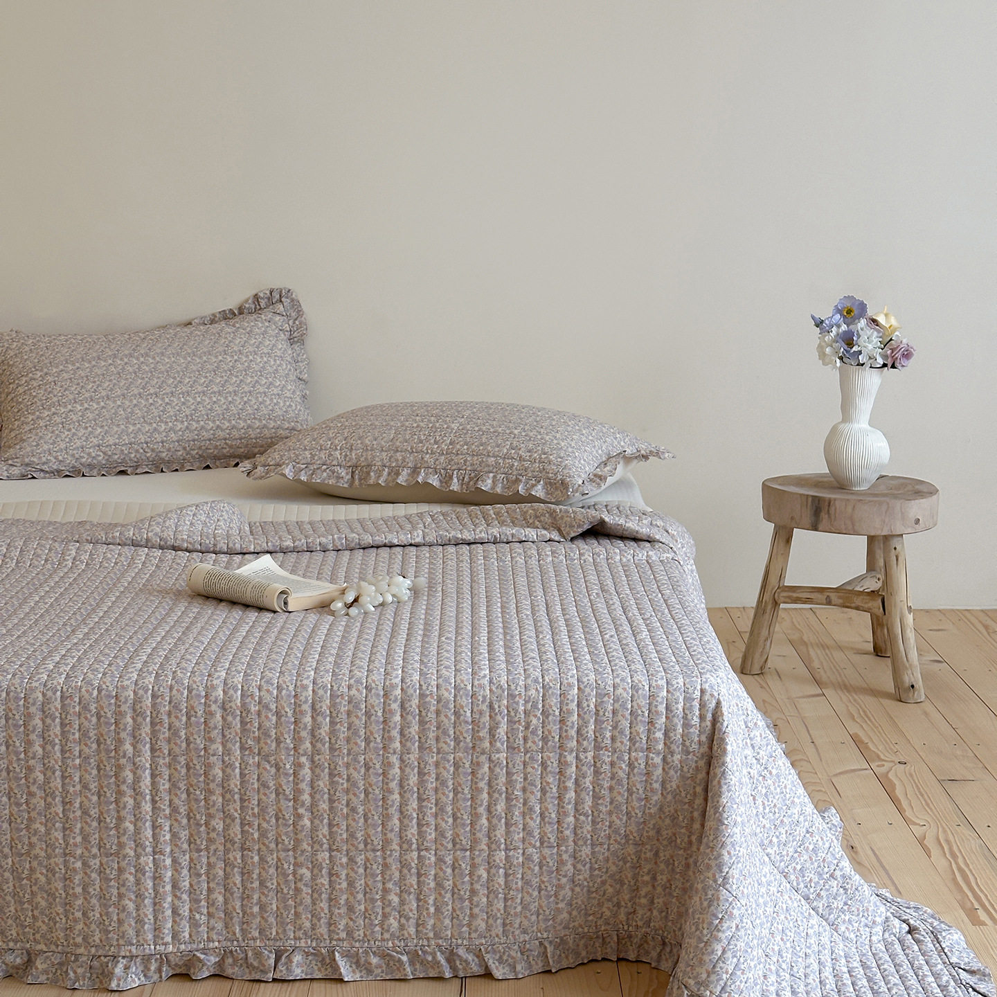 French Retro Style Cotton and Linen Bed Cover Three-Piece Set Floral Ruffle Multi-Functional Quilted Quilt Cover Four-Piece Bedding Set