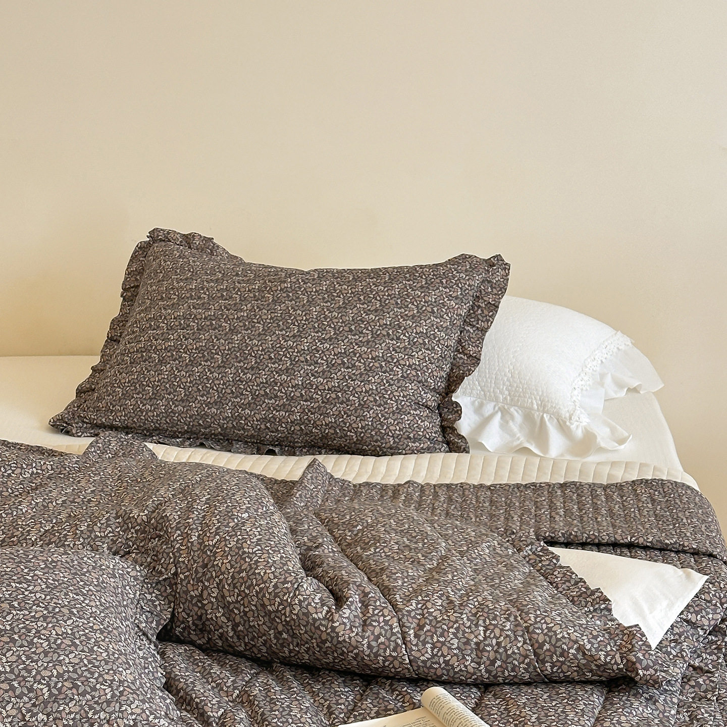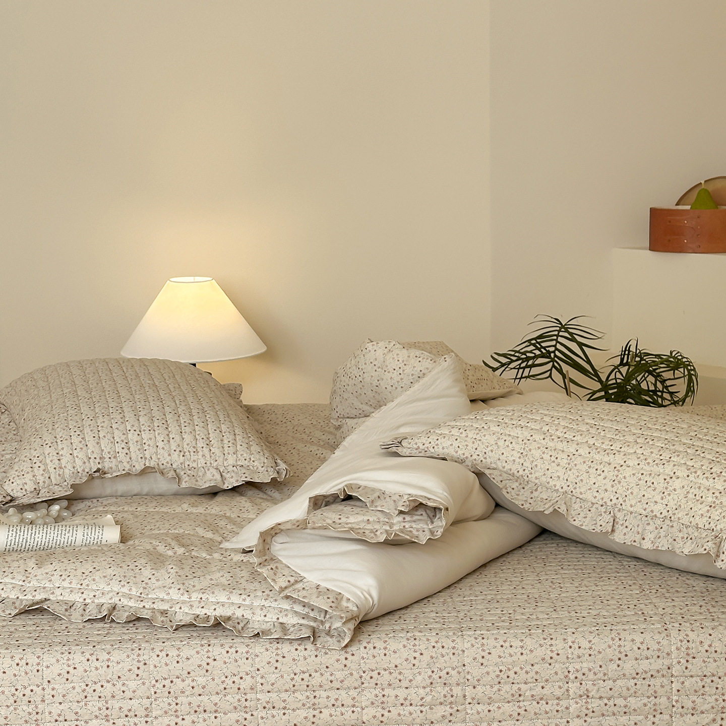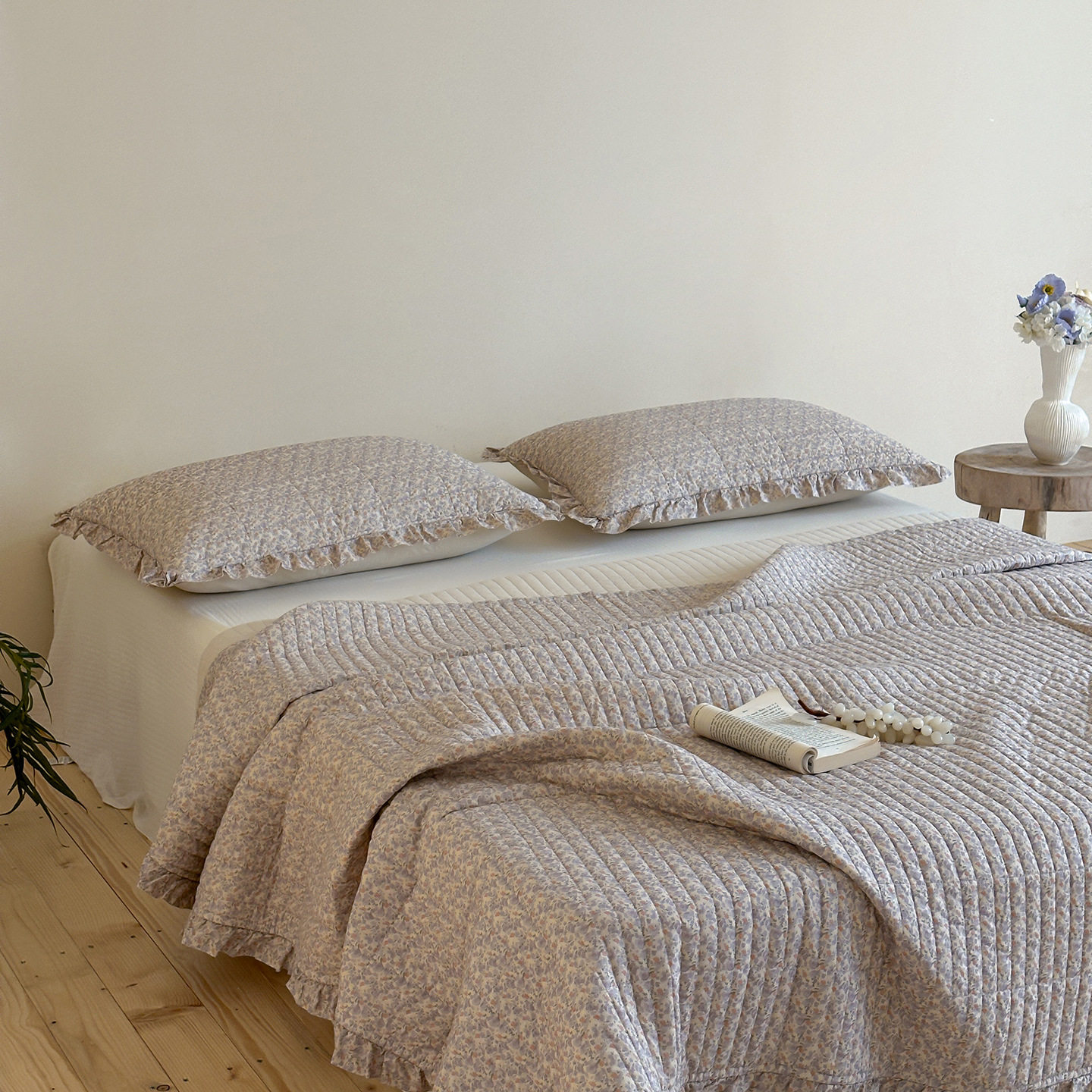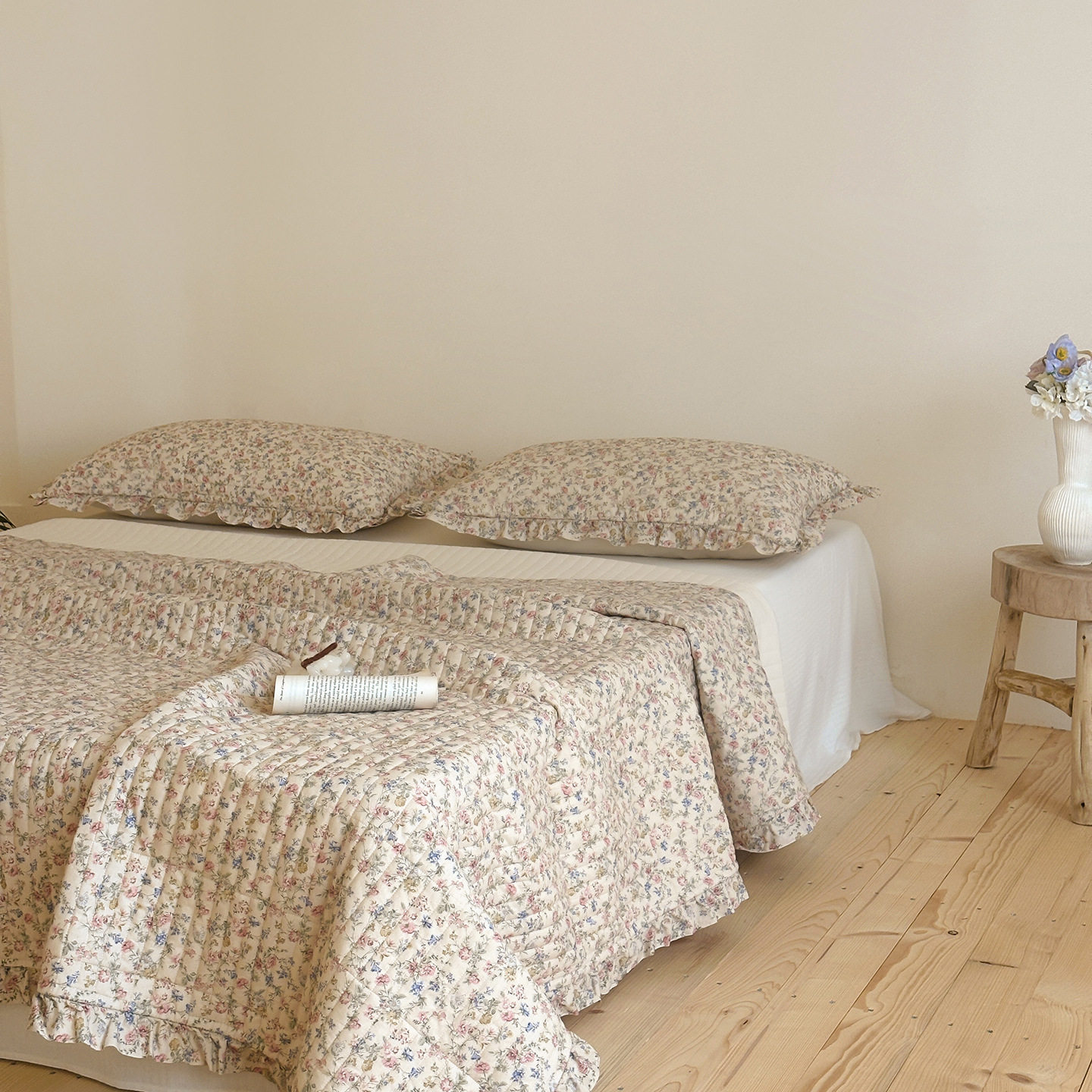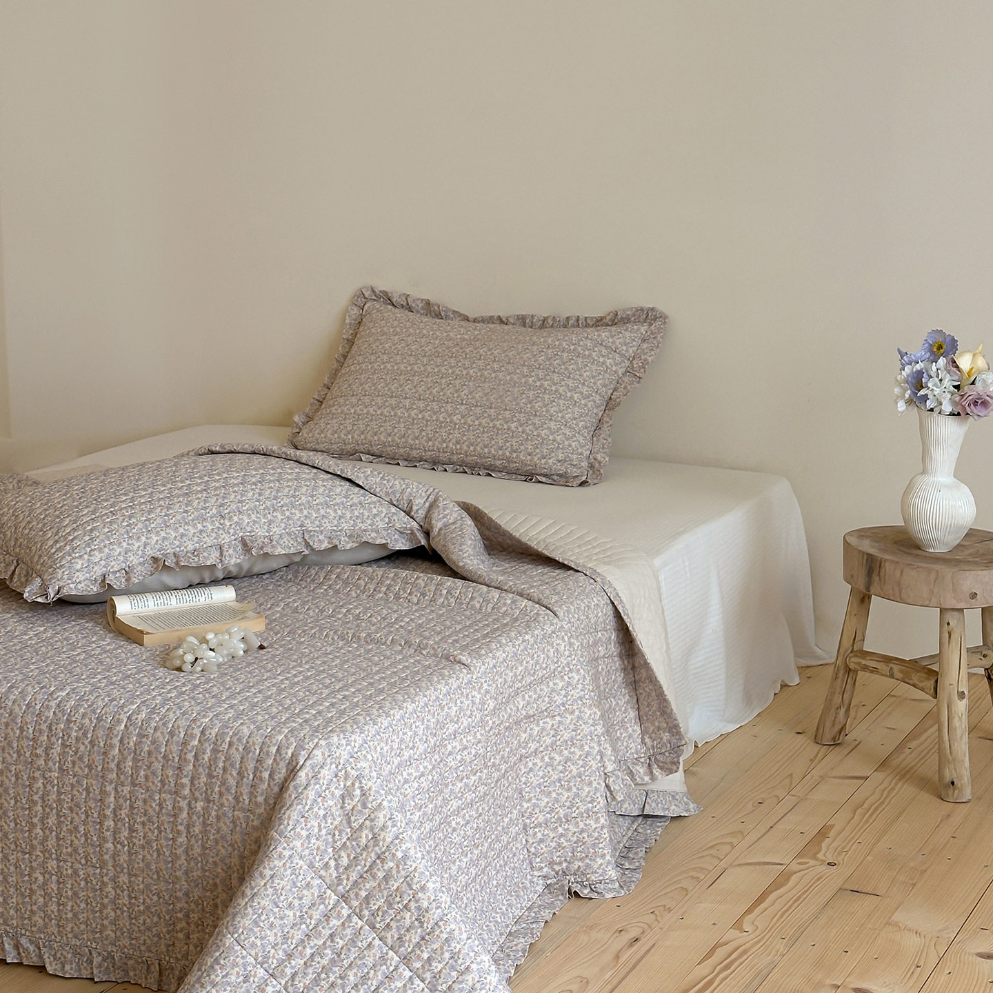 French Retro Style Cotton and Linen Bed Cover Three-Piece Set Floral Ruffle Multi-Functional Quilted Quilt Cover Four-Piece Bedding Set