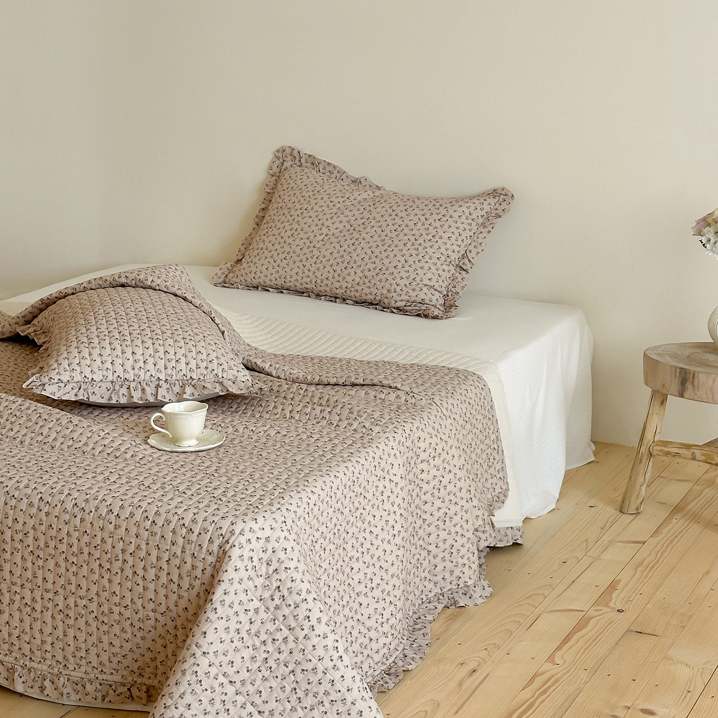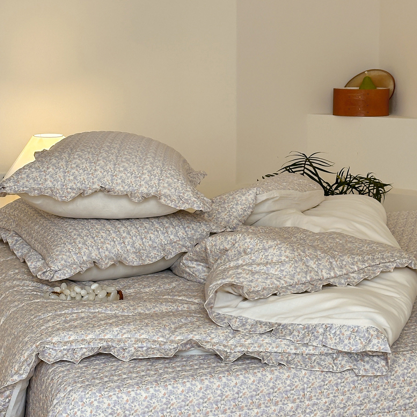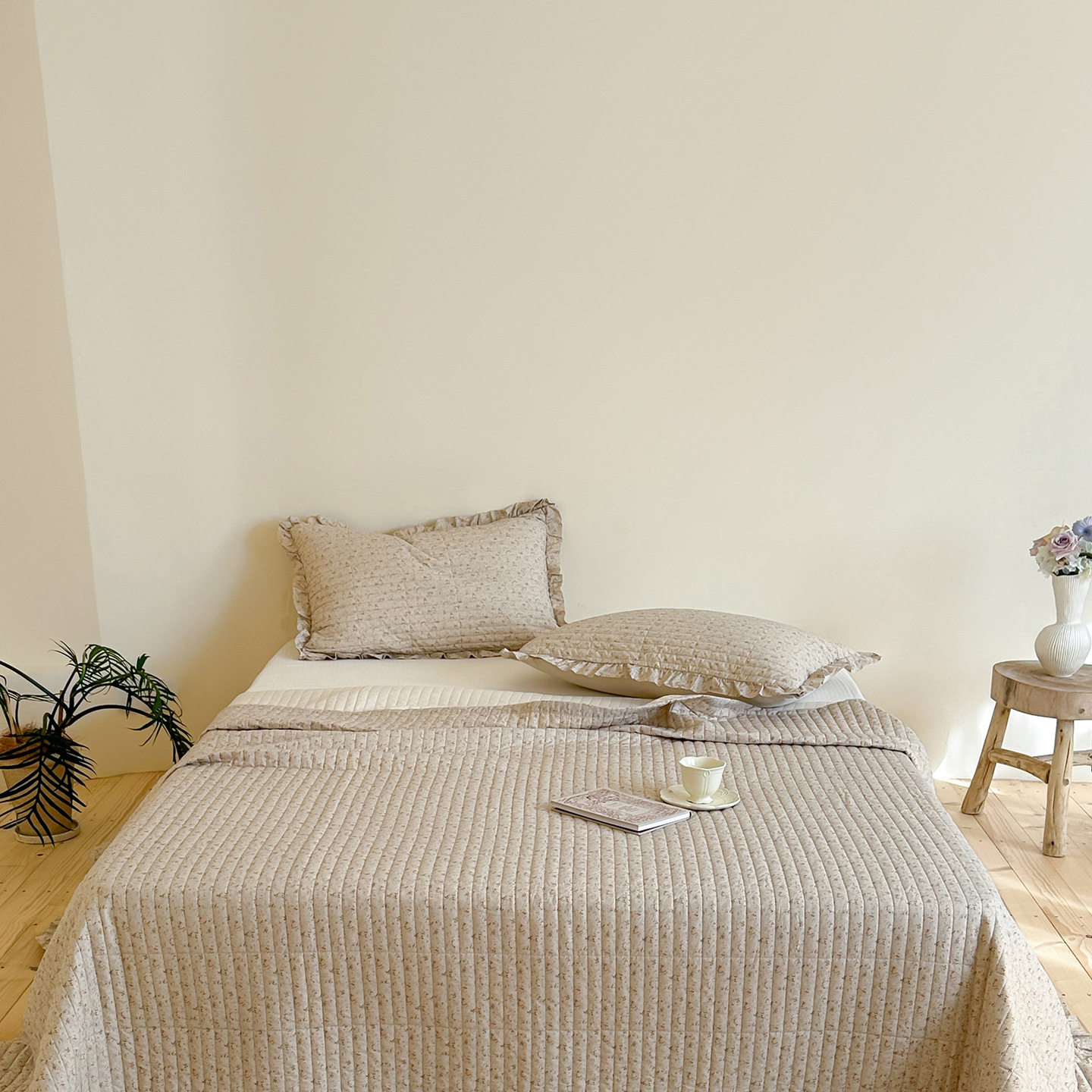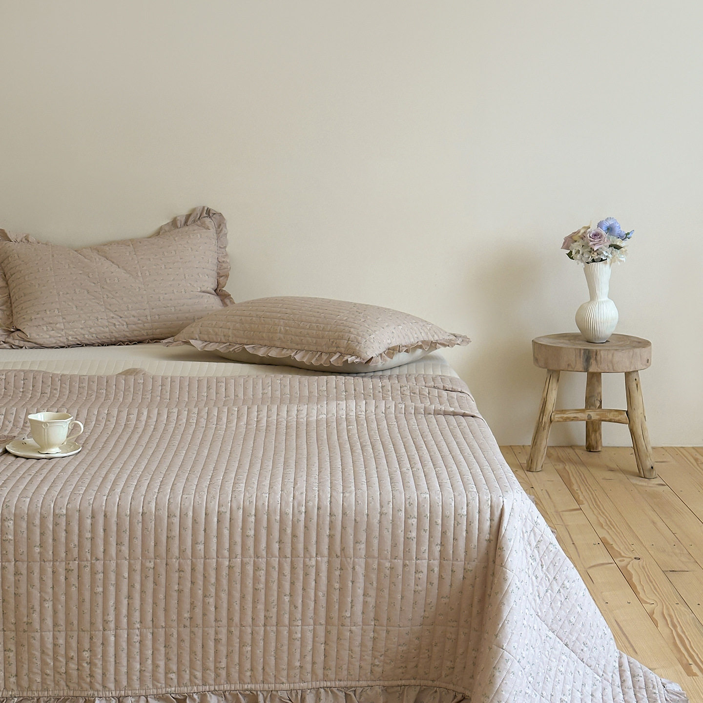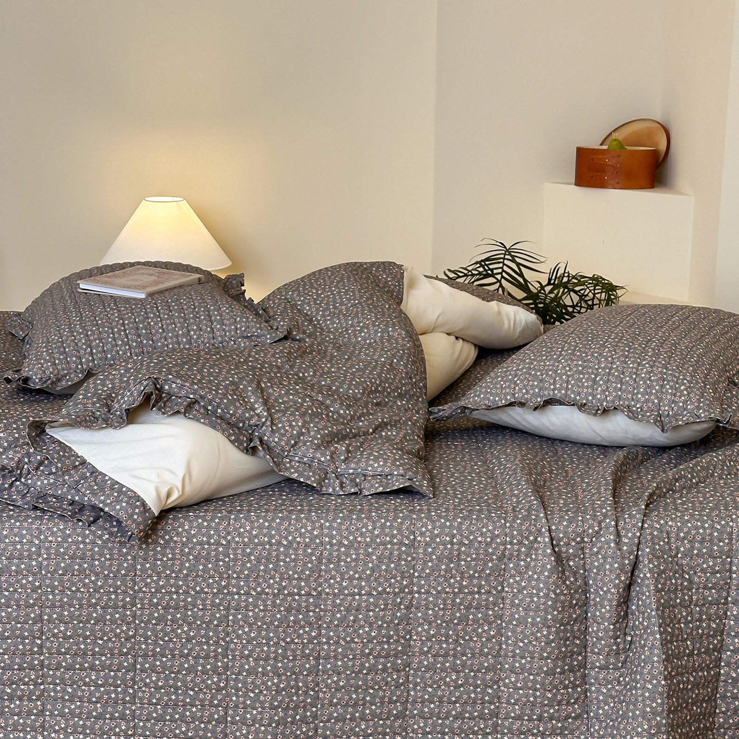 French Retro Style Cotton and Linen Bed Cover Three-Piece Set Floral Ruffle Multi-Functional Quilted Quilt Cover Four-Piece Bedding Set