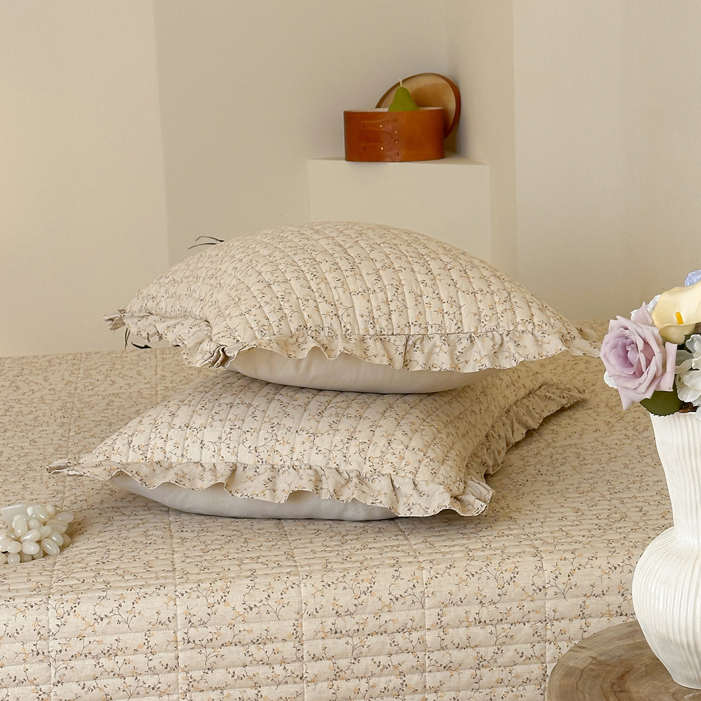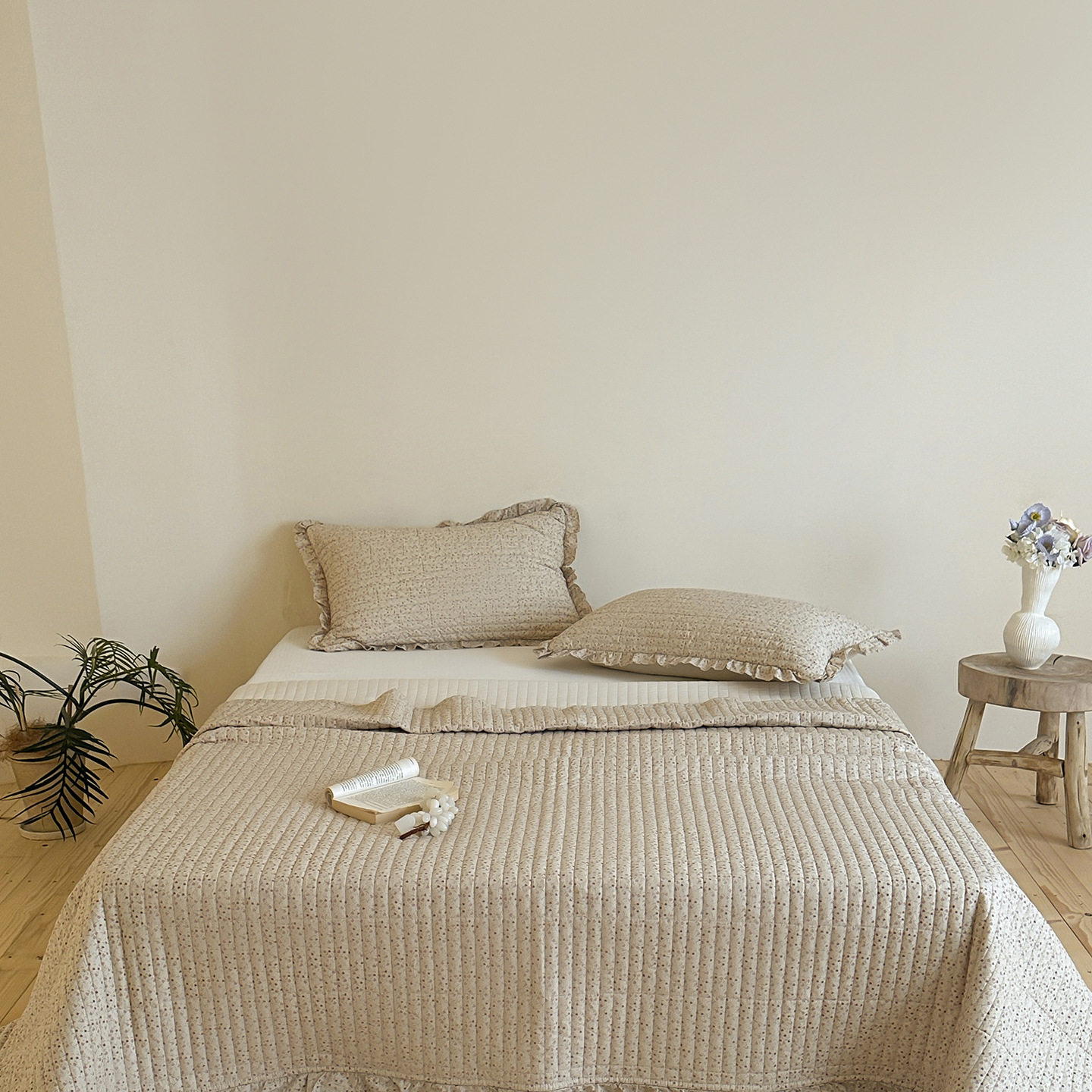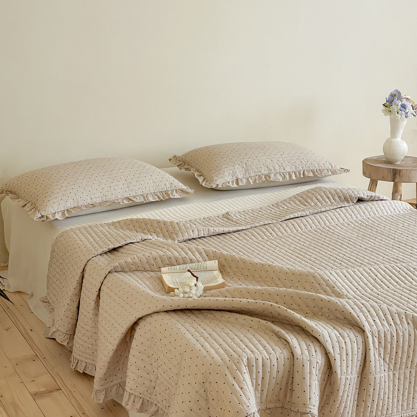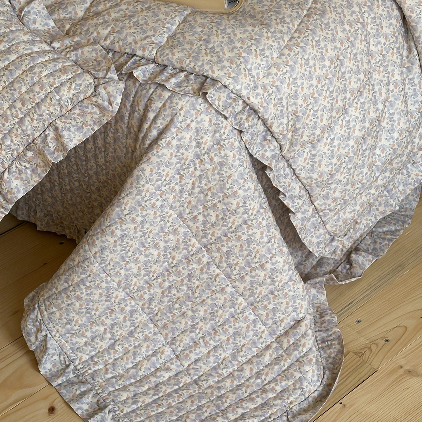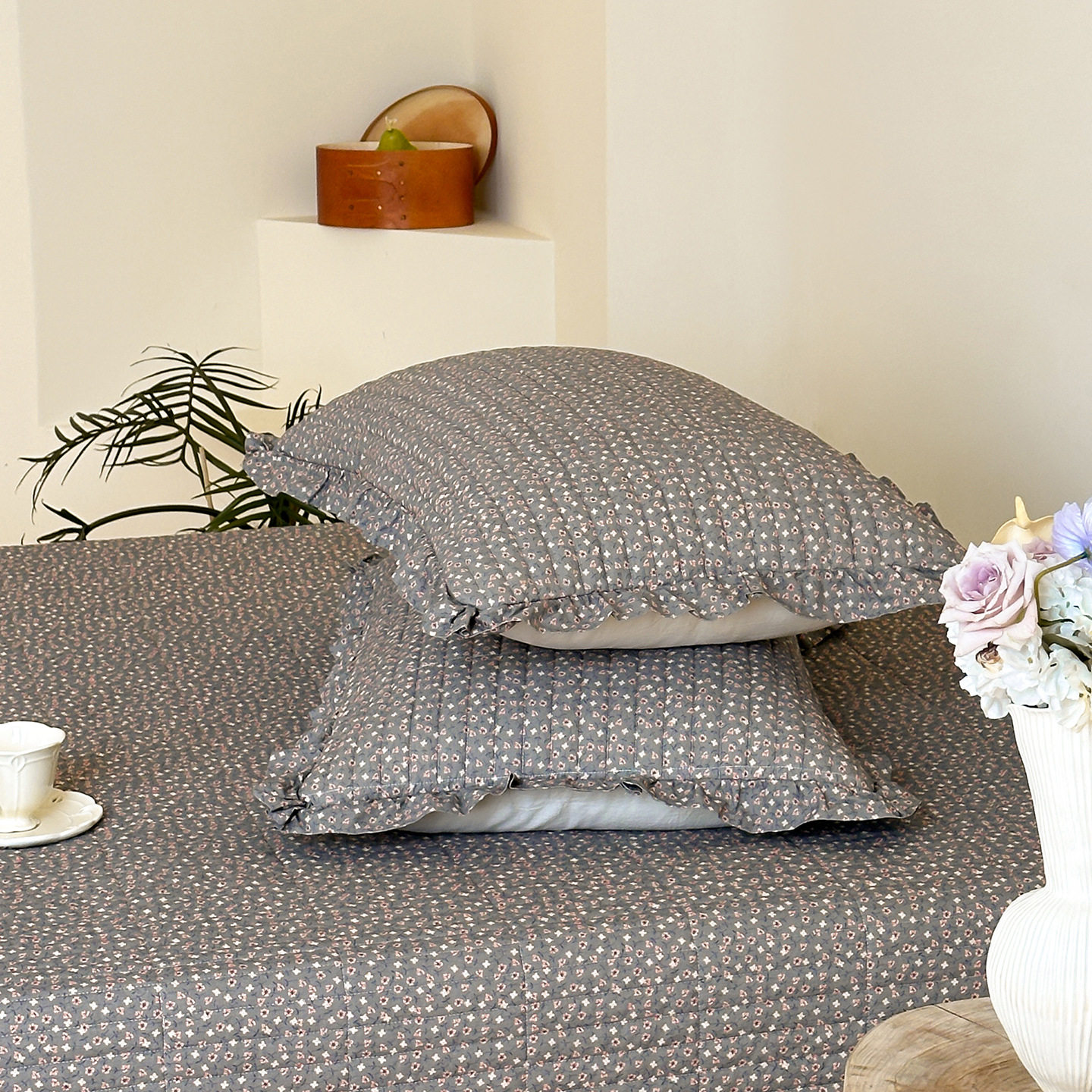 French Retro Style Cotton and Linen Bed Cover Three-Piece Set Floral Ruffle Multi-Functional Quilted Quilt Cover Four-Piece Bedding Set