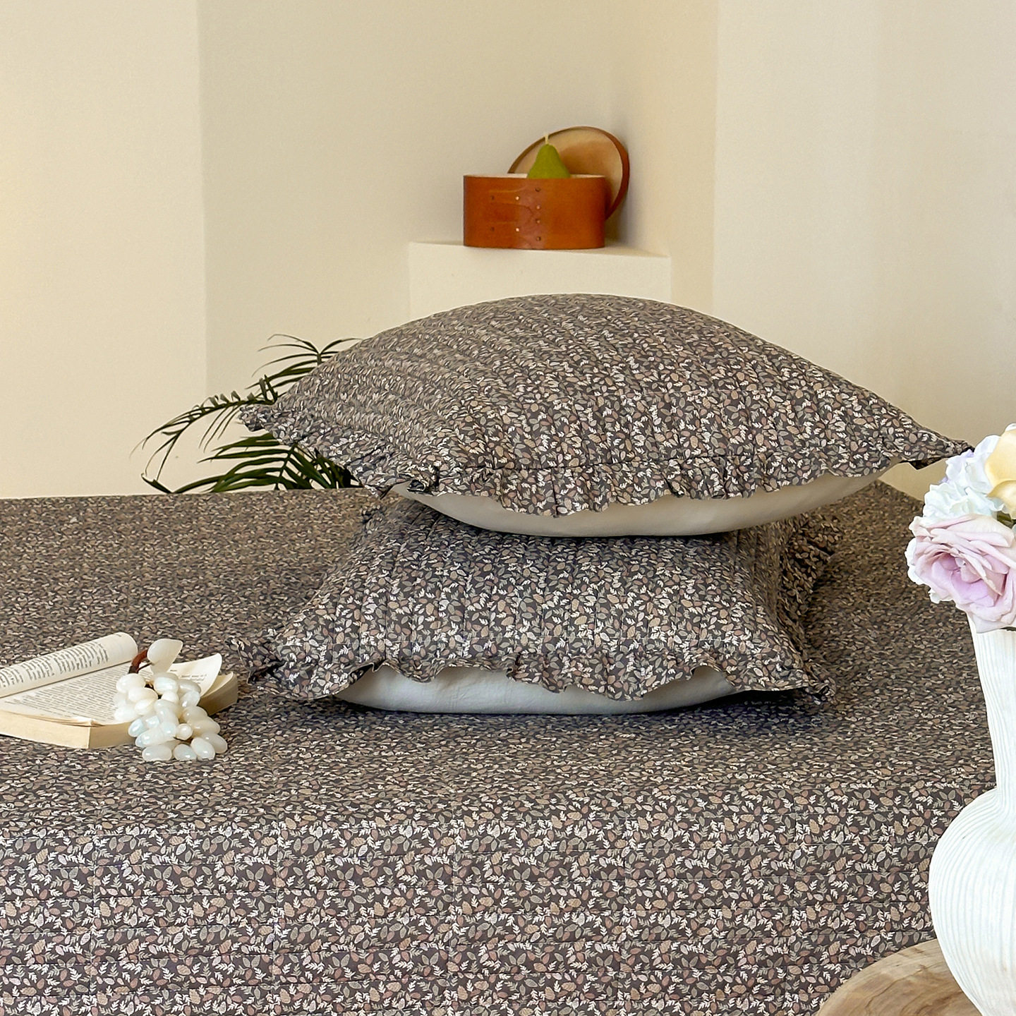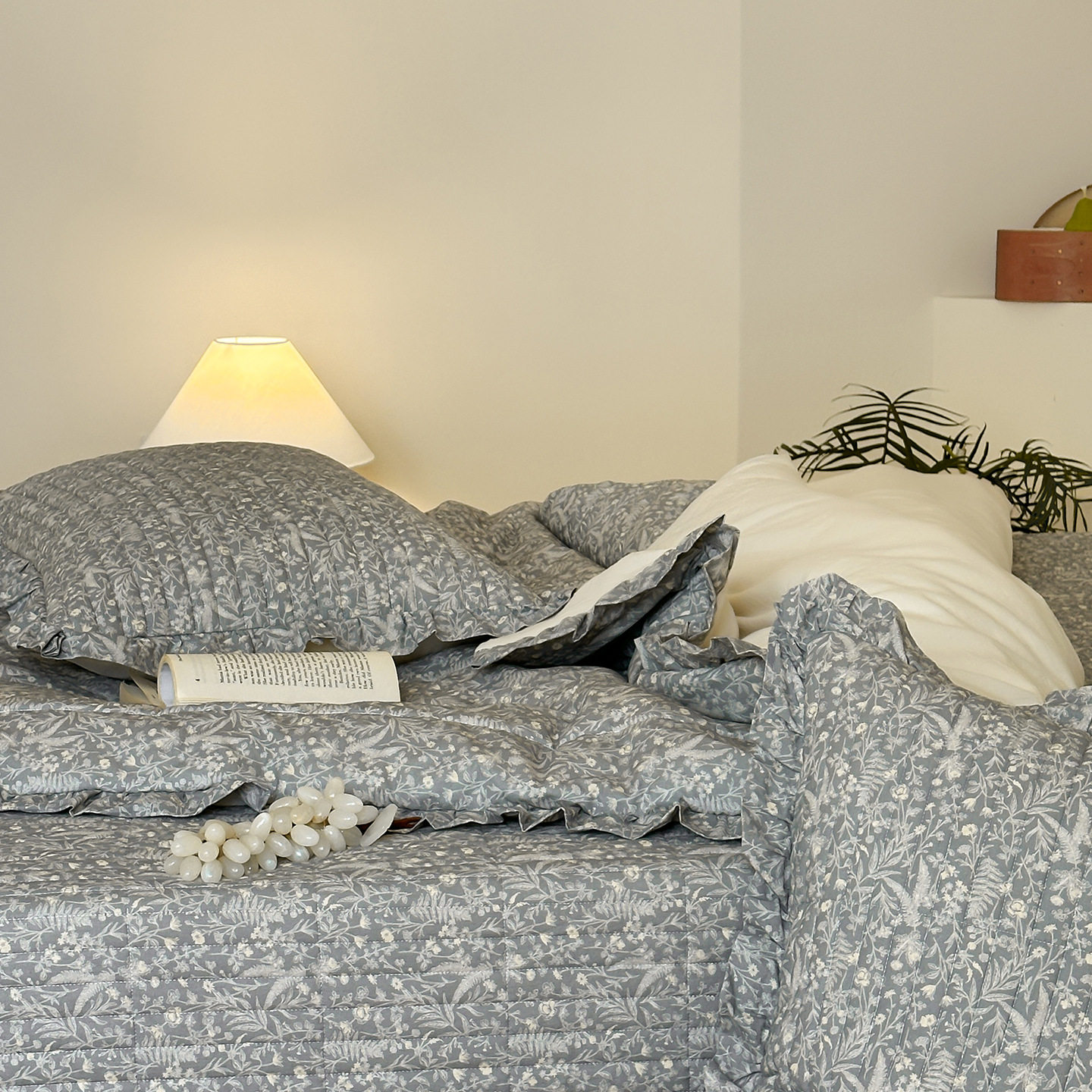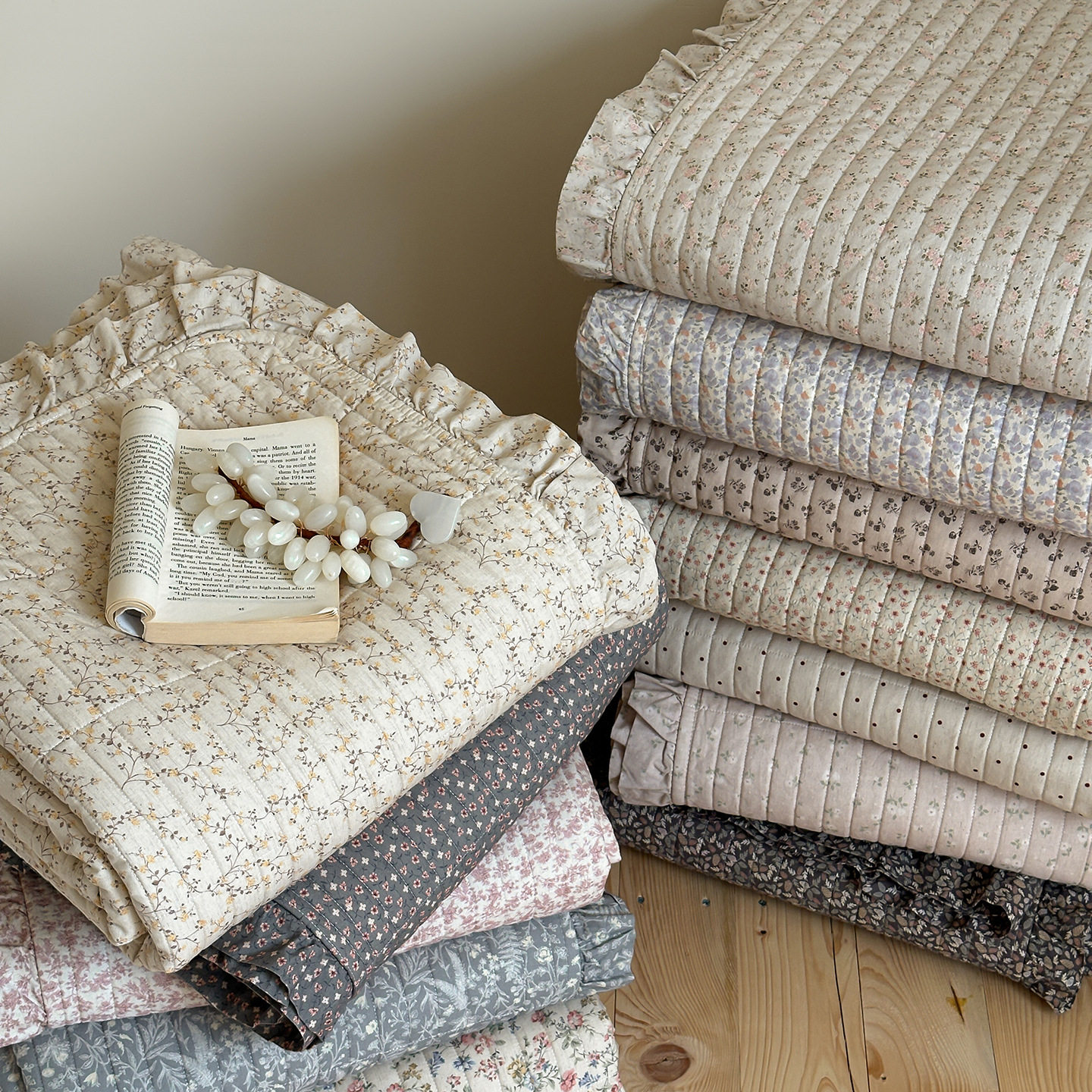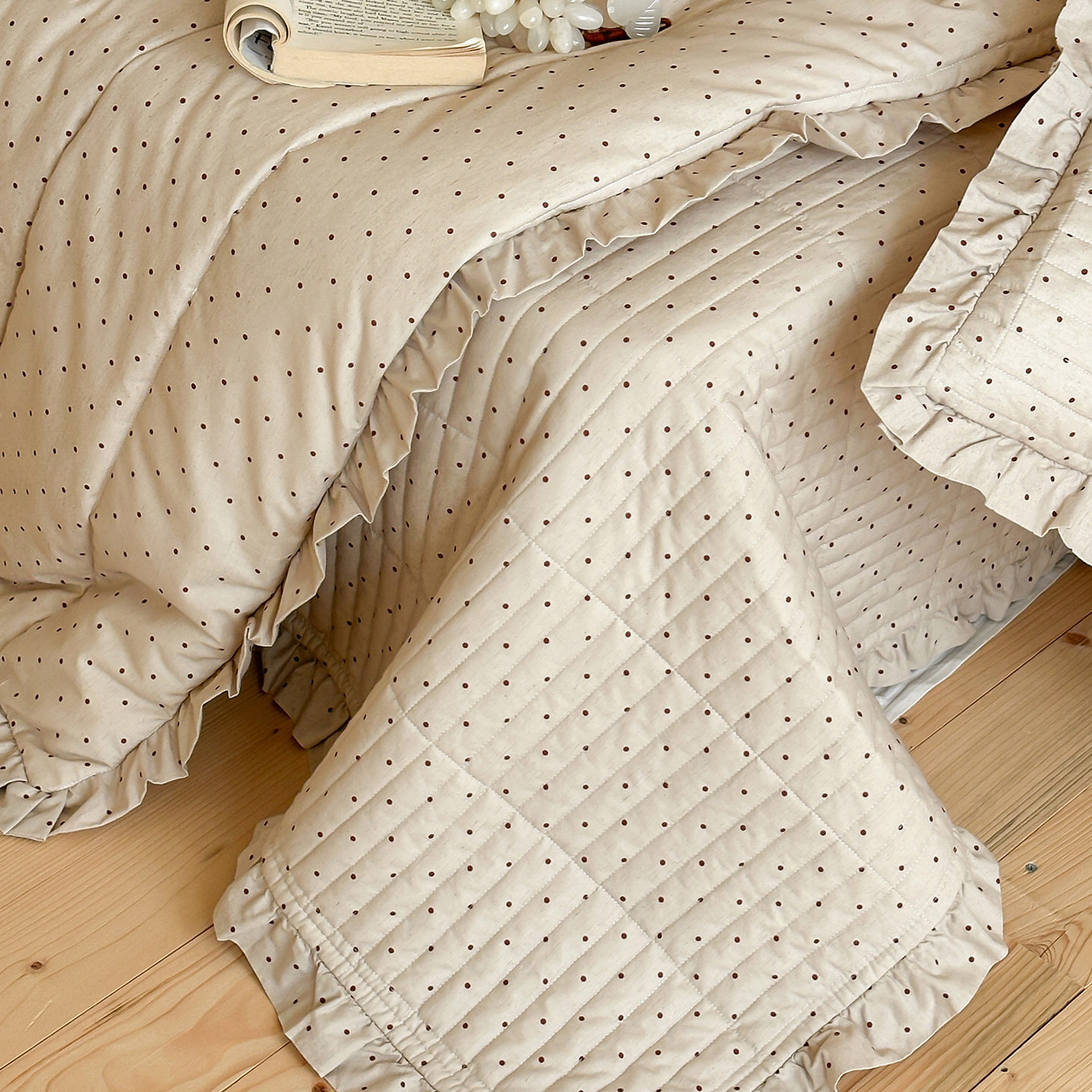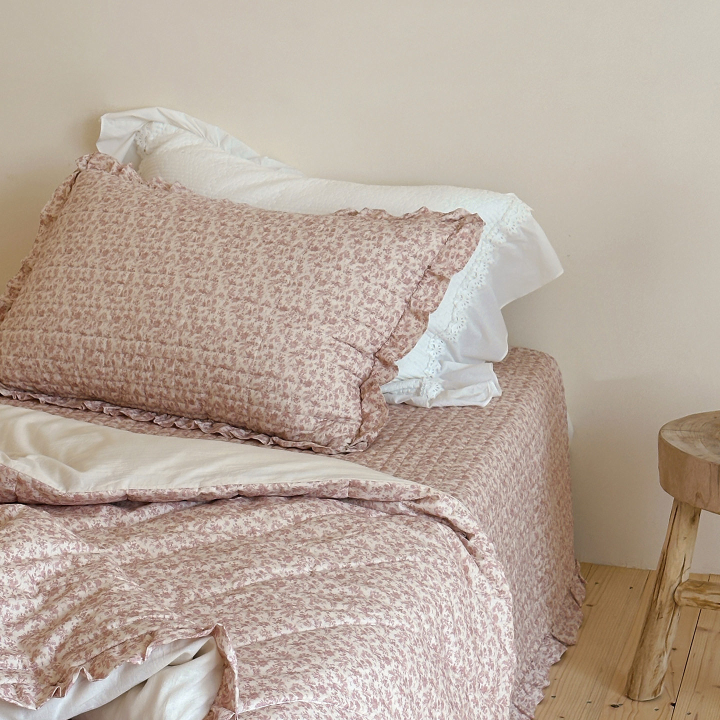 French Retro Style Cotton and Linen Bed Cover Three-Piece Set Floral Ruffle Multi-Functional Quilted Quilt Cover Four-Piece Bedding Set