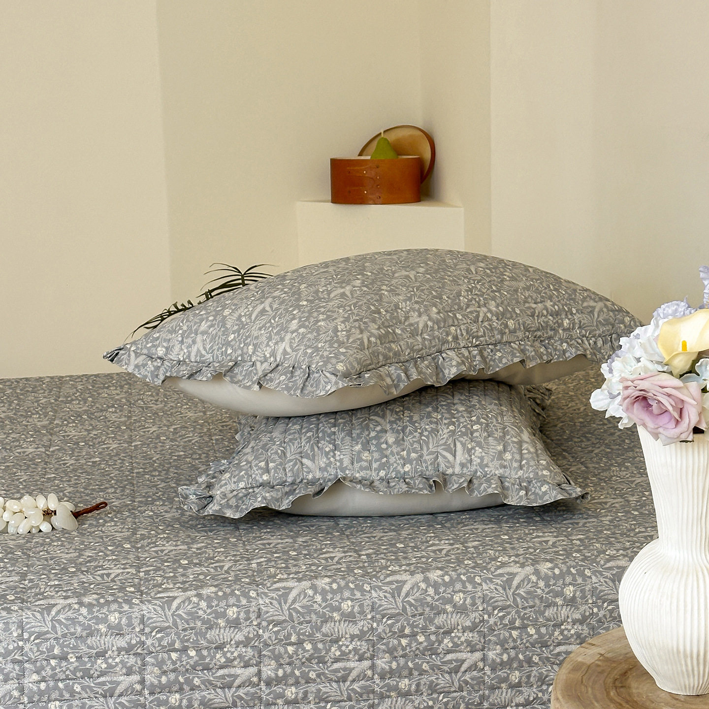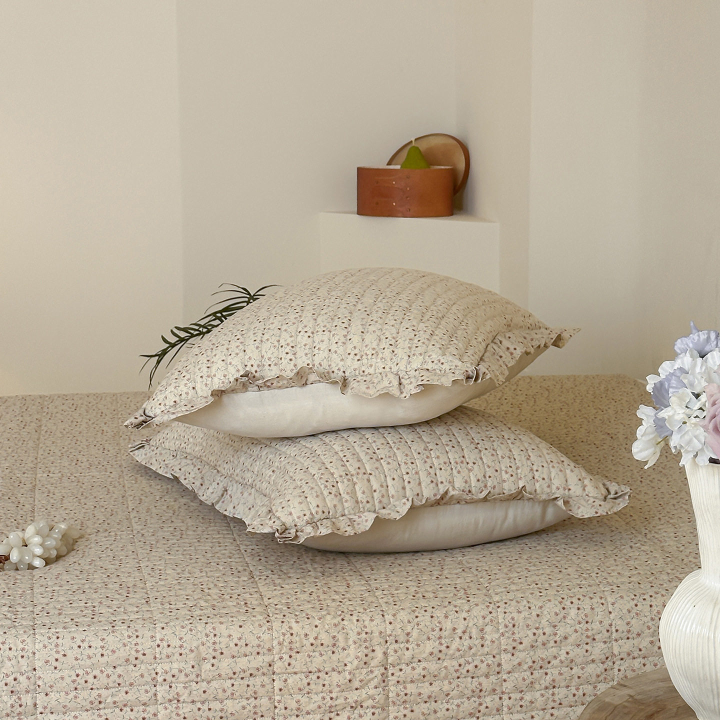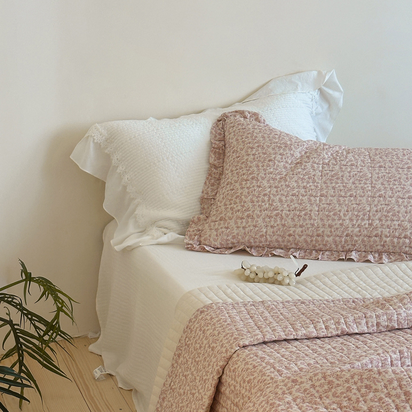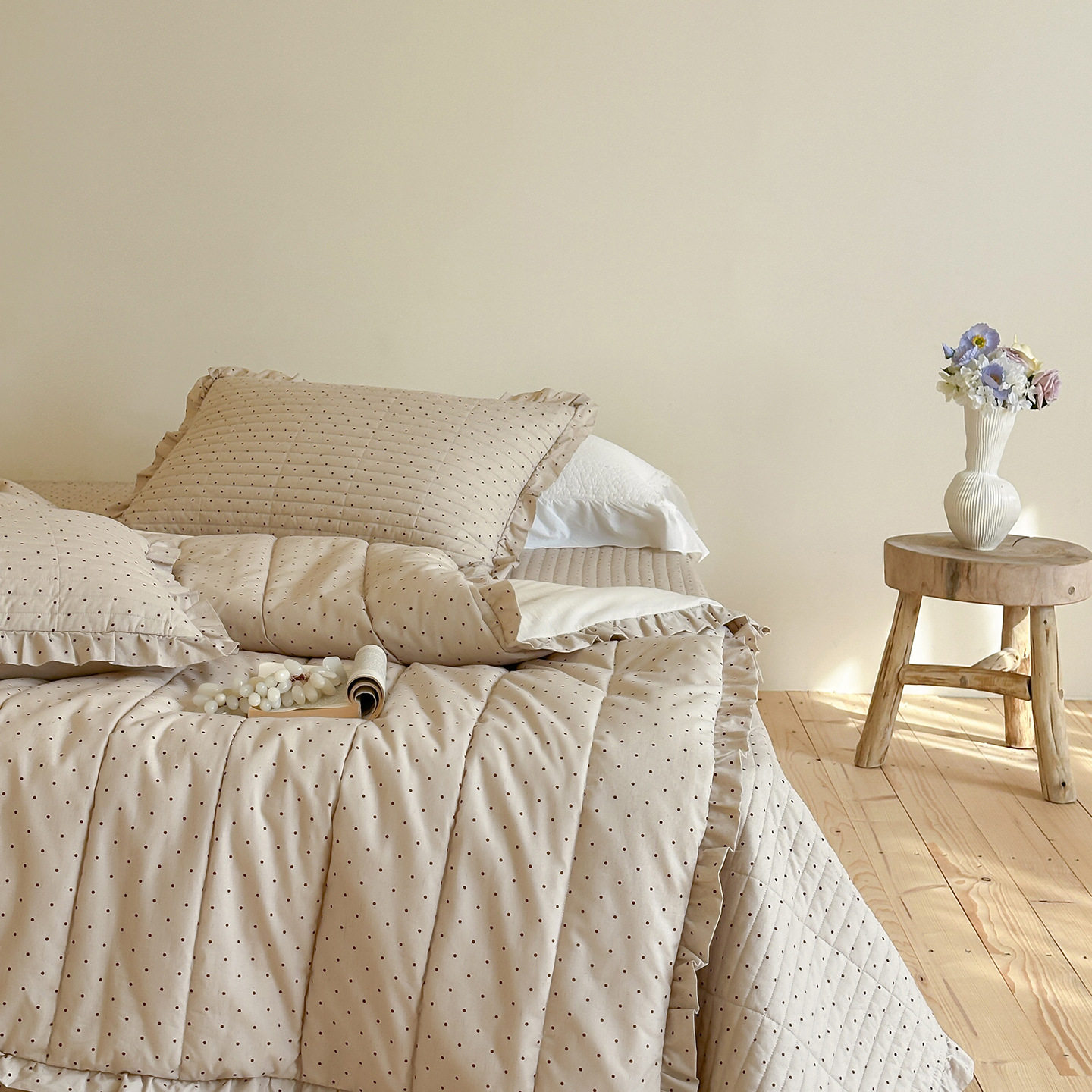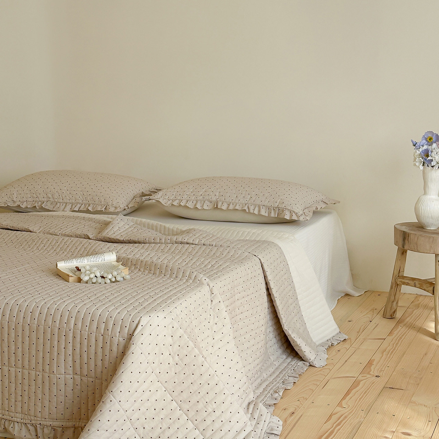 French Retro Style Cotton and Linen Bed Cover Three-Piece Set Floral Ruffle Multi-Functional Quilted Quilt Cover Four-Piece Bedding Set