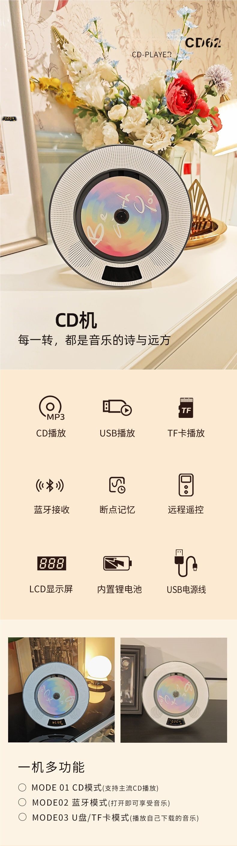 Cd Player Album Player Bluetooth Portable Wall-Mounted Disc Record Player Cd Player Walkman Cd Supplier Factory