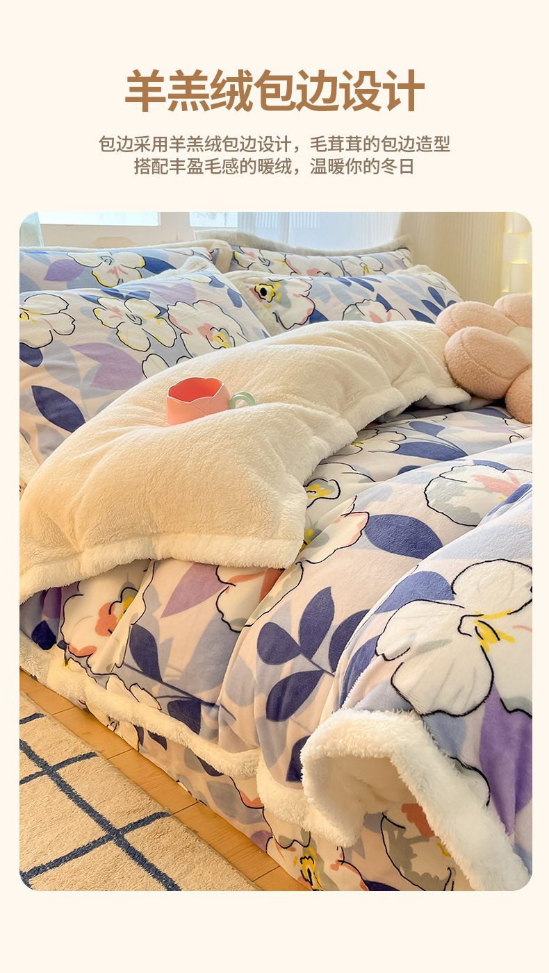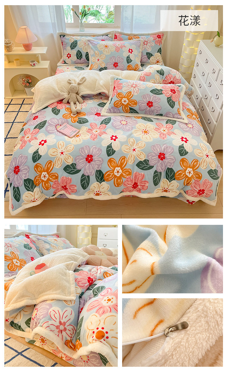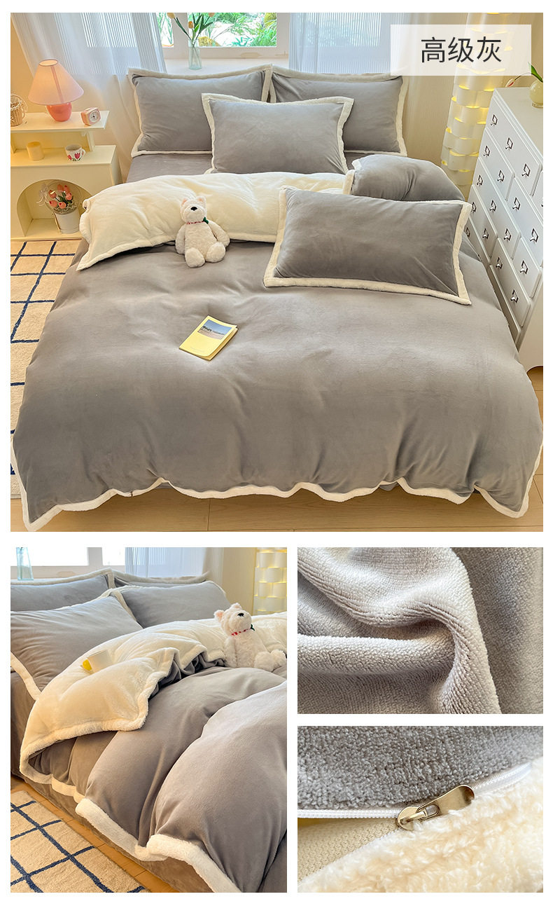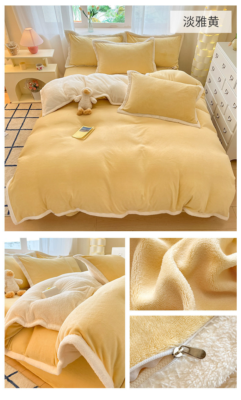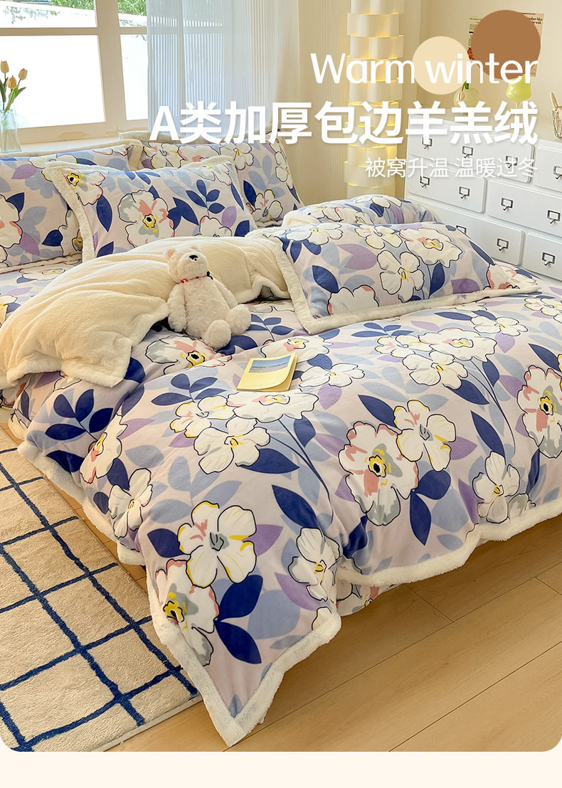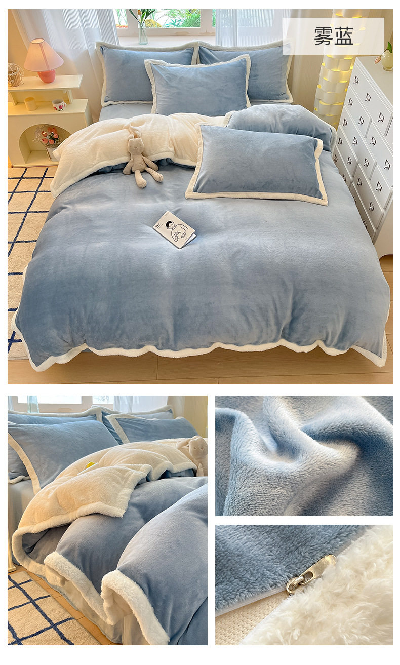 Milk Velvet Cashmere Four-Piece Winter Thickeneded Double-Sided Velvet Quilt Cover Coral Velvet Three-Piece Bed Bed Sheets Winter Fleece-Lined