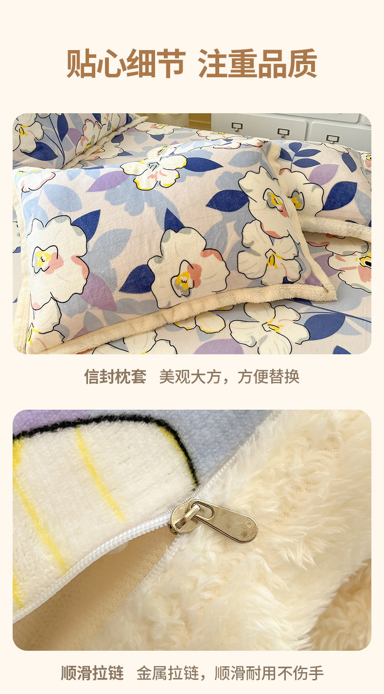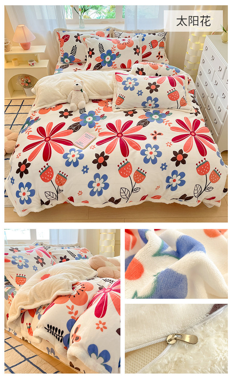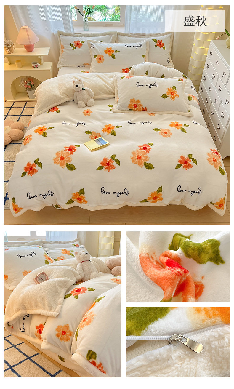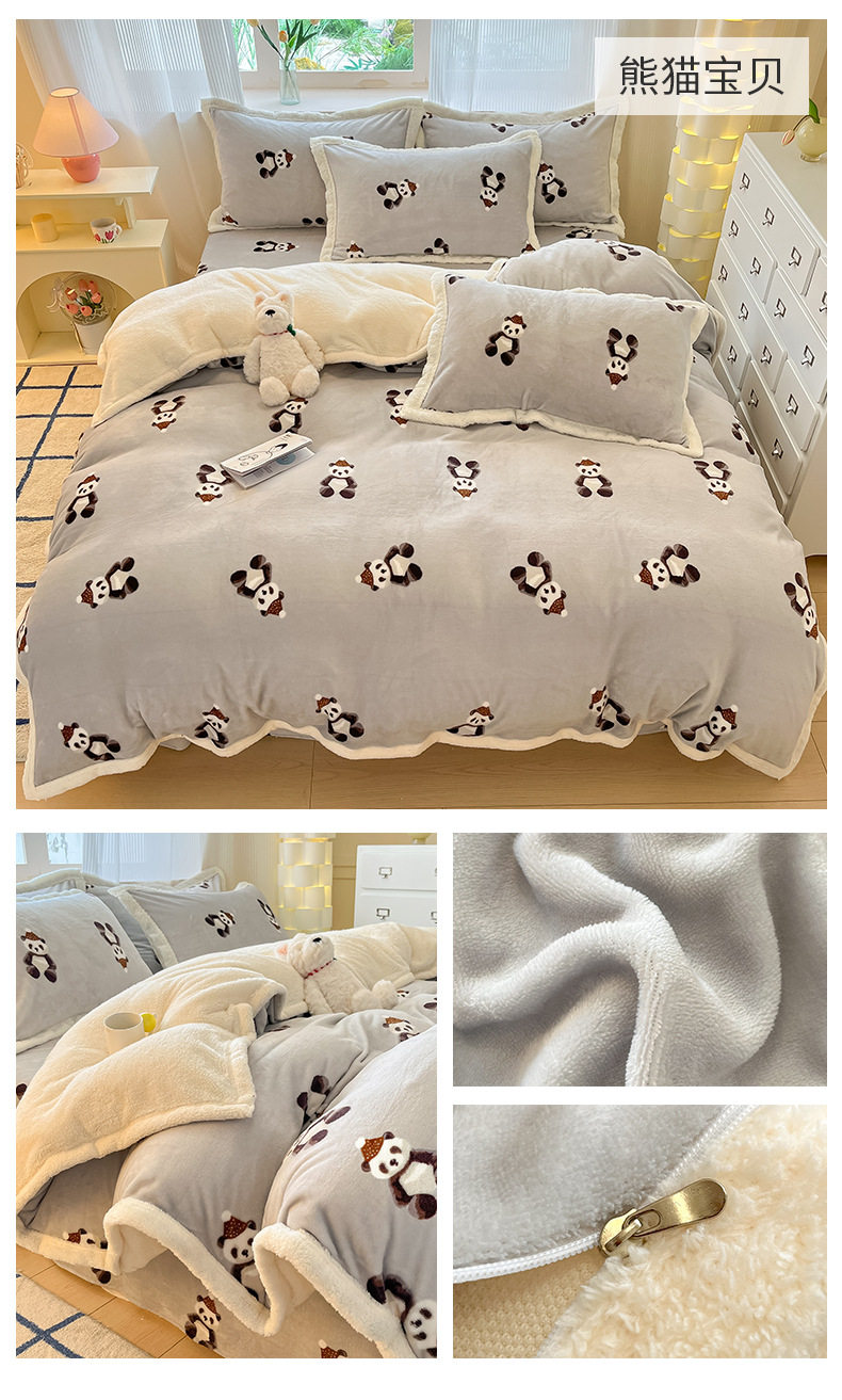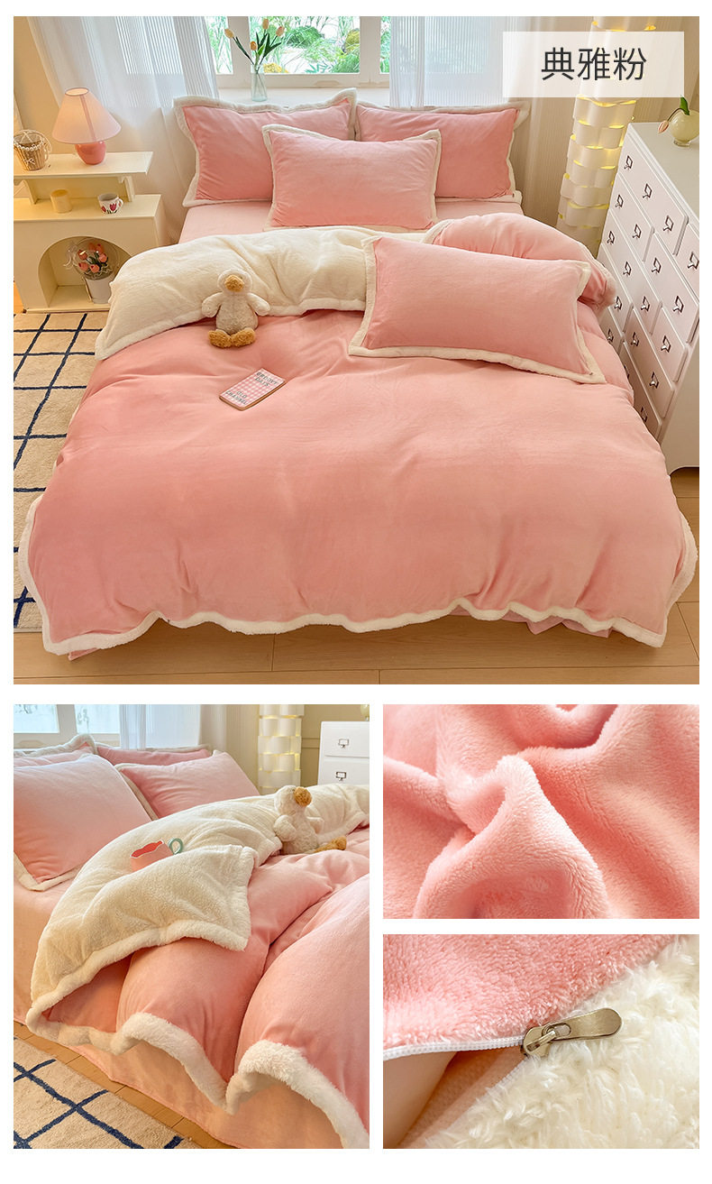 Milk Velvet Cashmere Four-Piece Winter Thickeneded Double-Sided Velvet Quilt Cover Coral Velvet Three-Piece Bed Bed Sheets Winter Fleece-Lined