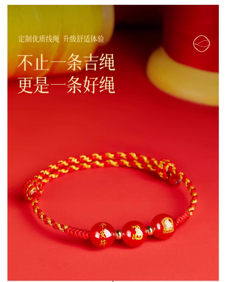 2026 Year of the Horse, Zodiac Year, Agate Red String Bracelet for Women, Snake Zodiac, Tai Sui Amulet, Woven Red String Bracelet