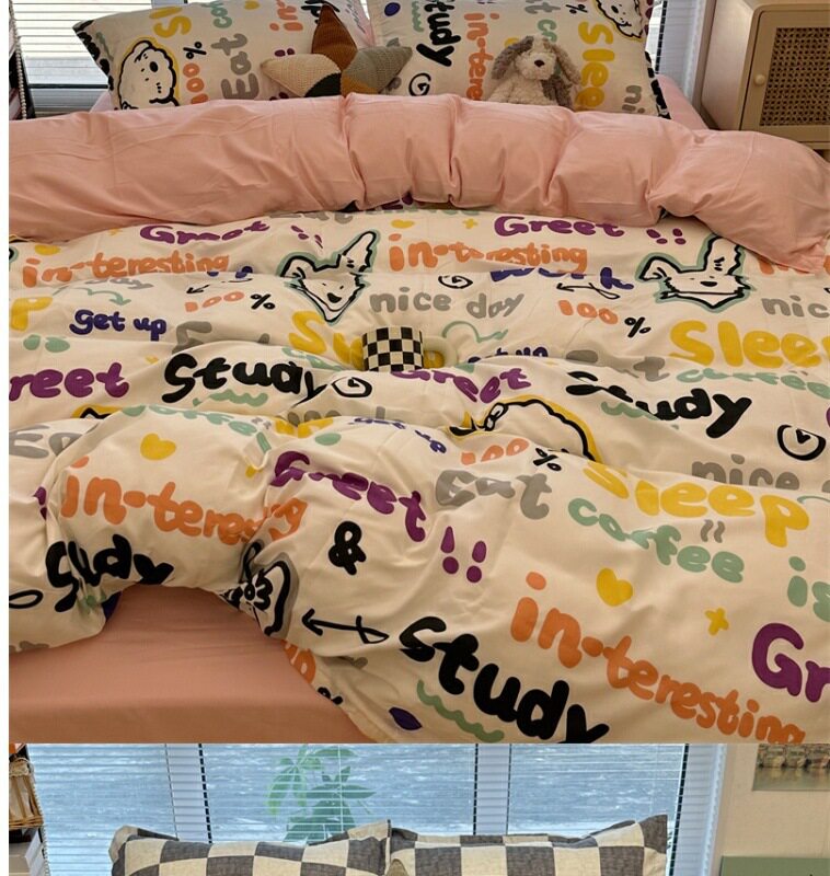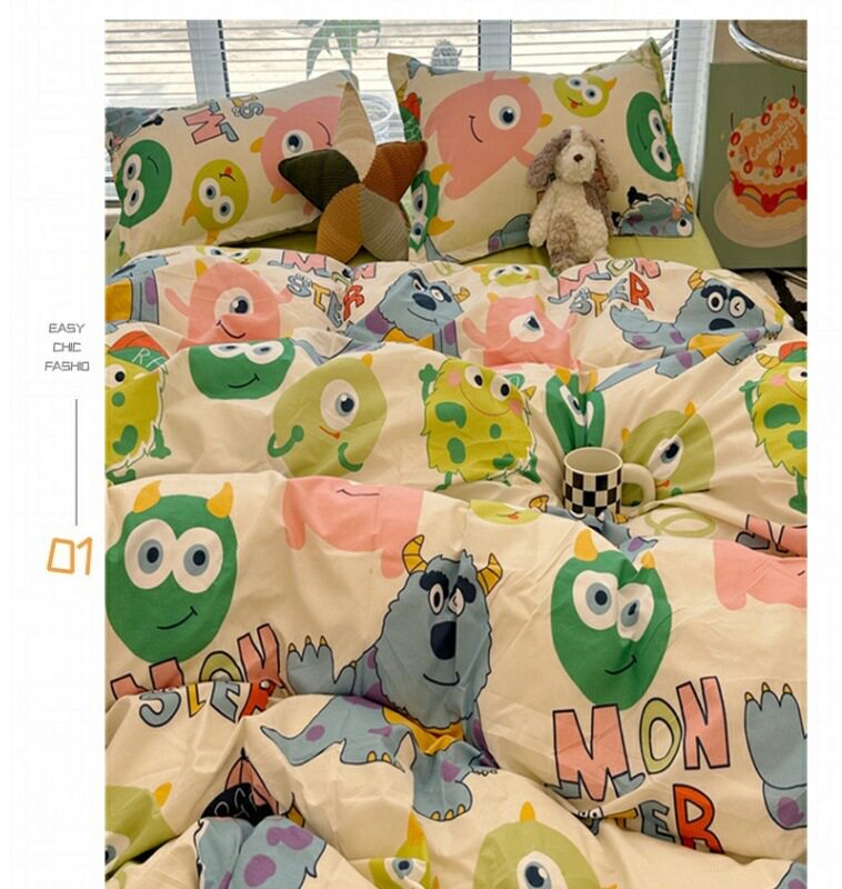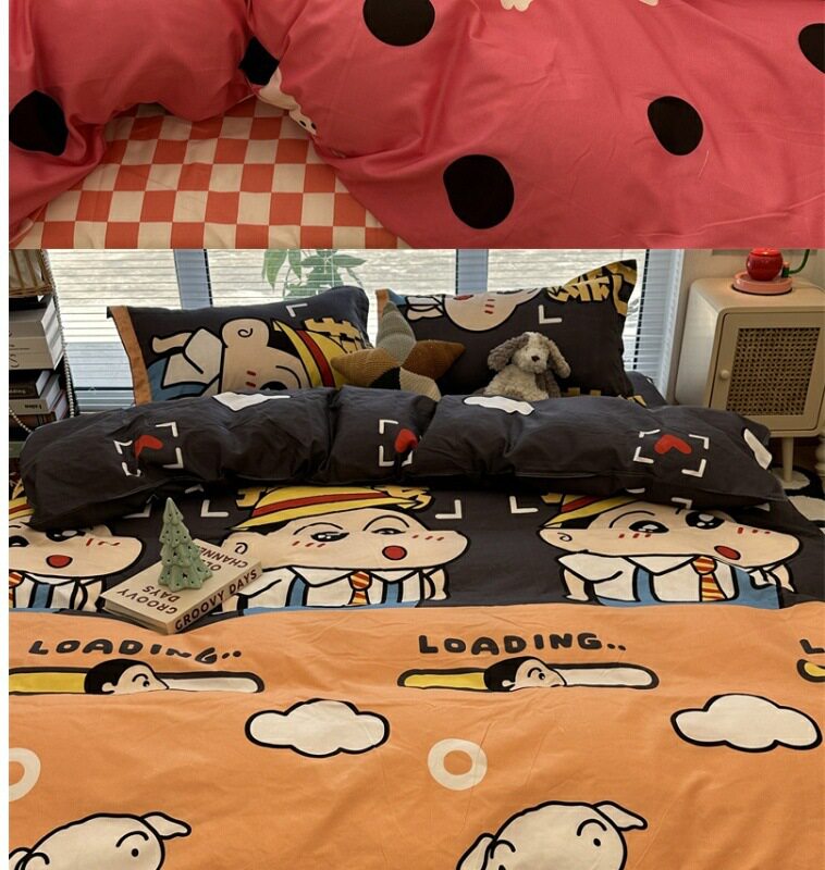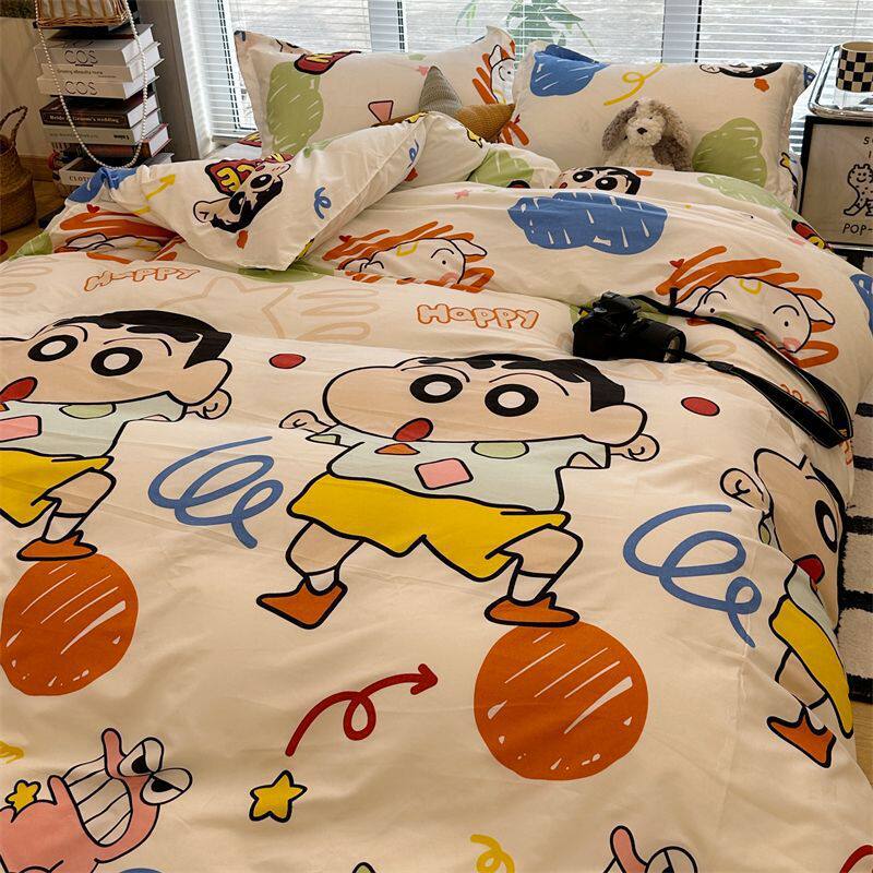 Crayon Shin-Chan Cute Bed Four-Piece Bed Bed Sheets Washed Cotton Quilt Cover. Student Single Dormitory Three-Piece Set Free Shipping