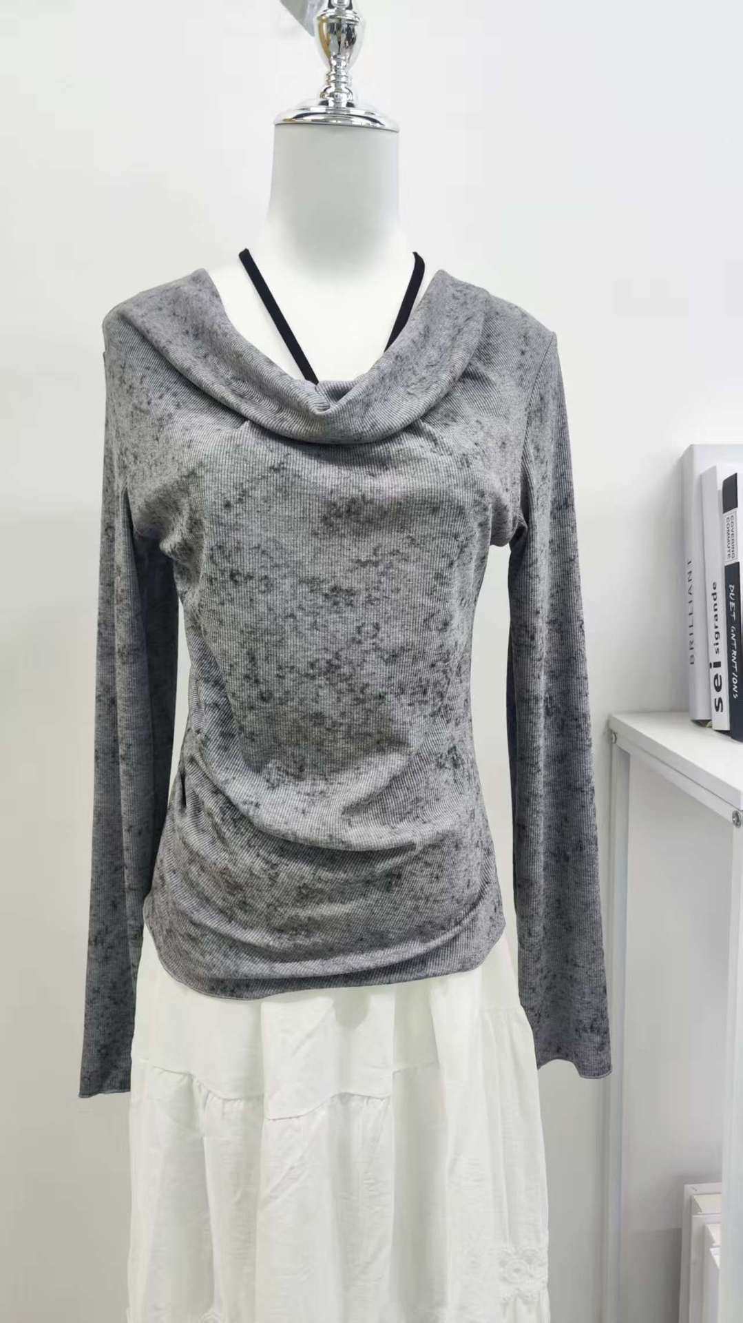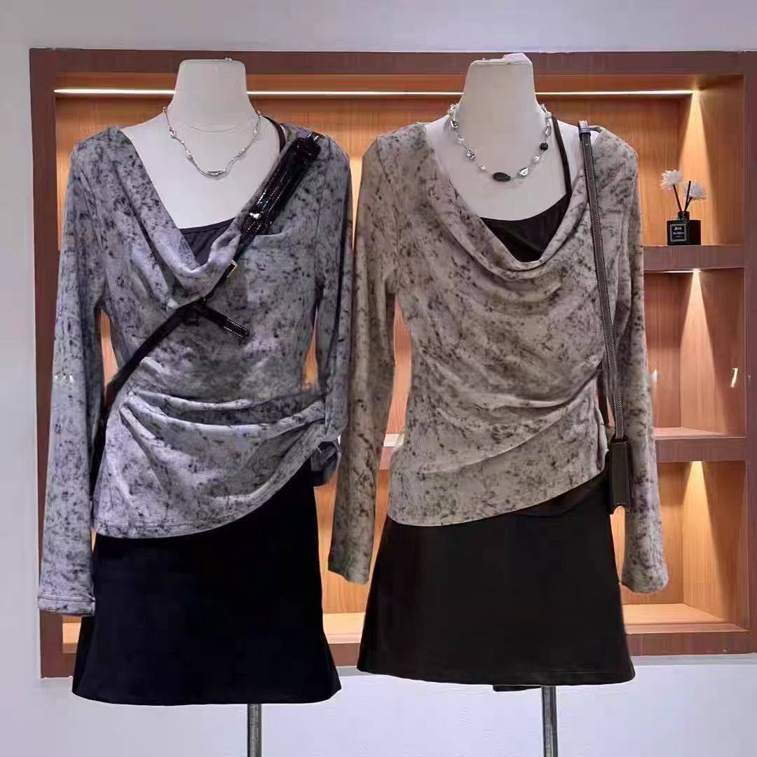 Autumn New Style Waist-Cinching Fake Two-Piece Long-Sleeved Tops Slimming and Versatile Splicing Skirt Two-Piece Set for Women