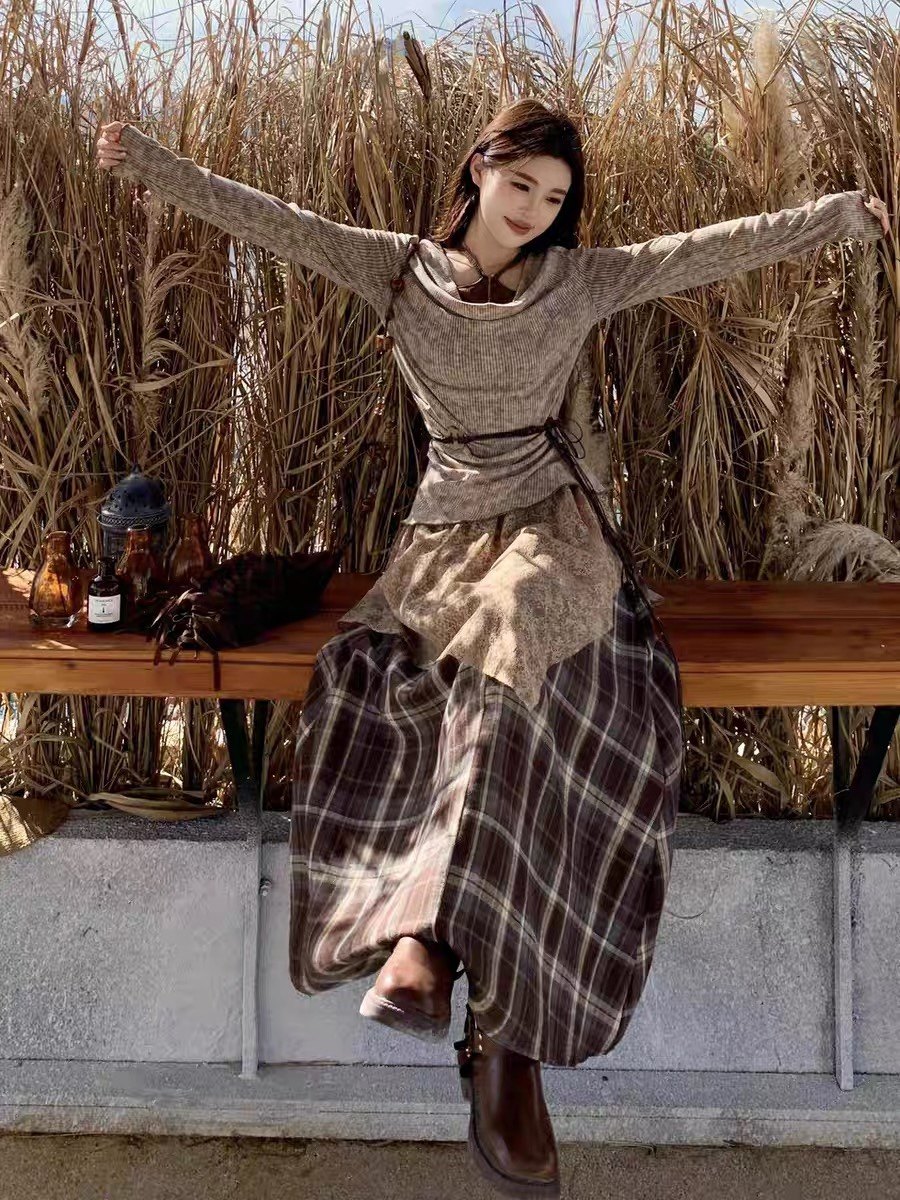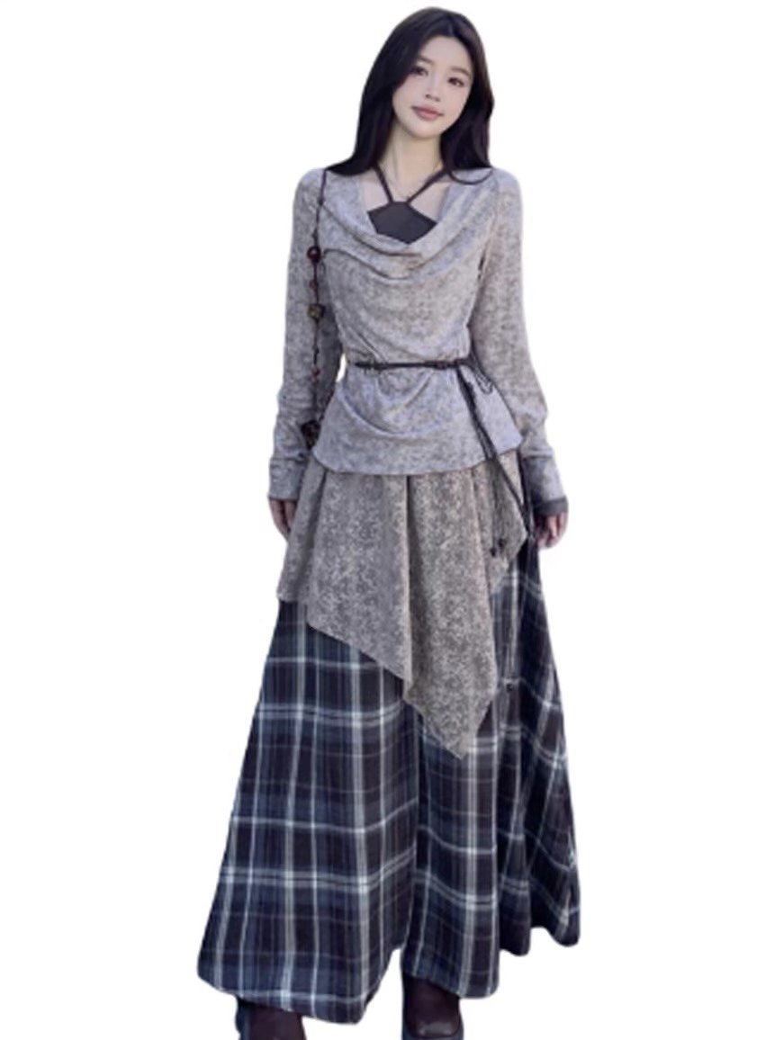 | Color | Card color clothes + plaid skirt suit [with belt],Gray clothes + plaid skirt suit [with belt],7157 # Khaki top [single piece],7157#Gray top [single piece] |