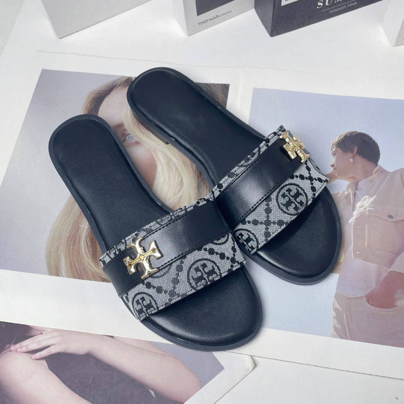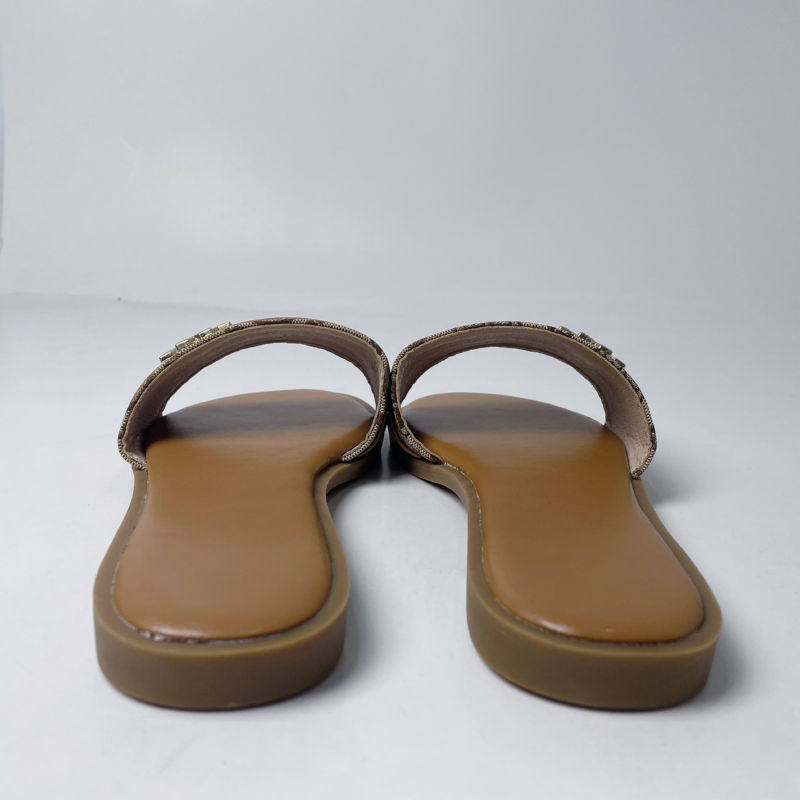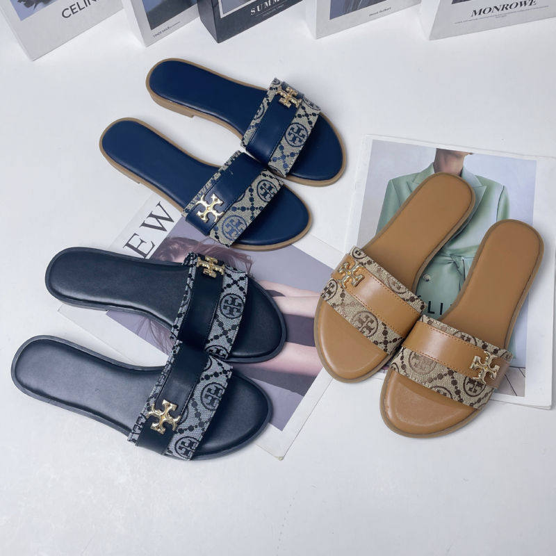 2025 Cross-Border European and American Style Metal Buckle T-Buckle Flats Slippers for Women Summer New Outer Wear Comfortable Classy Slippers