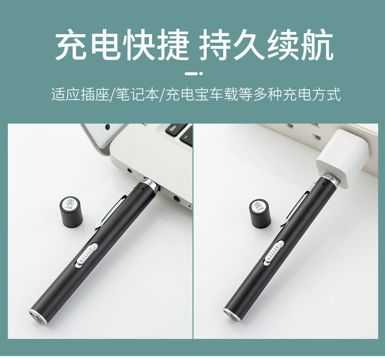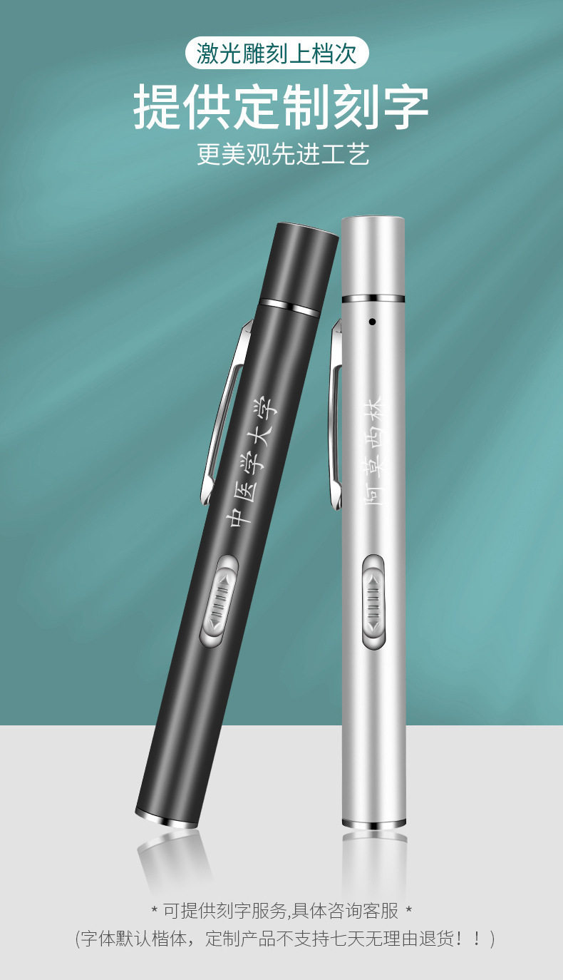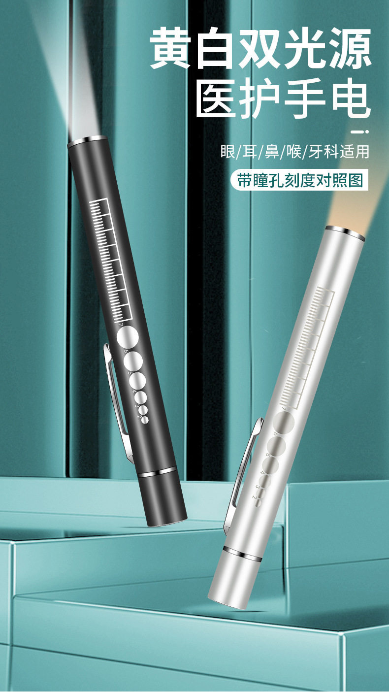 Rechargeable Dual Light Source Pupil Pen Yellow Light White Light Medical Oral Examination Lamp Stainless Steel Morning Examination Pen Light Flashlight