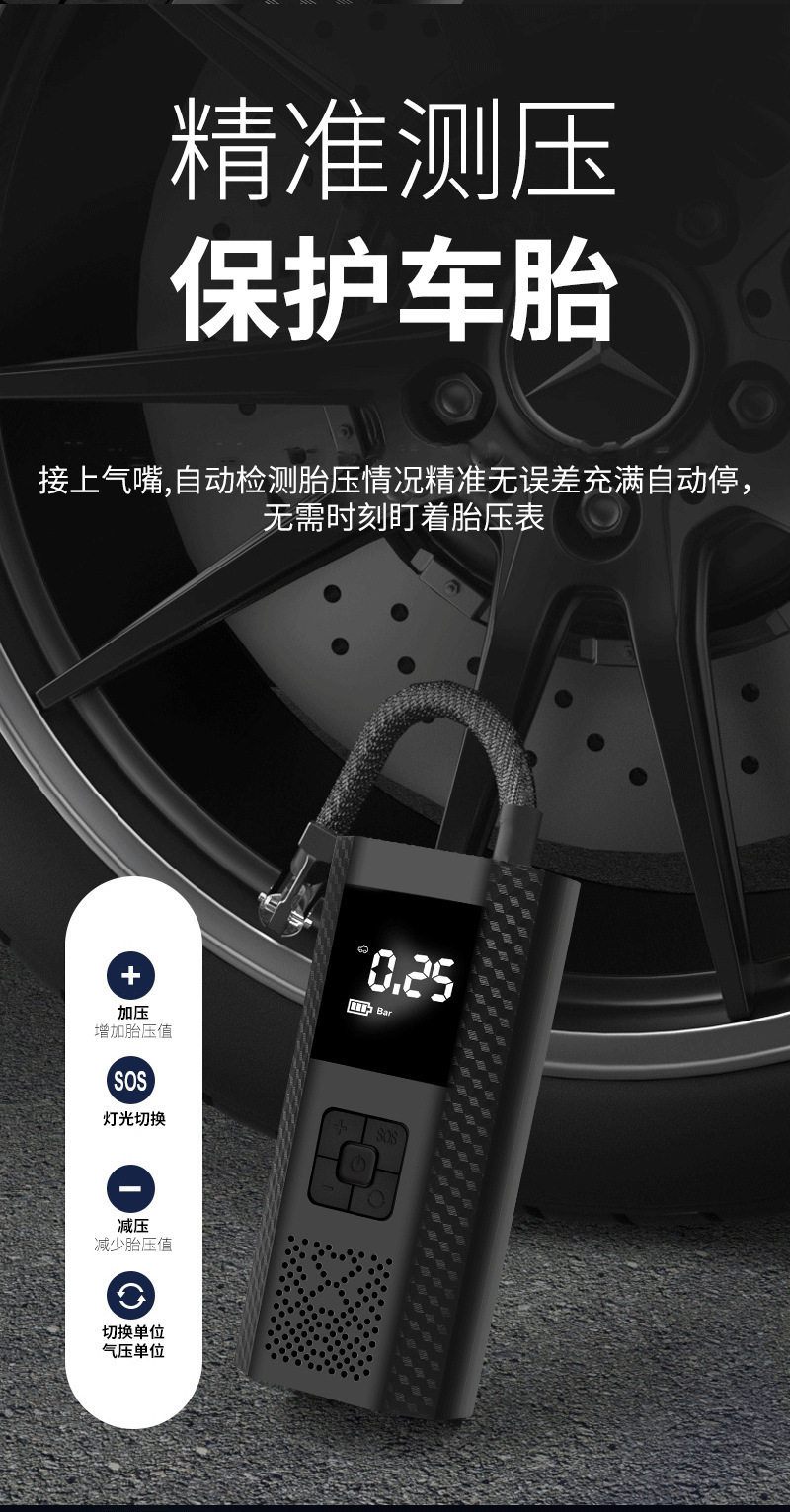 Car Air Pump Wireless Lithium Battery Smart Digital Display Electric Air Pump Tire Air Pump Portable Inflator Cross-Border
