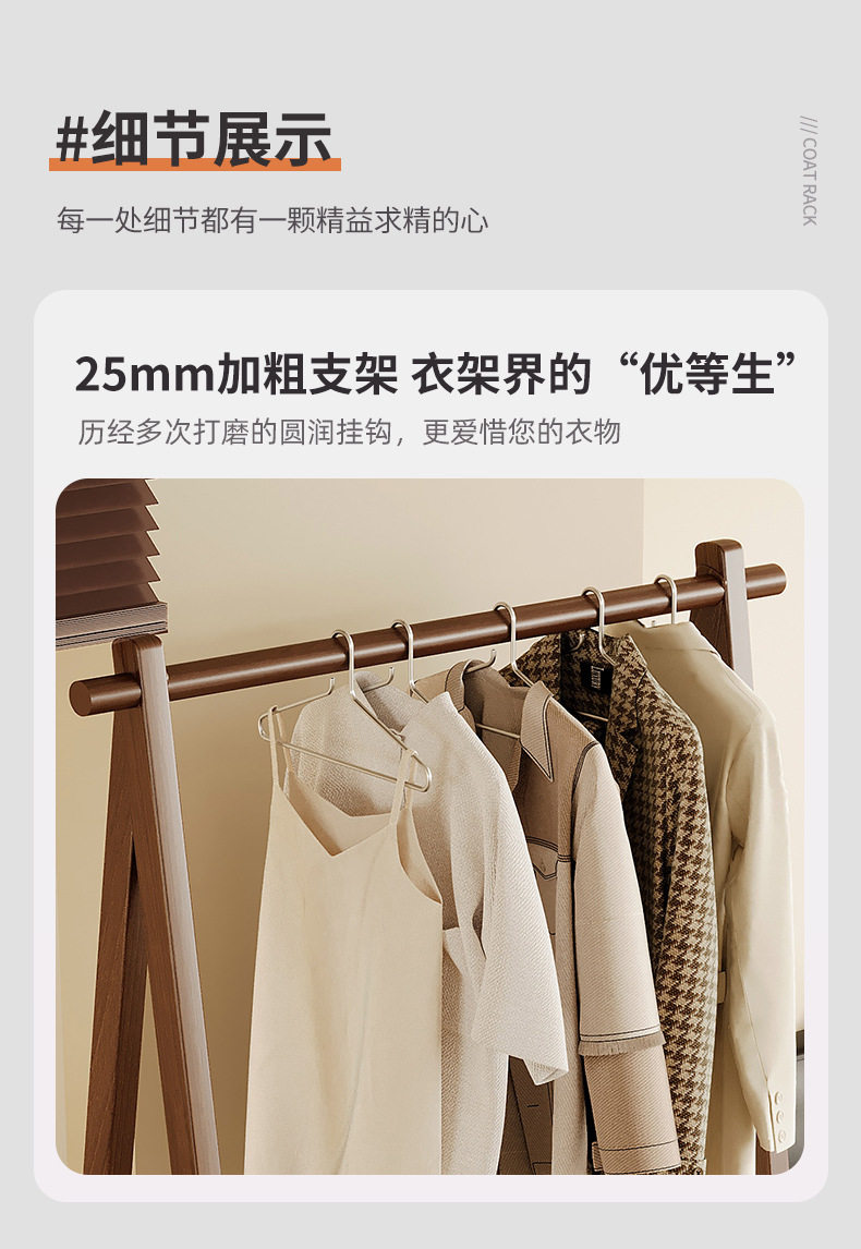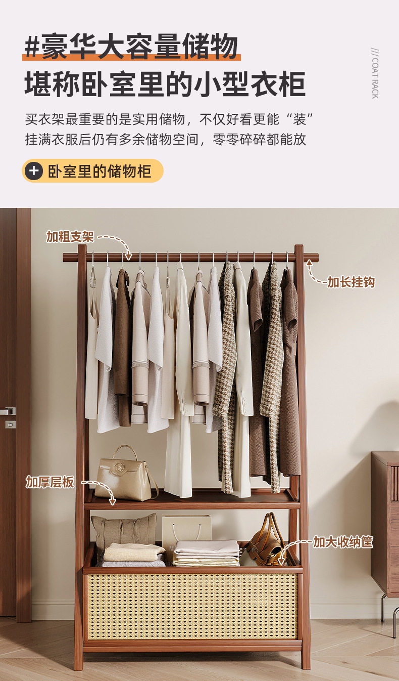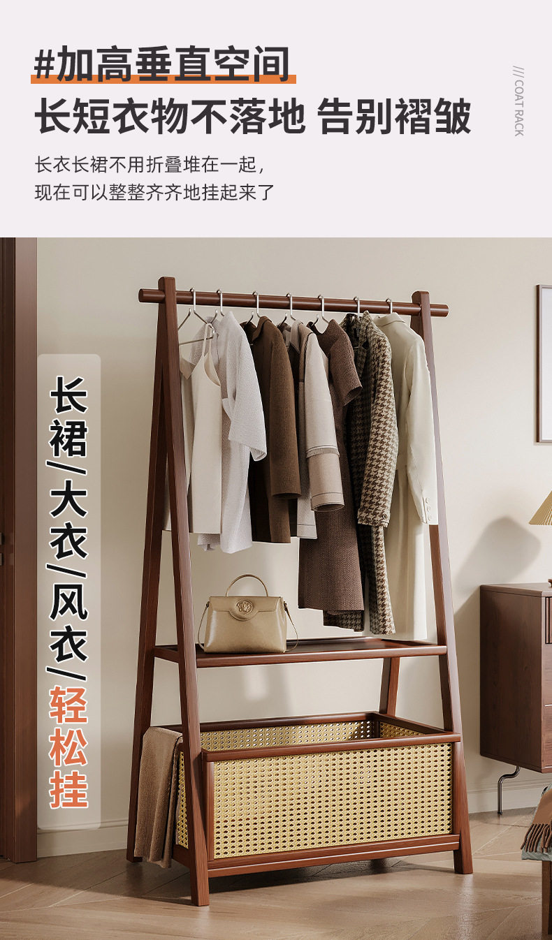 Floor-Standing Home Bedroom Clothes Rack Solid Wood Multi-Functional Simple Clothes Storage Storage Coat Rack