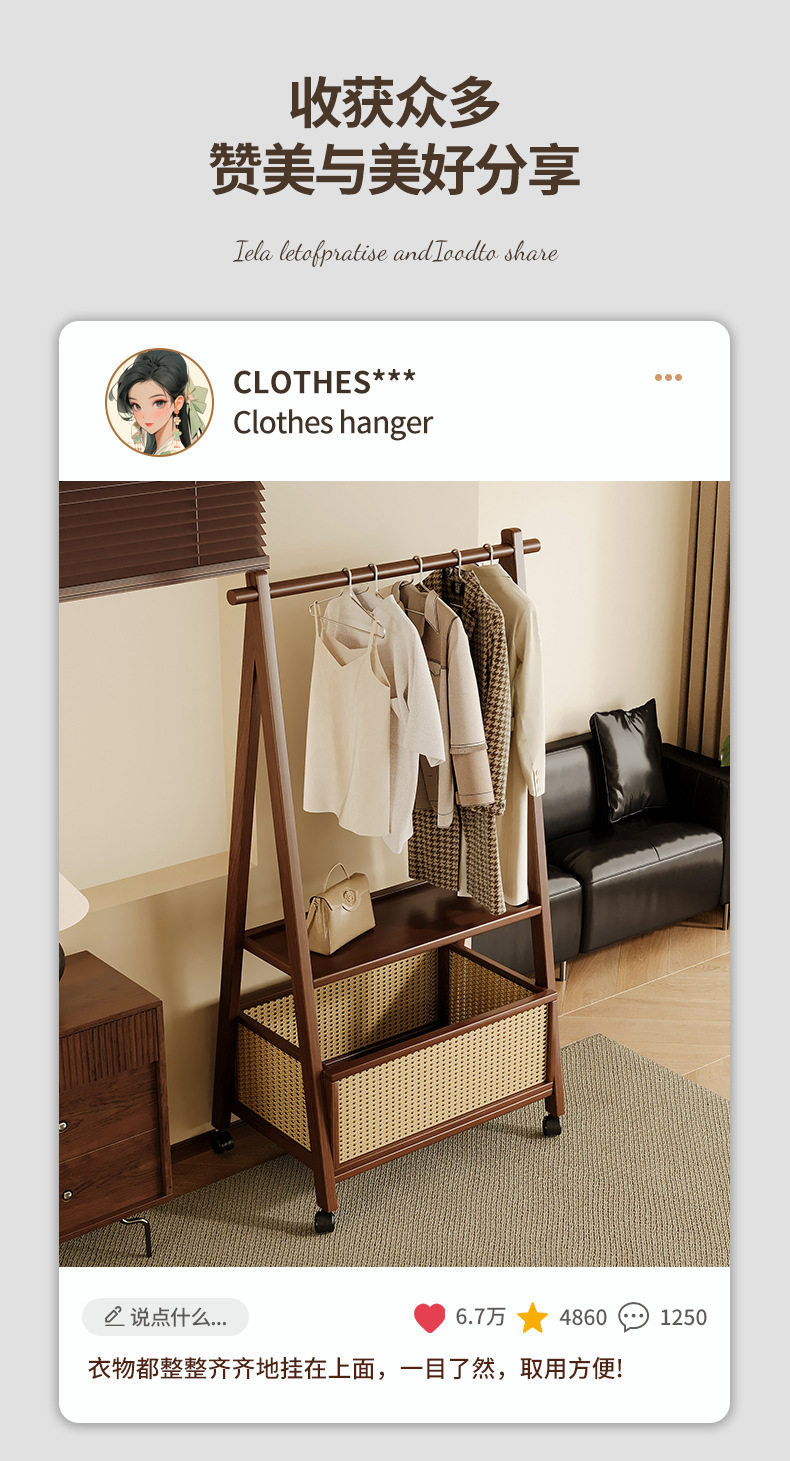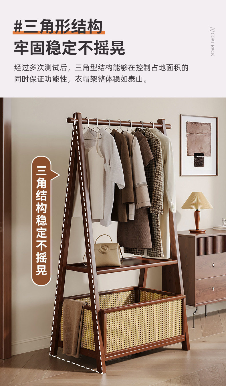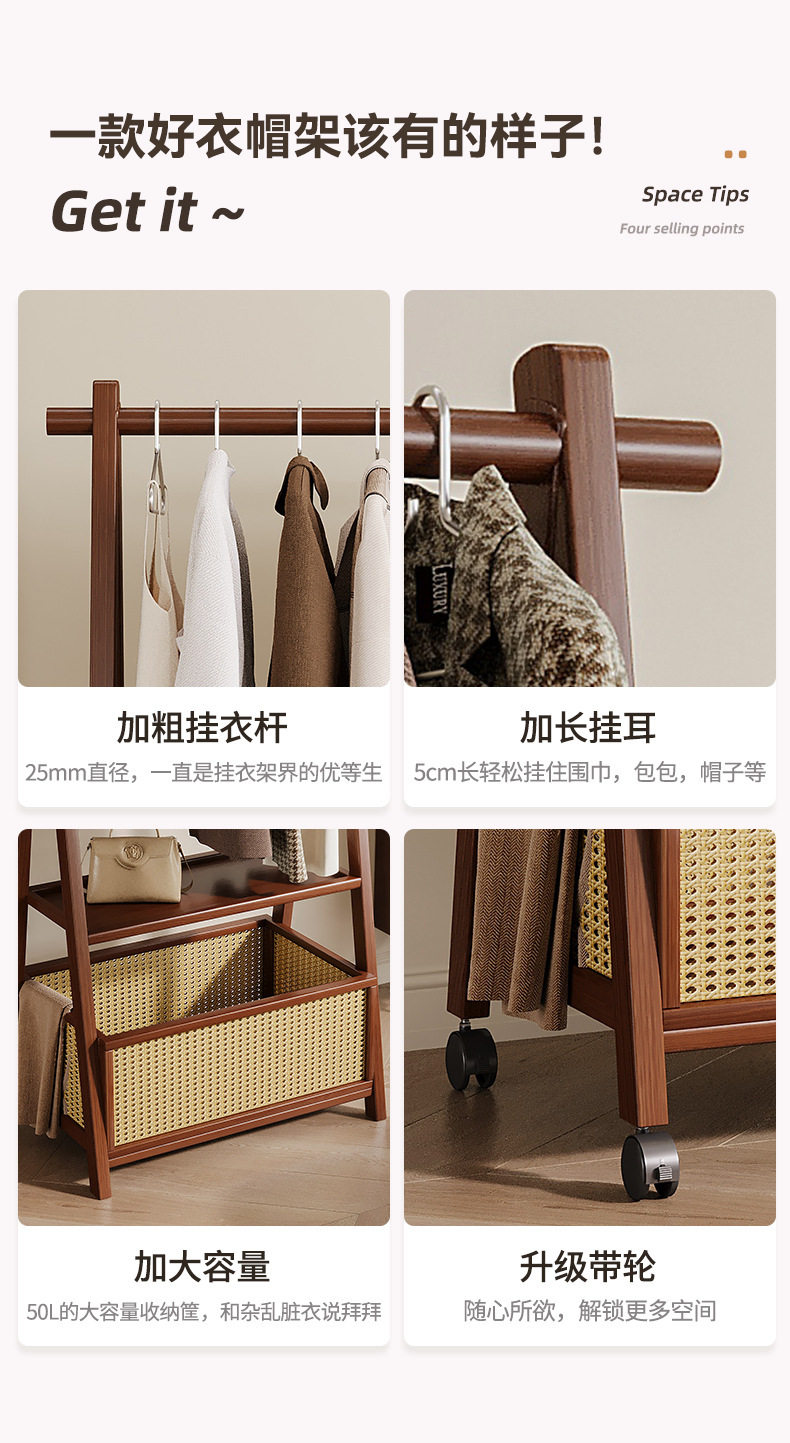 Floor-Standing Home Bedroom Clothes Rack Solid Wood Multi-Functional Simple Clothes Storage Storage Coat Rack