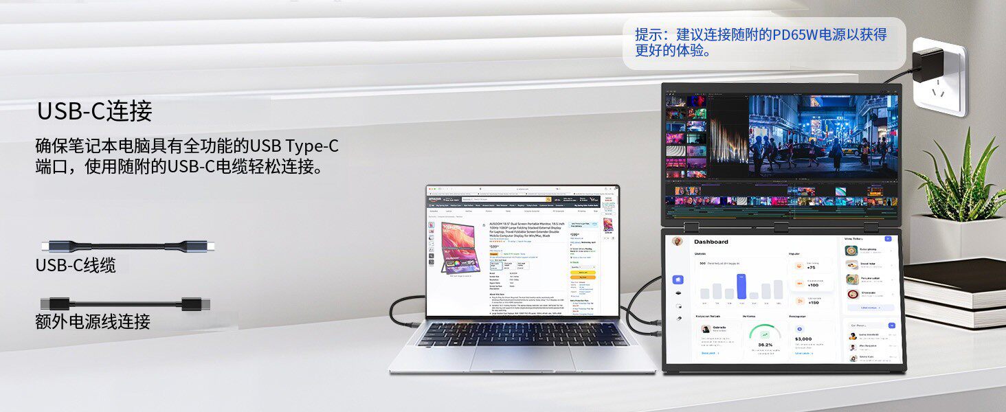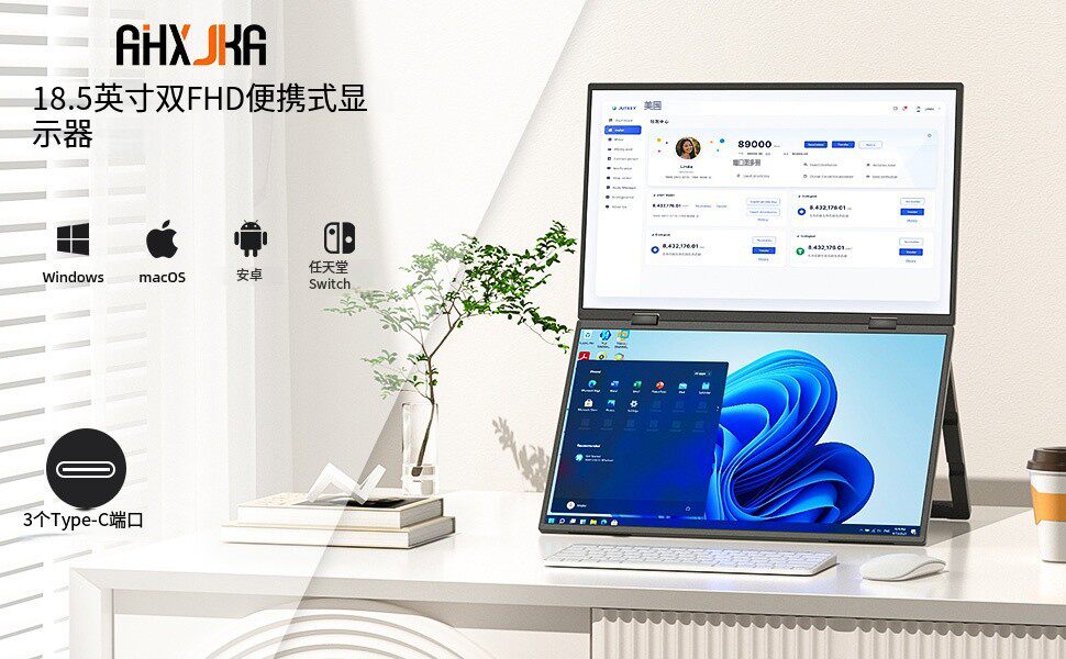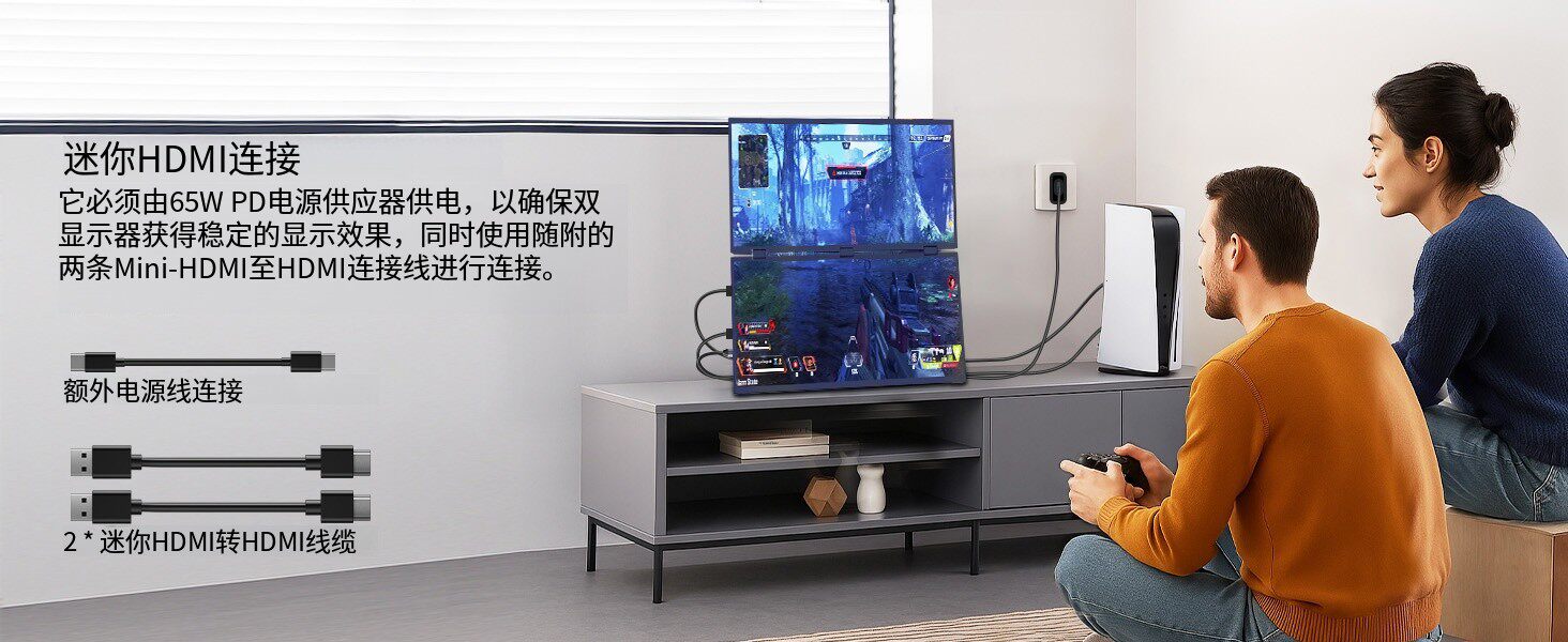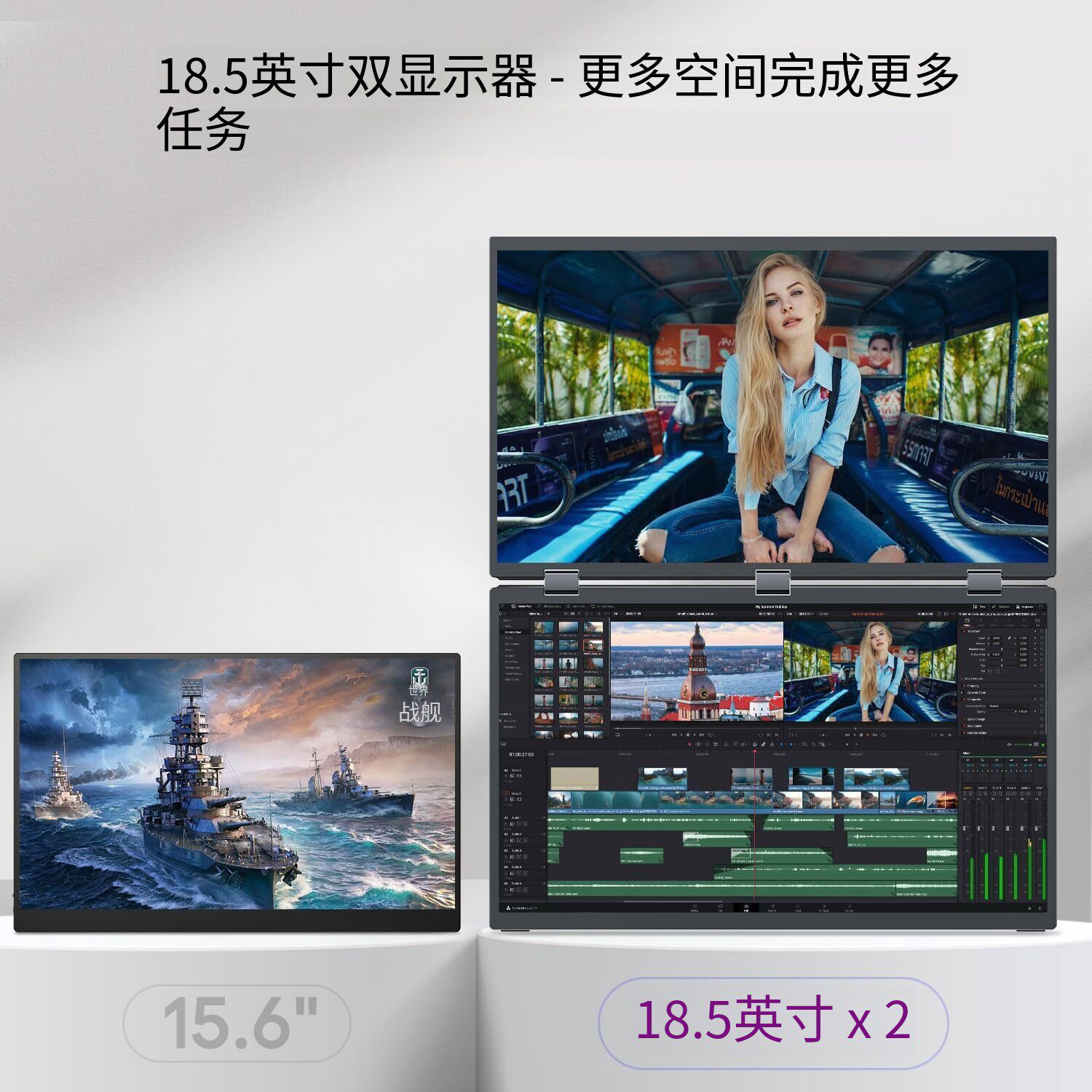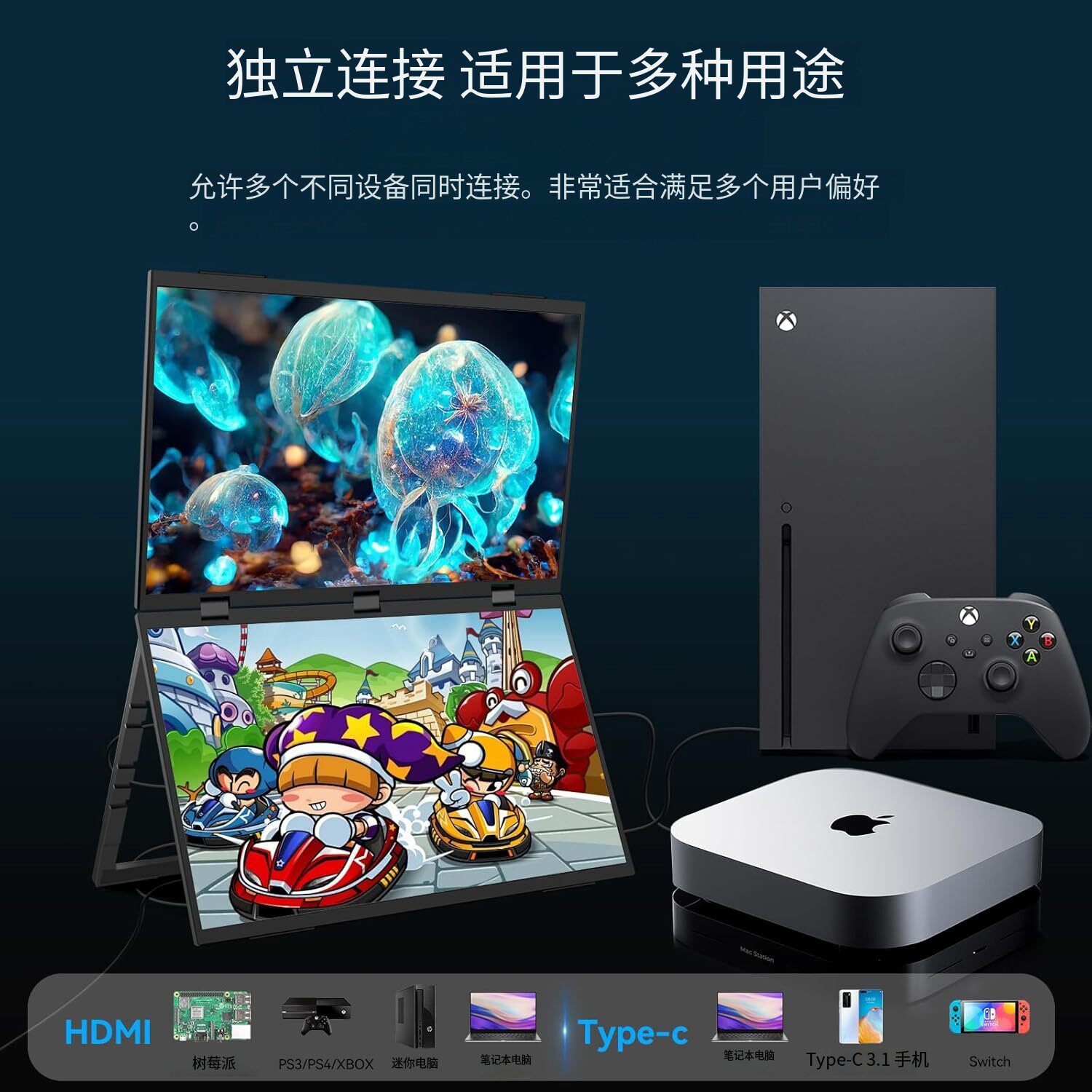 18.5-Inch Foldableing Dual-Screen Display, Portable Screen, One-Line Connection to Computer Notebook Expansion Screen, Ps5 External Screen
