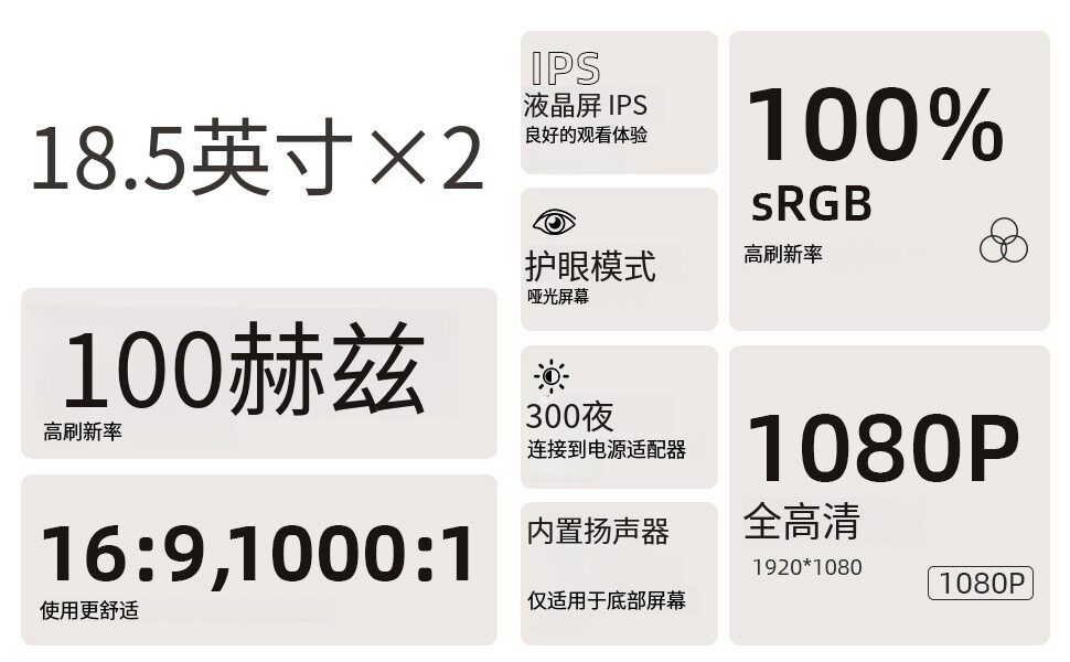 | Size | 18.5inch upper and lower dual screens 100hz,18.5inch single screen 100hz |