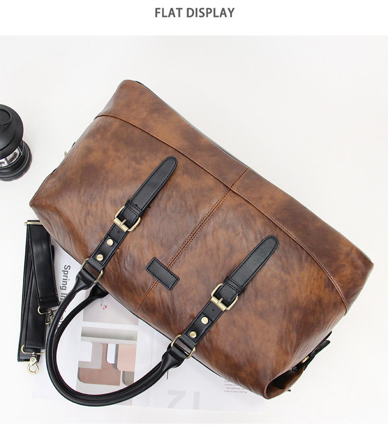 European and American Soft Leather Travel Boarding Bag, Retro Trendy Fitness Bag, Large Capacity Handbag, Fashionable Shoulder Crossbody Bag