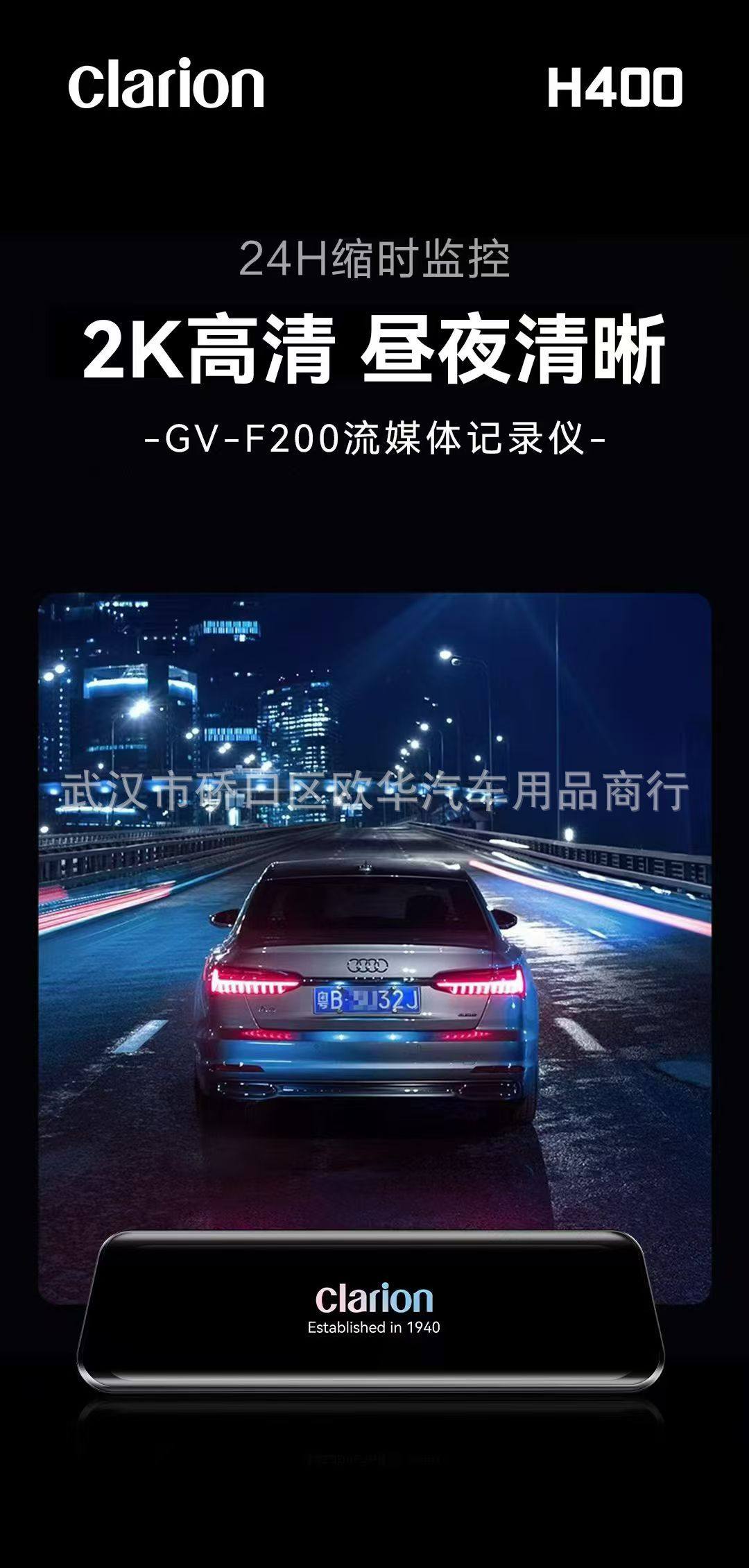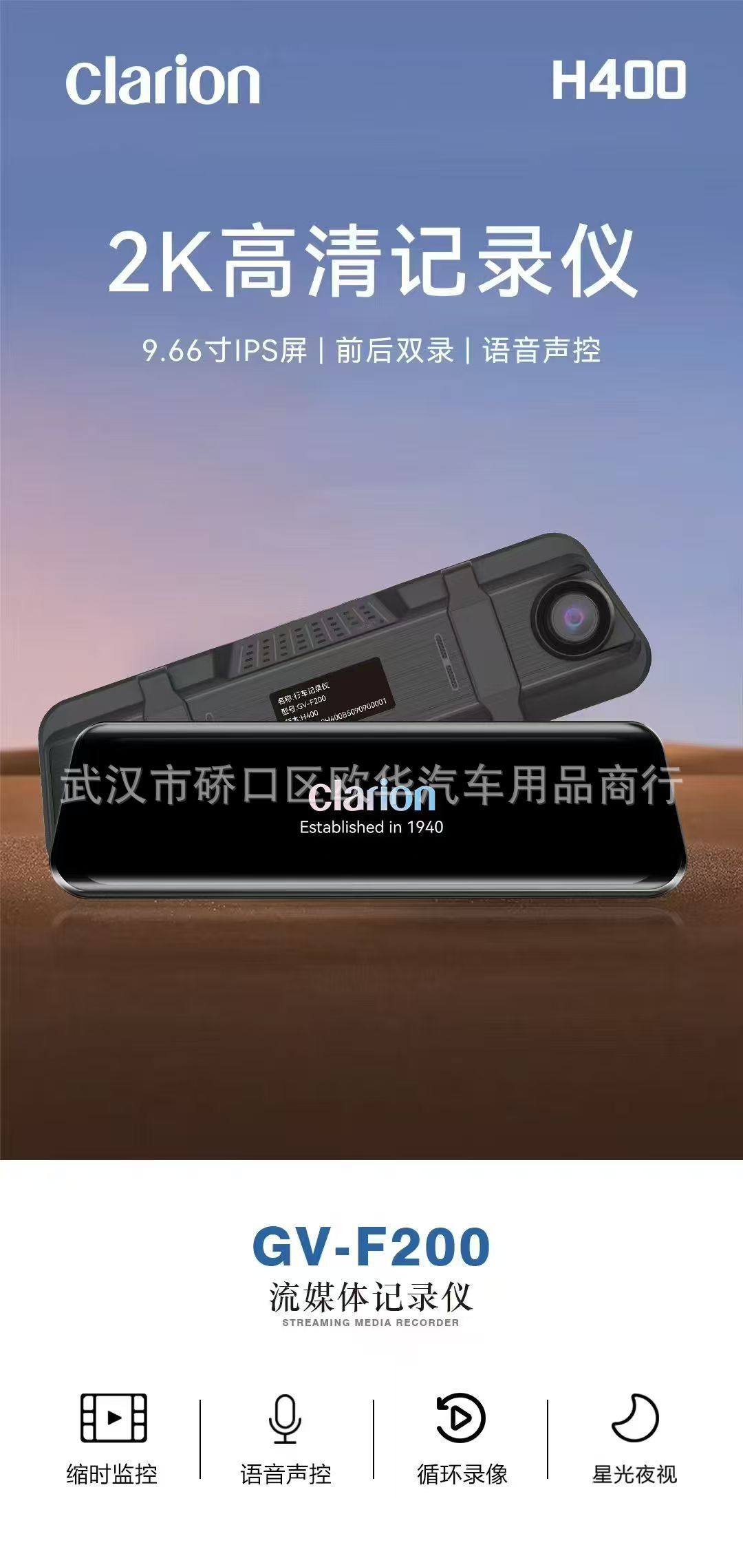 Clarion-H400 Full-Screen Streaming 9.66inch Front and Rear High-Definition Voice Dual-Recording Driving Recorder