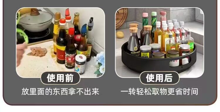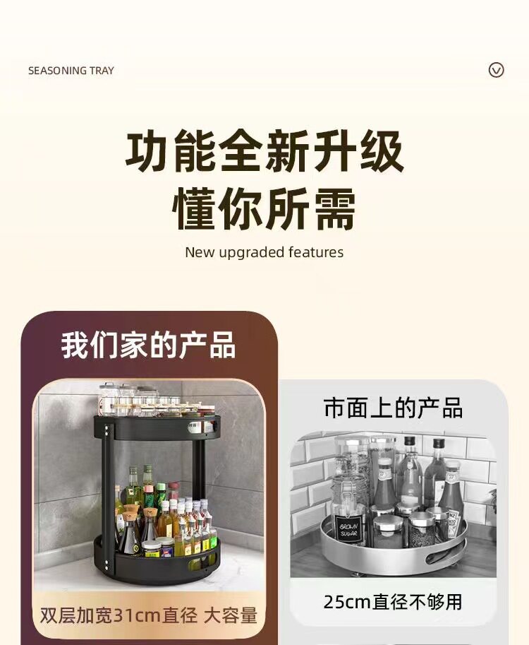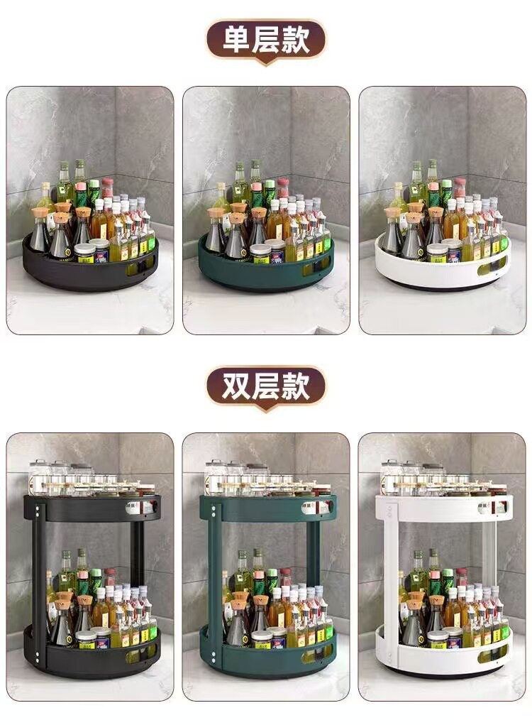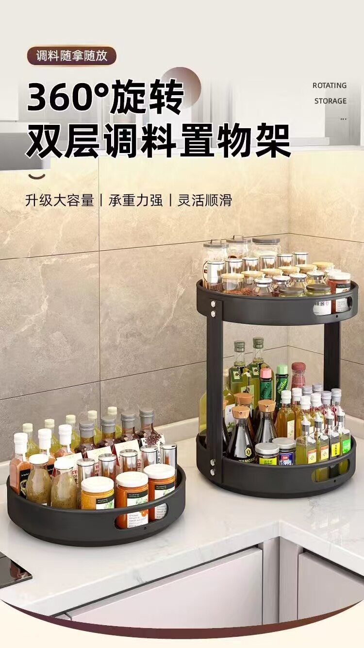 Kitchen Storage Rack Double-Layer Rotating Spice Rack Desktop Storage Organizer Spice Box Integrated Multi-Grid Storage Rack