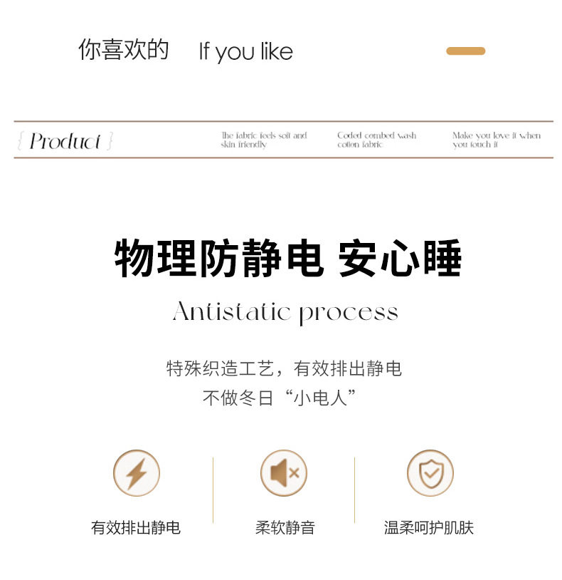 | Size specifications | Student bed [three-piece bed sheet set] - suitable for 150x200cm quilt core,0.9m bed [three-piece bed sheet set] - suitable for 150x200cm quilt core,1.2m bed [three-piece bed sheet set] - suitable for 150x200cm quilt core,1.5m bed [sheet set of four] - suitable for 200x230cm quilt core,1.8m bed [sheet set of four] - suitable for 200x230cm quilt core,2.0m bed [sheet set of four] - suitable for 220x240cm quilt core,1.5m bed [four-piece fitted sheet set] - suitable for 200x230cm quilt core,1.8m bed [four-piece fitted sheet set] - suitable for 200x230cm quilt core |