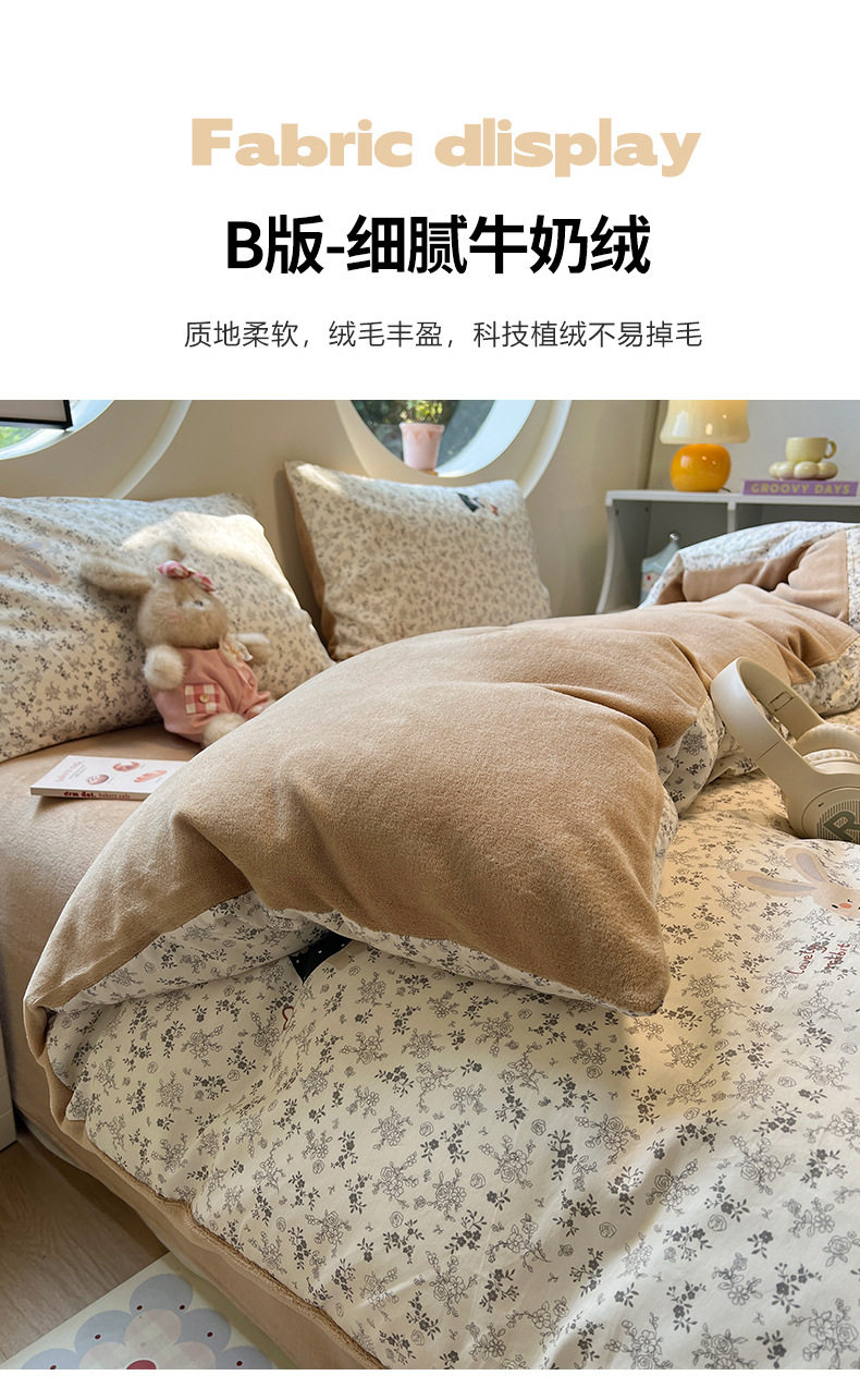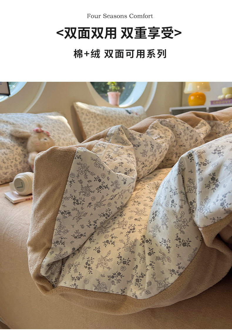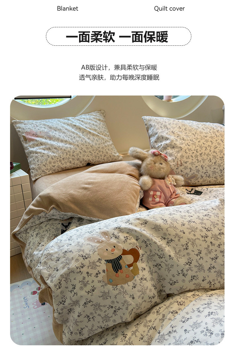 Autumn and Winter Ab Surface Cotton Milk Velvet Bed Four-Piece Set 2025 New Coral Velvet Thickeneded Quilt Cover Bed Sheets Three-Piece Set