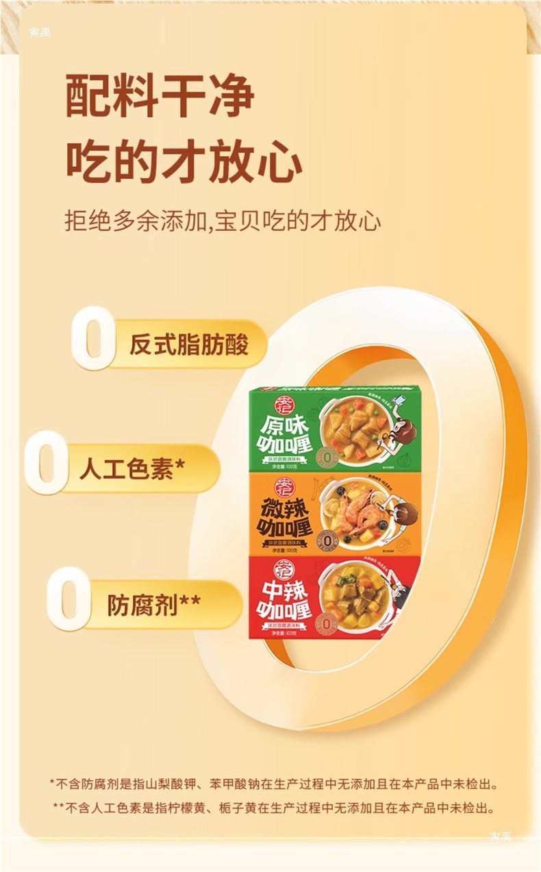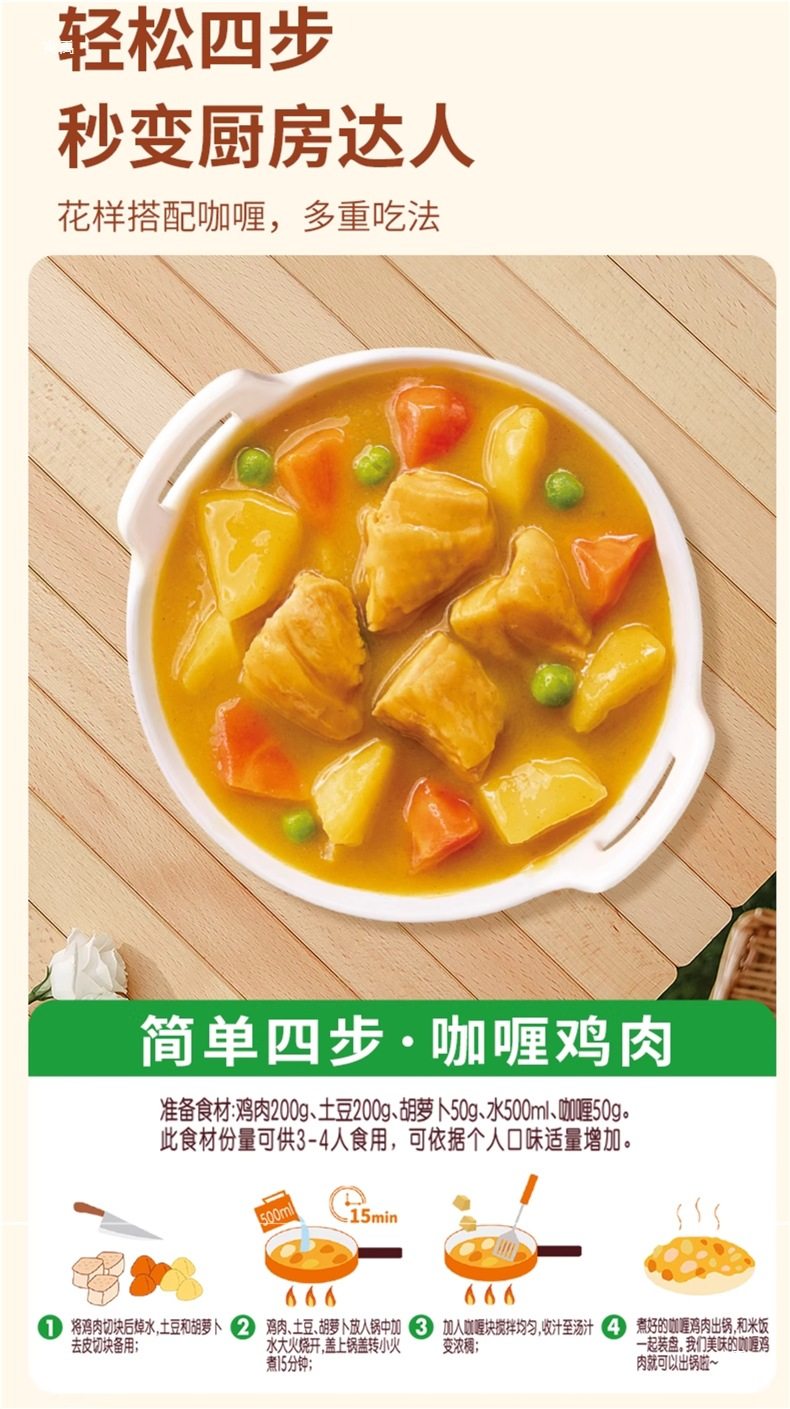 | Packaging specifications | Sharing version丨Original curry*3 boxes, best-selling and most popular,Sharing version丨Slightly spicy curry*3 boxes,Sharing version丨Medium spicy curry*3 boxes,Sharing version | original + mild spicy + medium spicy [recommended for early adopters],Sharing version | 2 boxes of original flavor + 1 box of slightly spicy flavor,Sharing version | 2 boxes of original flavor + 1 box of medium spicy flavor,Sharing version | 2 boxes of mild spicy + 1 box of original flavor,Sharing version | 2 boxes of mild spicy + 1 box of medium spicy,Sharing version | 2 boxes of medium spicy + 1 box of original flavor,Sharing version | 2 boxes of medium spicy + 1 box of slightly spicy,Chinese version | original curry*3 boxes [cost-effective choice],Chinese version丨Slightly spicy curry*3 boxes,Chinese version | medium spicy curry*3 boxes,Chinese version | original + mild spicy + medium spicy [recommended for early adopters],Chinese version | 2 boxes of original flavor + 1 box of slightly spicy flavor,Chinese version | 2 boxes of original flavor + 1 box of medium spicy flavor,Chinese version | 2 boxes of slightly spicy + 1 box of original flavor,Chinese version | 2 boxes of mild spicy + 1 box of medium spicy,Chinese version | 2 boxes of medium spicy + 1 box of original flavor,Chinese version | 2 boxes of medium spicy + 1 box of slightly spicy |